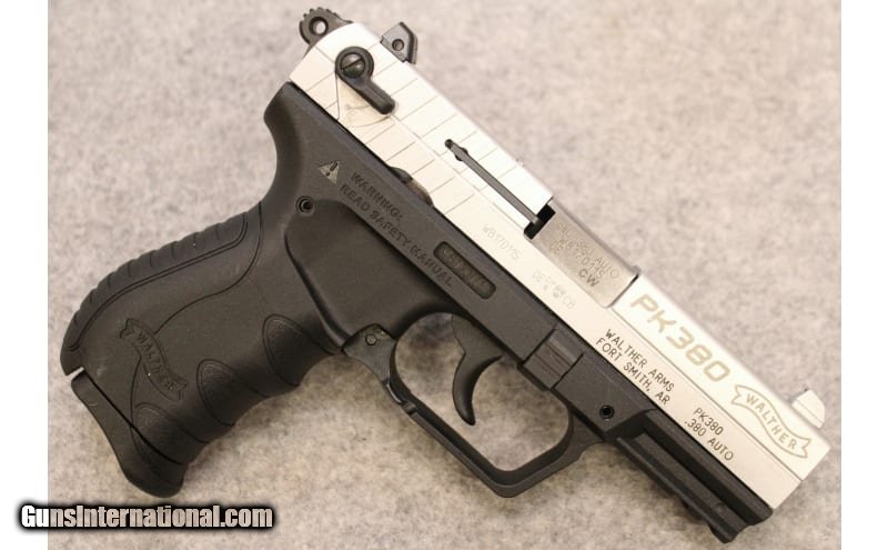 Description: This Walther Pk380 chambered in .380 features, two-tone finish, white dot rear sight, red dot front sight, DA/SA trigger, ambidextrous magazine paddle release, ambidextrous thumb safety, and an accessory rail. .380 ACP SOLD Metal Condition: Great Bore Condition: Bright Barrels: 3.5 Weight: 1.2 lbs. Item Location: Hoffman Estates, IL |