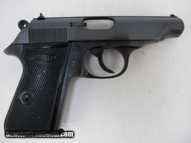 Description: Walther PP .22 Long rifle pistol.This gun is a very scarce variant,as it is an early 5 digit seril number gun. Maunufatrure date is approx. 1958-1960. Gun is marked,"Walther" but the serial number matching box is a Manurhin marked box.NO IMPORT MARKINGS,as it's a pre-68 GCA gun... This appears to be a factory error...this is a very collectible little Walther PP .22 in itself,and even more so with the oddity of a serial number matched box,but name mismatch. Gun is in 99% condition,with only signs of minimal firing.Includes box,manual,cleaning rod and brush. Very nice little Walther. No California sales on this. Shipping is $35.00 SOLD |