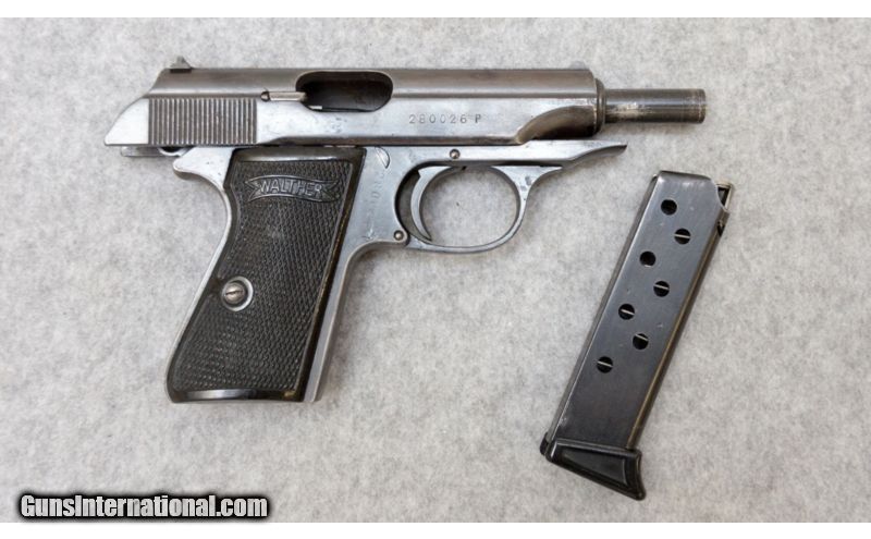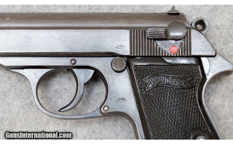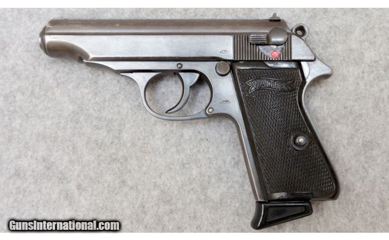 Description: This Walther PP was made in 1942 and includes the German Waffenamt "WaA359" and "Eagle N" proof mark designating its military acceptance. The bluing on the left side has worn significantly, all but removing the Walther, caliber, patent, and model markings. Otherwise, the gun is in great working condition. A great buy for any collector! SOLD Manufacturer: 1942 Caliber Info: .32 ACP Metal Condition: Good Bore Condition: Excellent, bright and shiny Barrels: 3 7/8 in. Triggers: DA/SA Weight: 1 lb 8 oz Item Location: Fort Mill, SC |