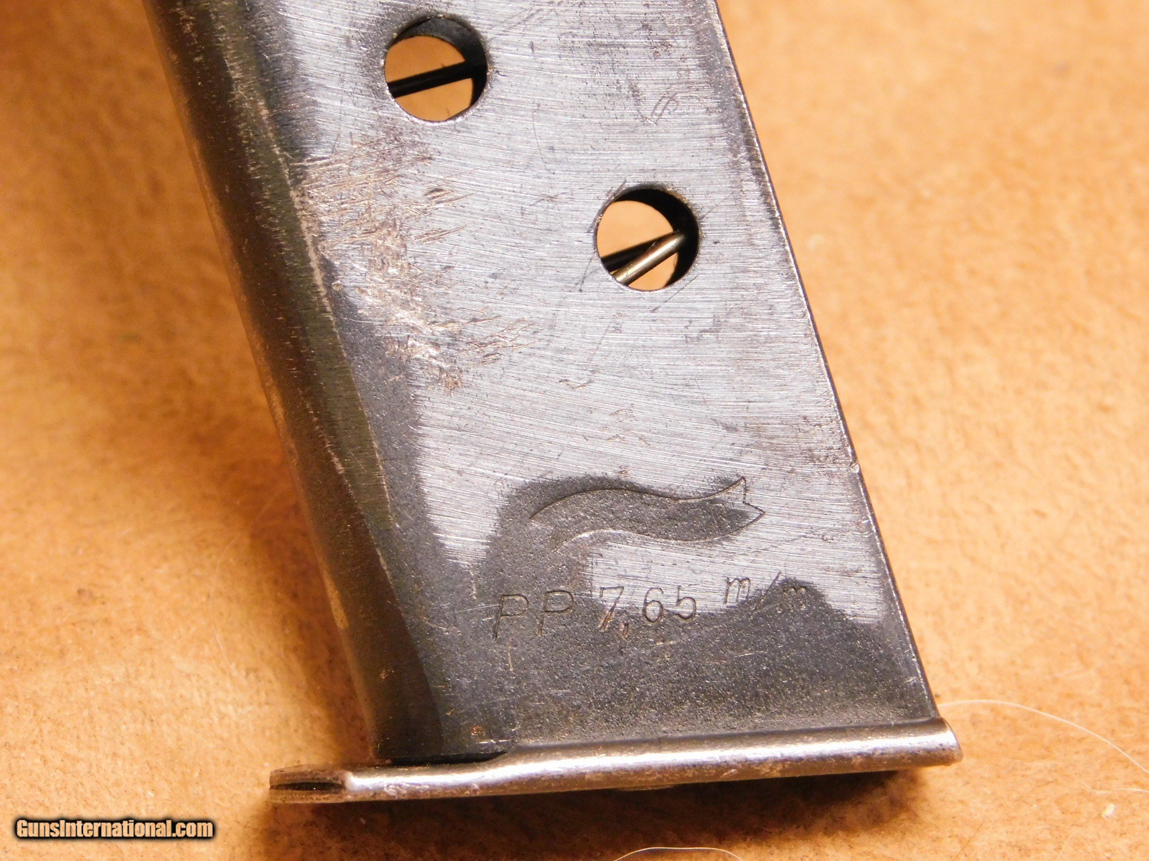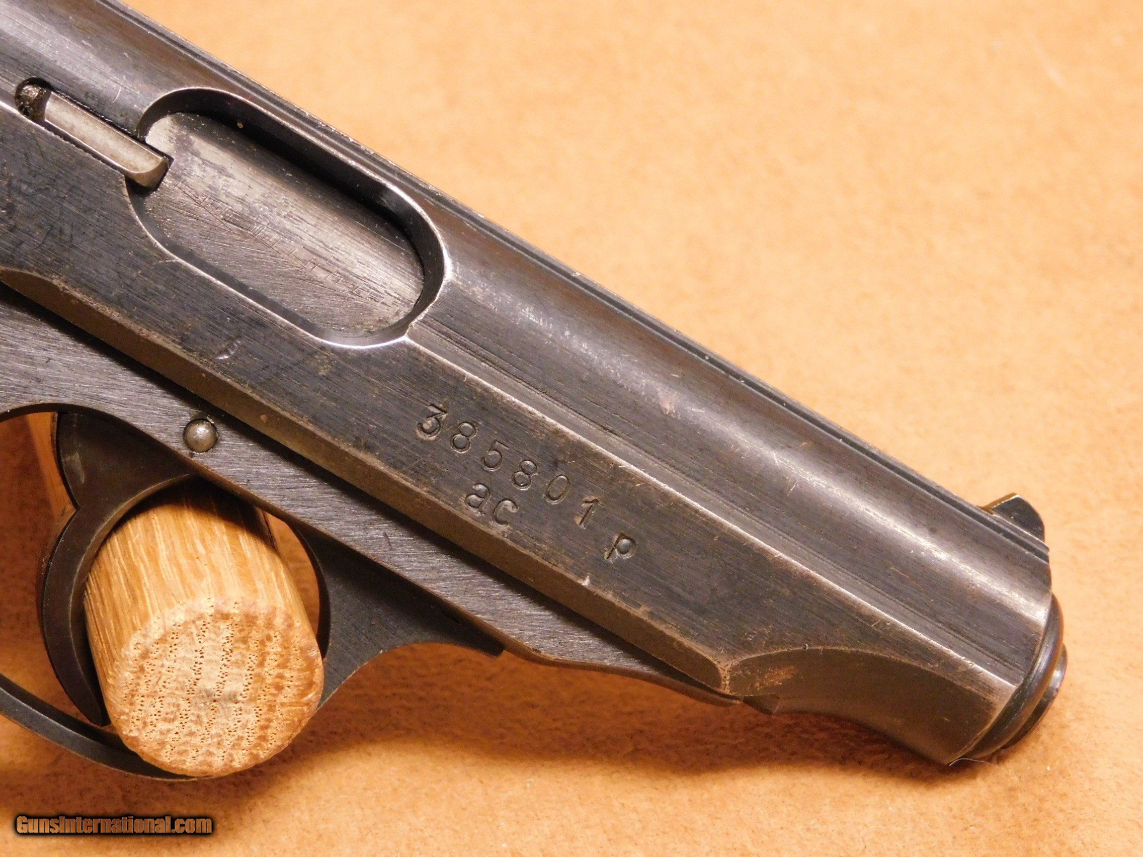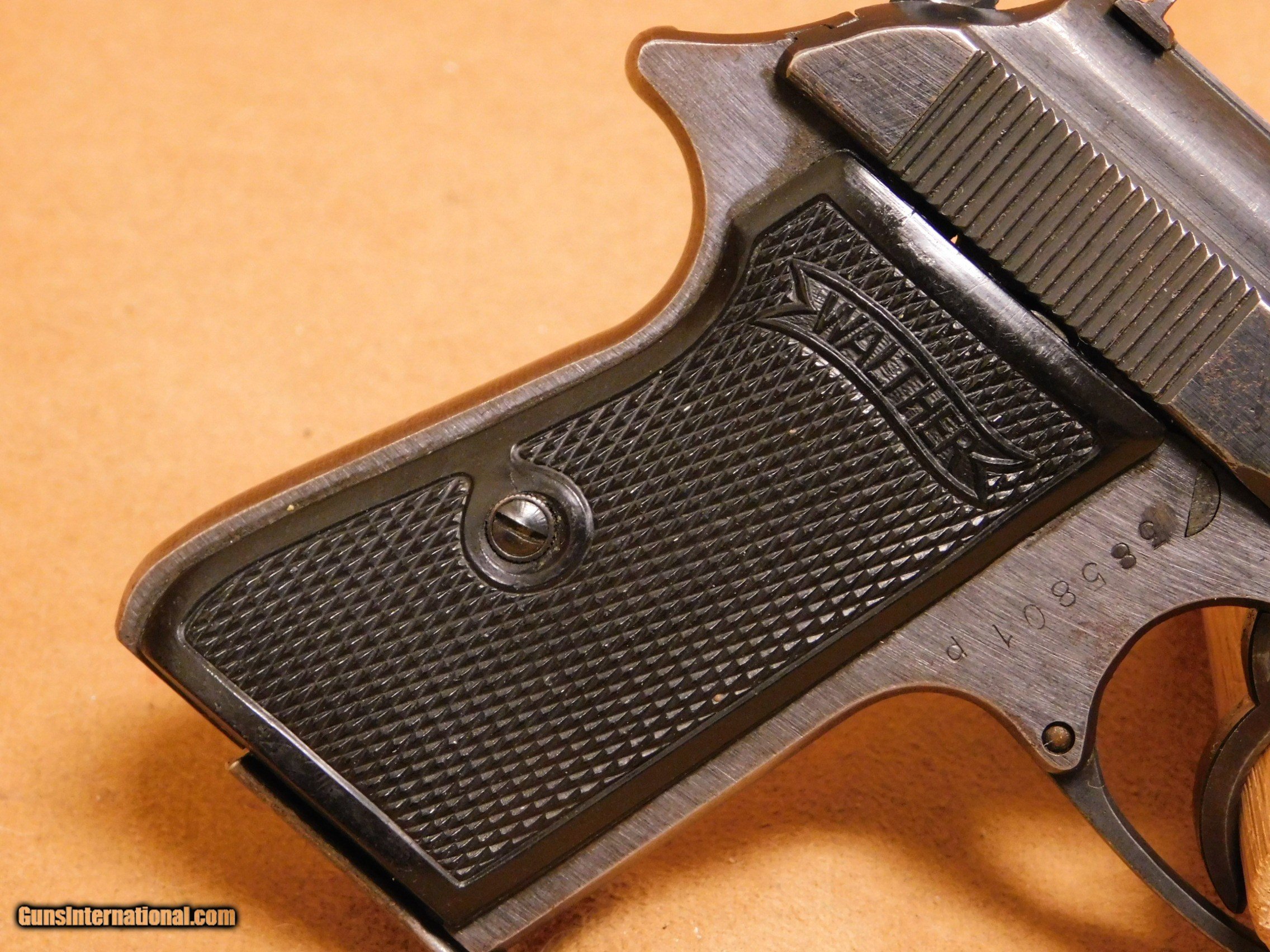 Description: This is a very late-war Walther PP, one of the last 4,000 produced. It has blank, AC-marked slide with no Walther Banner on the opposing side. It has no firing proofs and a matched number on the slide. The pistol was probably picked up by a GI in the Walther factory. It has a mint bore and just a few handling marks. The only finish loss is near the muzzle and one spot on the slide. The grip strap starting to thin. It comes with a "W"-marked mag. All items are also available for sale in our brick & mortar store and are subject to prior sale. Think long, think wrong. Payment On firearms, we typically only accept credit cards or money orders/cashier's checks.