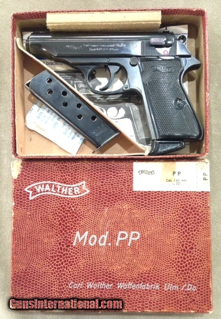 Description: A wonderful Interarms import circa the 1070's of a used & reconditioned Walther PP in .32acp. Pistol is excellent condition showing some minor wear, and has a Police Marking on the slide. Gun is in the original Walther box, with manual, both magazines (which are numbered to the gun), etc. A nice example of an Interarms Import. Bore and chamber are excellent. For exterior condition see photos. SOLD Curio/Relic: Yes |