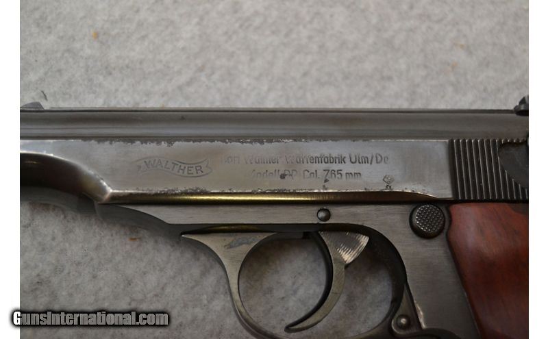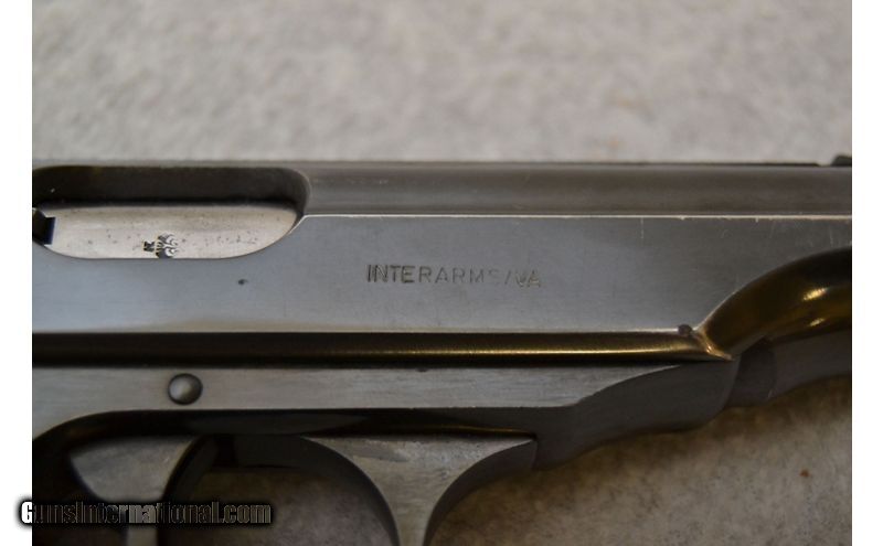 Description: Solid shooter grade condition. As evidenced in the pictures, the metal finish in thinned or absent in some areas. The hard edges around the muzzle in particular show loss of bluing. Edges of the left side of the slide show some damage from possible corrosion at some point; but the rust seems to have stopped. The grips are in very good shape with only a tiny number of handling marks, but the grip screw is a little too long and can be felt when shifting the pistol in the hand. A single magazine is included. 7.65mm (32 ACP) SOLD Chambers: Semiautomatic fed from detachable magazines. Metal Condition: Fair to good. Wood Condition: Grips are in very good condition. Bore Condition: Excellent. Bright shine and well-defined rifling. Barrels: 3¾" Blued steel. Triggers: Wide blued metal with smooth surface. Stock Dimensions: N/A Fore End: N/A Butt Pad: Custom wood grips. Left panel is smooth with light finger grooves and the right is ½ checkered with slight palm swell. Weight: 1lb 8oz Sights: Low profile fixed front blade and notch rear. Chokes: N/A Item Location: Green Bay |