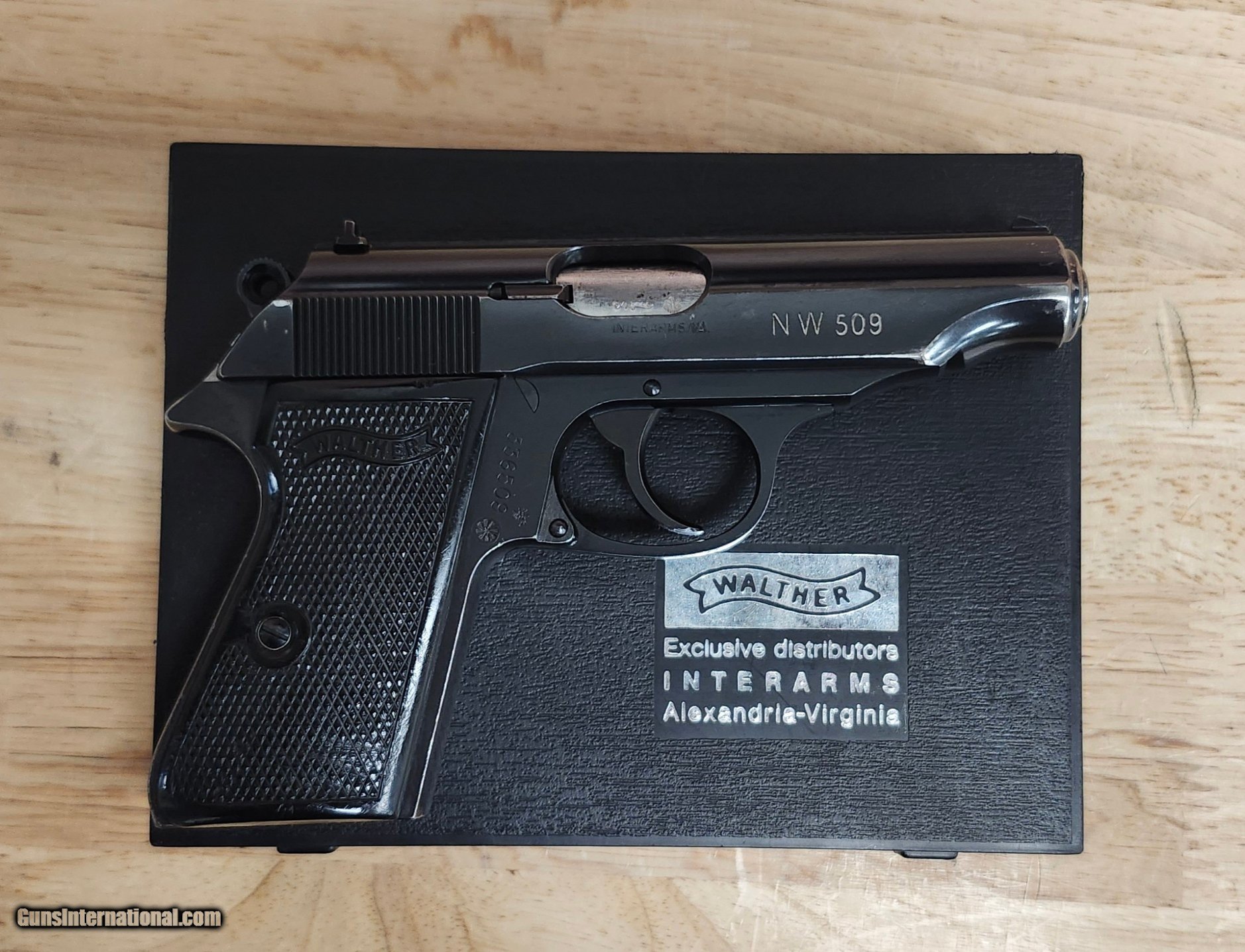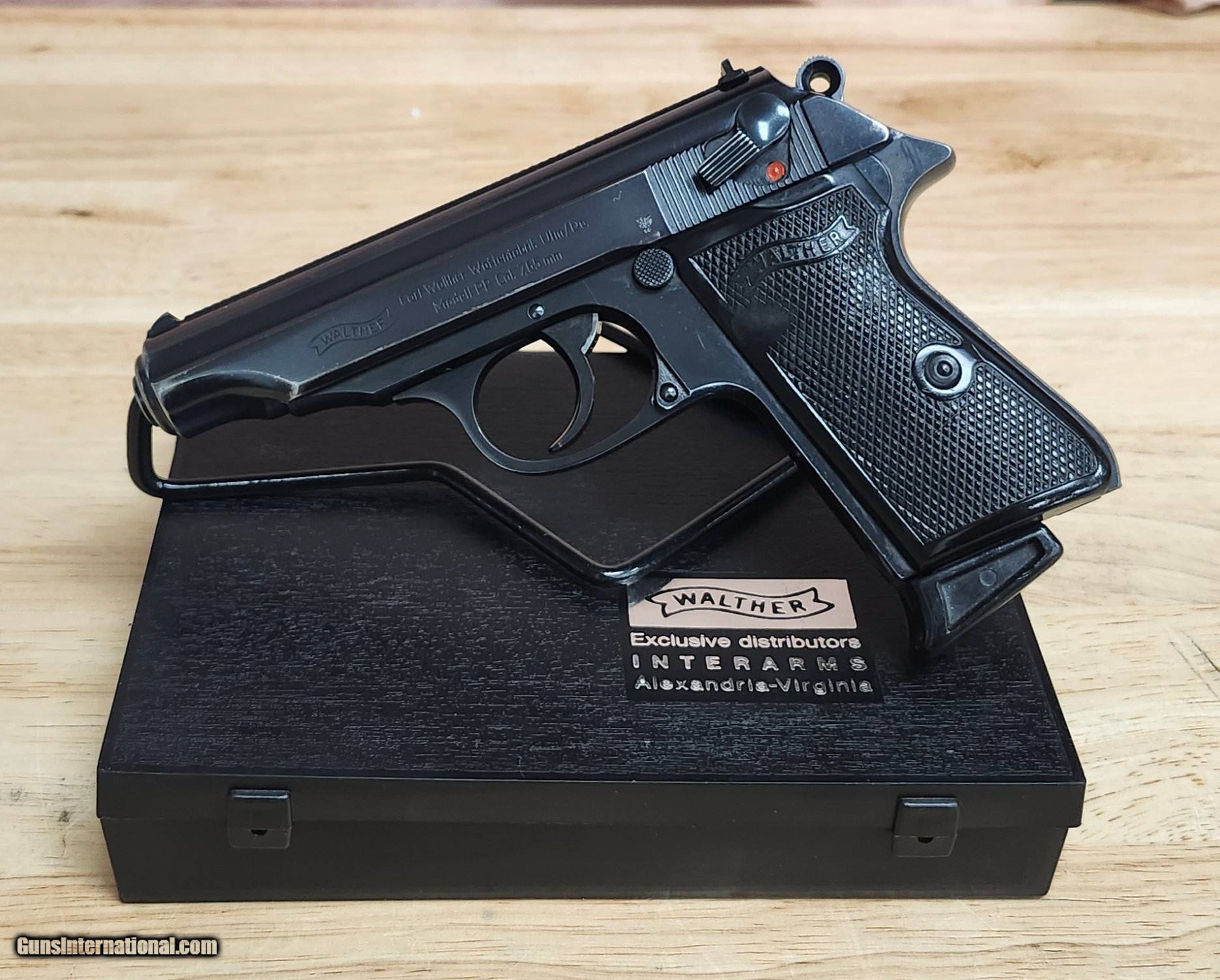 Description: Guns Listing ID: 554408 This is a pre-owned Walther PP, it features a 3.9\" Barrel, 1 - (8) round magazine, this firearm has matching serial numbers on the magazine, frame, and slide. This pistol was imported by Interarms, according to the date code on the barrel this pistol was manufactured in 1964. This pistol ships in the factory hard case. This is a pre-owned firearm, signs of handling and firing are common. SOLD Manufacturer: WALTHER Model: PP Caliber Info: 7.65MM Condition: Used - Non-Certified Barrels: 3.9" BARREL Action: SEMI AUTOMATIC Finish: blued |