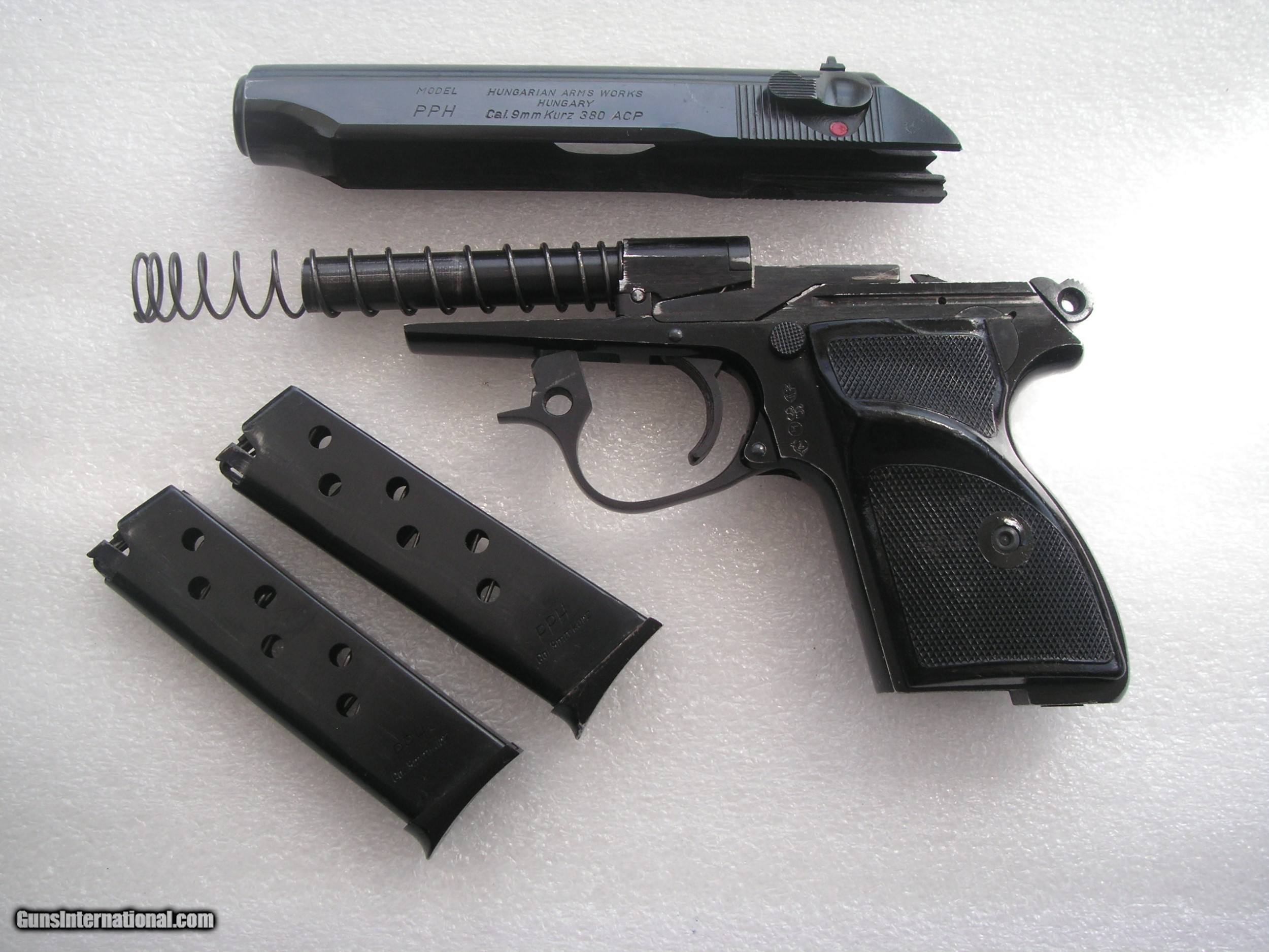 Description: SEE THE PICTURES OF THIS BEAUTIFUL HUNGARIAN ARMS HIGH-QUALITY COPY OF WALTHER PP. THIS PISTOL MODEL PPH CALIBER .380 ACP IS IN LIKE MINT ORIGINAL CONDITION WITH 2 MATCHING SERIAL NUMBER MAGAZINES, SLIDE, AND FRAME. THES IS THE COLLECTIBLE AND A VERY GOOD FOR HOME AND PERSONAL PROTECTION. We offer three days inspection. Only not fired changed parts or condition guns would be accepted. Return shipping cost is the buyer expense. We accept bank & postal money orders or personal & business checks, but those take time to clear. We also offer 90 days layaway with 25% down & three more payments of 25% per month. The layaway plan does not have 3 days inspection privileges; therefore there is “NO RETURNS” policy. If you have offered to buy my guns, and the payment has not made soon after (from 3 to 5 days), I will not guarantee you will be the buyer of it. I can secure your purchase only when you have paid for it. If your payment comes too late, I will return it back to you. Please check our other nice listings. SAFETY NOTICE: Buyer solely responsible for following all safety requirements in handling guns. The buyer agrees to hold seller harmless against damages, injury or death caused by defective merchandise or ammo. If you like, we can negotiate terms of shipping. The offered shipping price includes insurance cost & priority mail cost only. SOLD Manufacturer: HUNGARIAN ARMS Model: PPH Serial Number: N01685 Caliber Info: .380 ACP Bore: BRIGHT AND SHINY Condition: EXCELLENT Metal Condition: 99% + ORIGINAL |