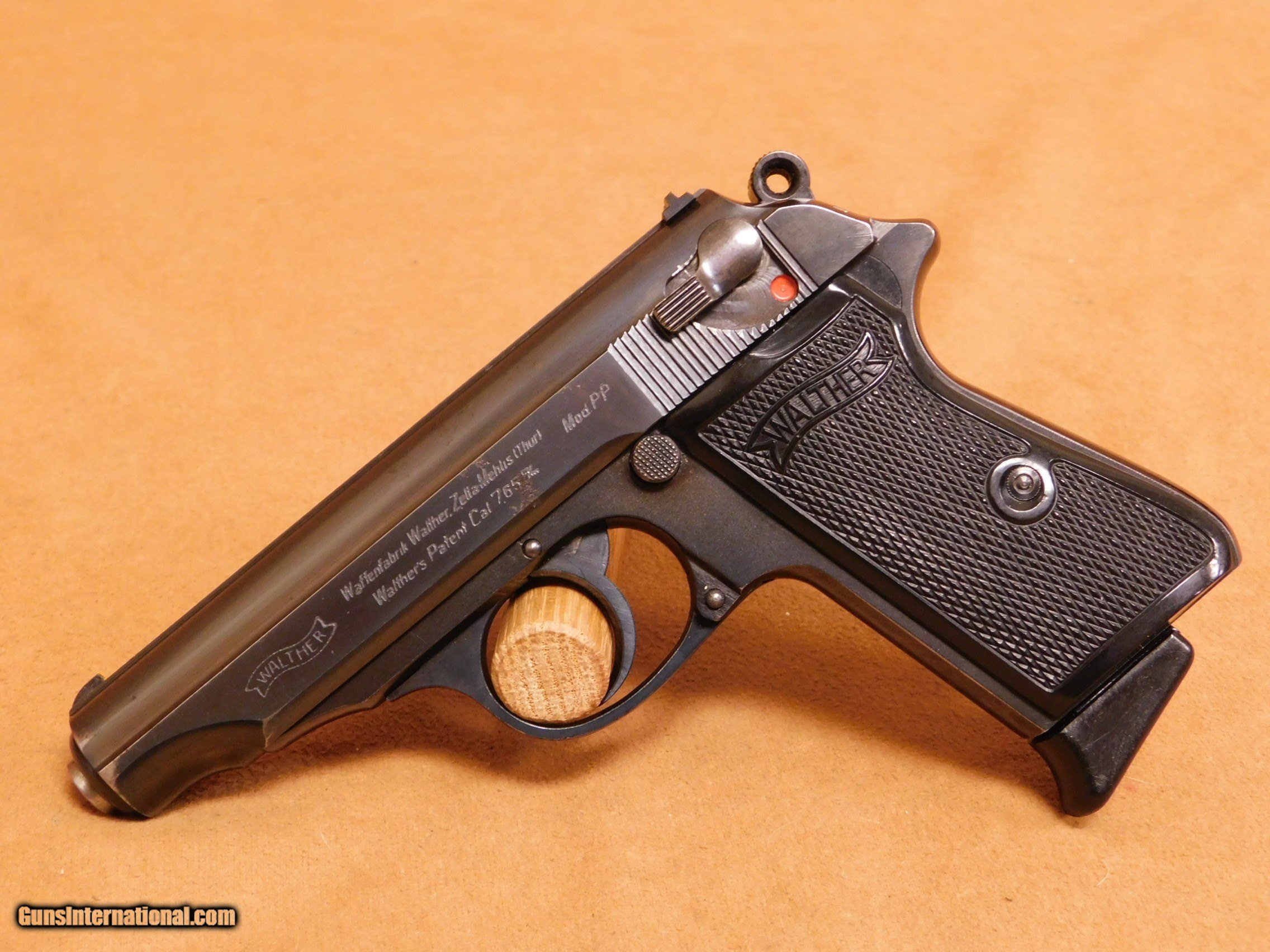 Description: This is a very scarce Walther PP that was issued to the Deutsches Reichsbank security personnel. They were early PP's in the 750,000 serial range, and the serial number is pantographed on the slide and the finger rest of the magazine. This example was made in 1930. It features commercial proofs and the early-style 90-degree safety. The gun would have been used by plainclothes security bank personnel. This PP variant is highly sought after and very scarce. All items are also available for sale in our brick & mortar store and are subject to prior sale. Think long, think wrong. Payment On firearms, we typically only accept credit cards or money orders/cashier's checks.