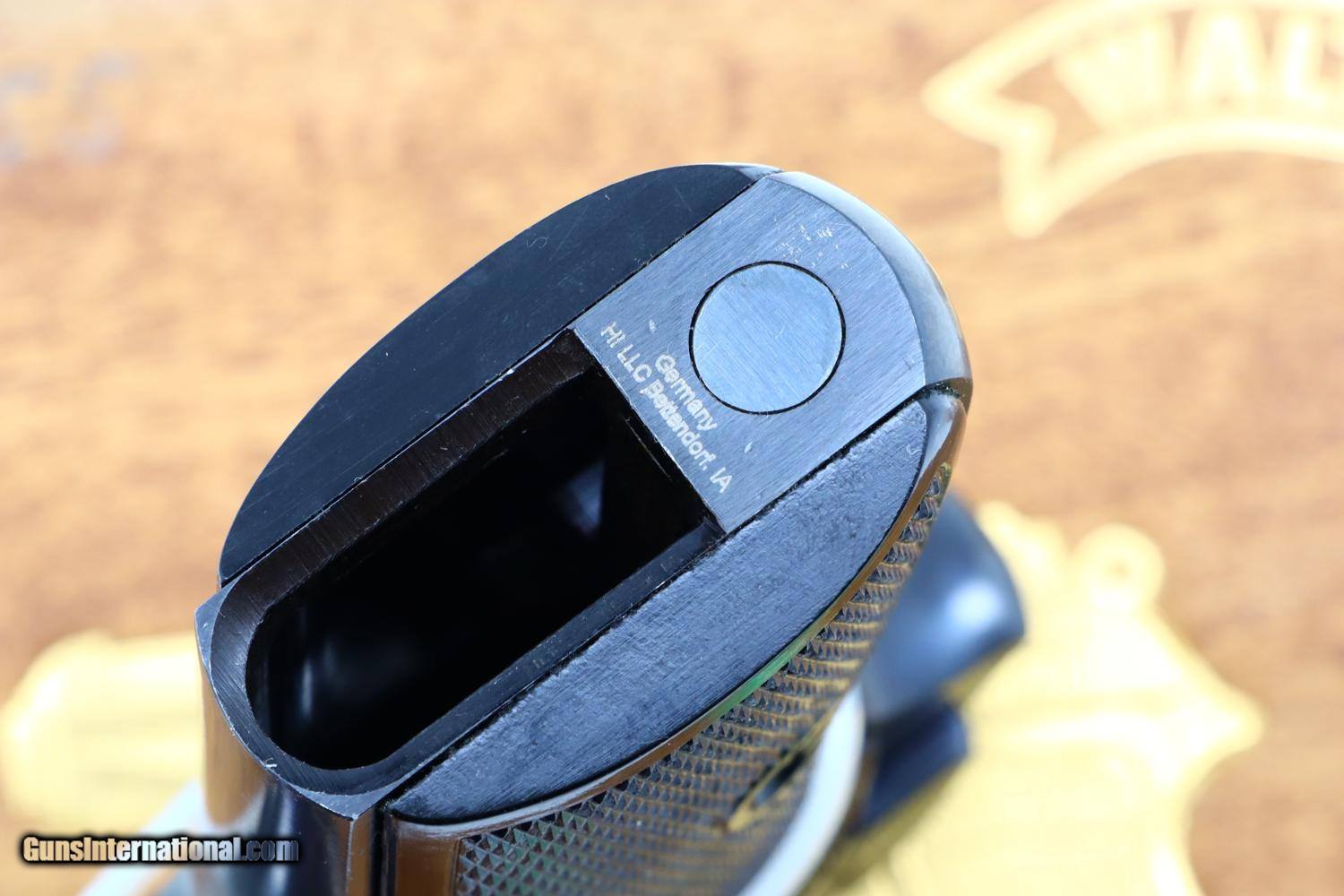99++% original salt blue. Comparable condition grips and magazine. Mirror bright bore with sharp rifling. Perfect manual mechanics. Excellent instruction manual. VG+/Exc box with scattered scuffs. A wonderful Walther PP from WWII, especially nice with the original instruction manual and matching box having the loaded indicator tag.