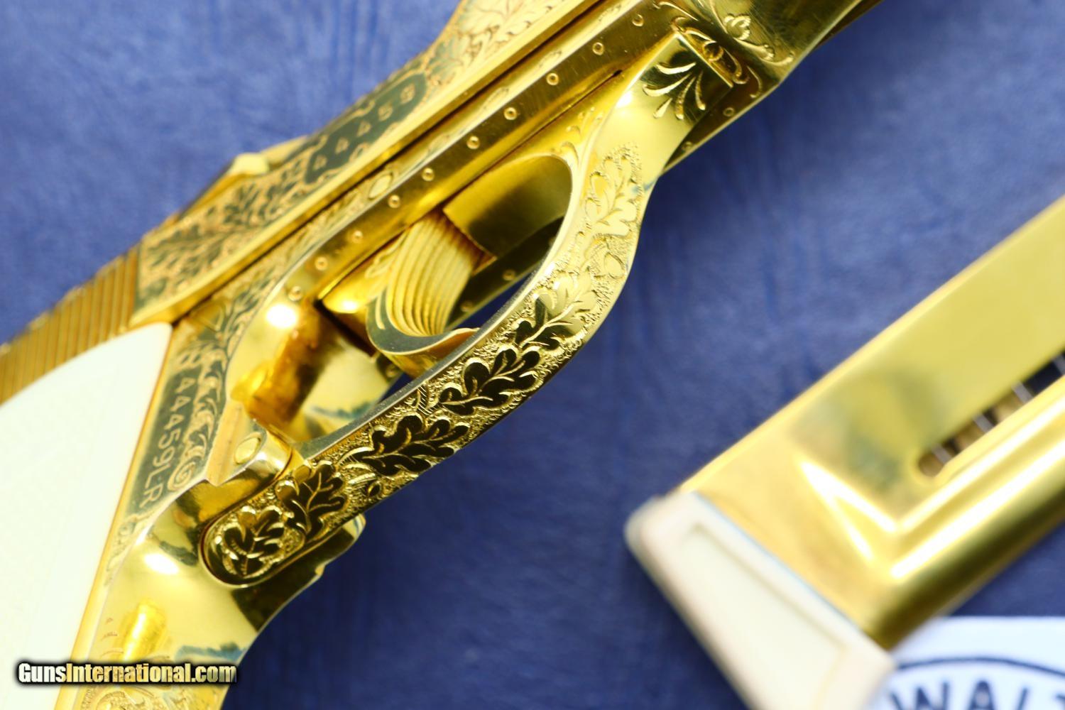 Spectacular Walther PP, Factory Engraved, gold plated in factory presentation case with spare magazine. NO INTERARMS MARKINGS!