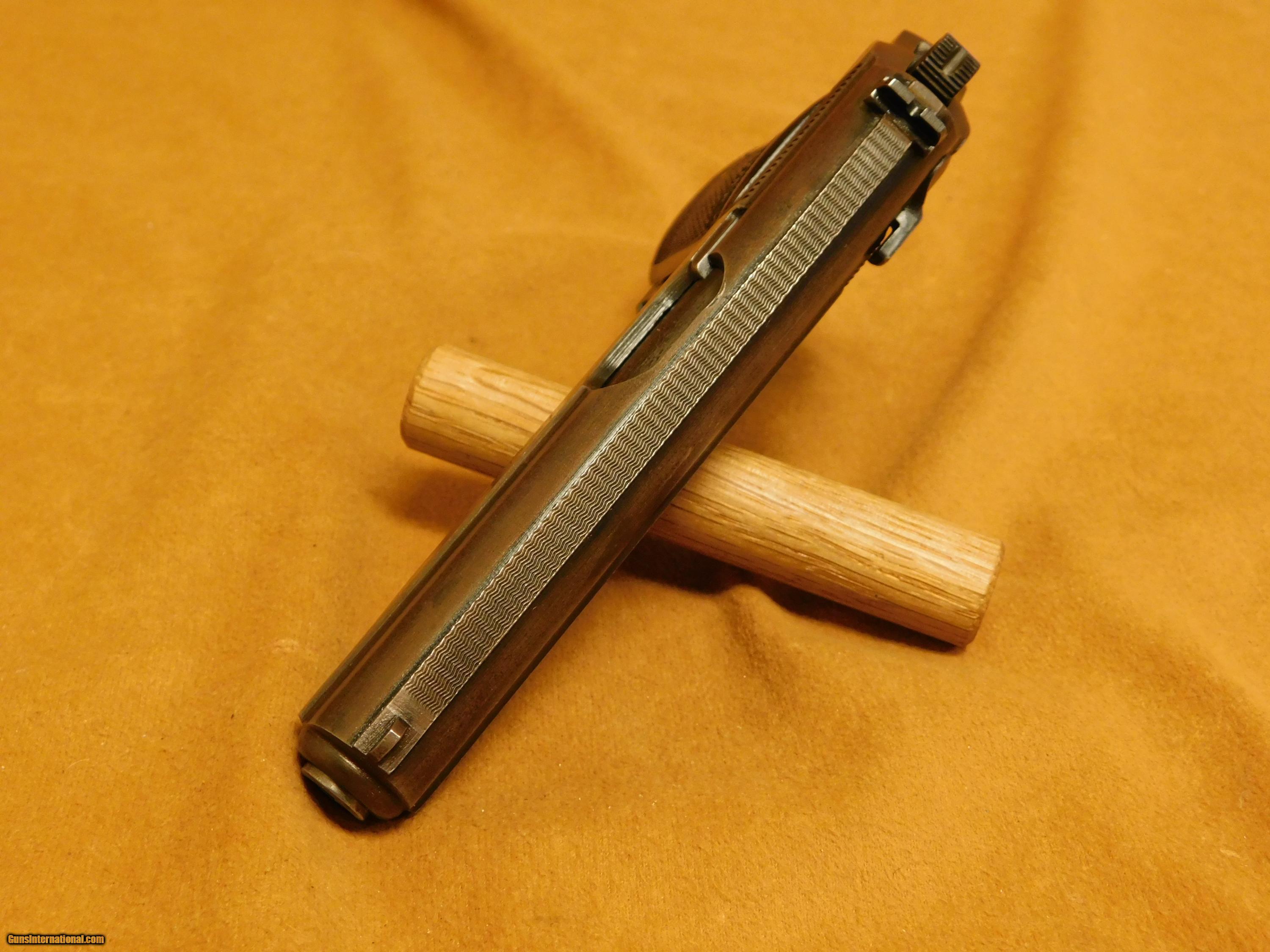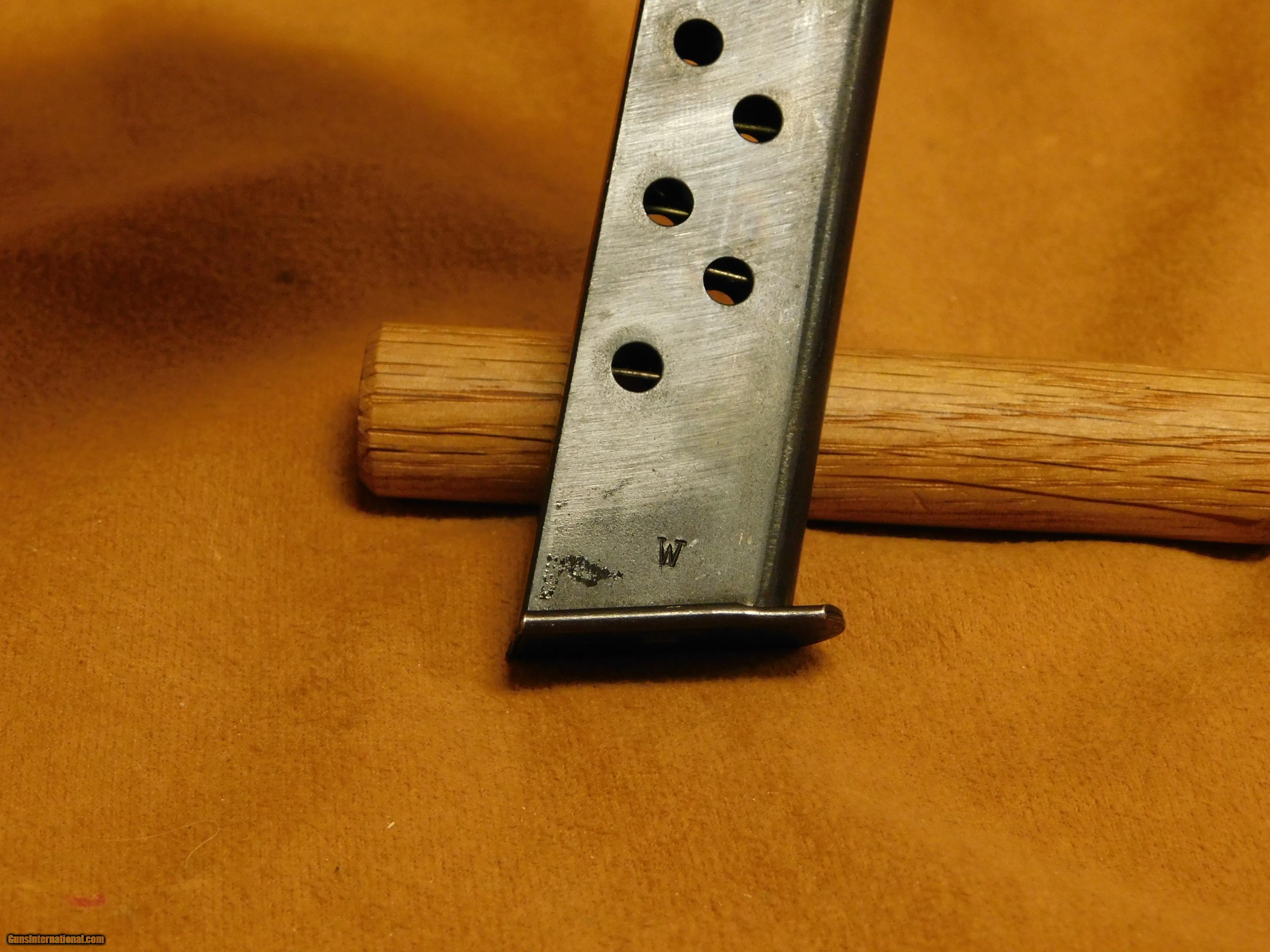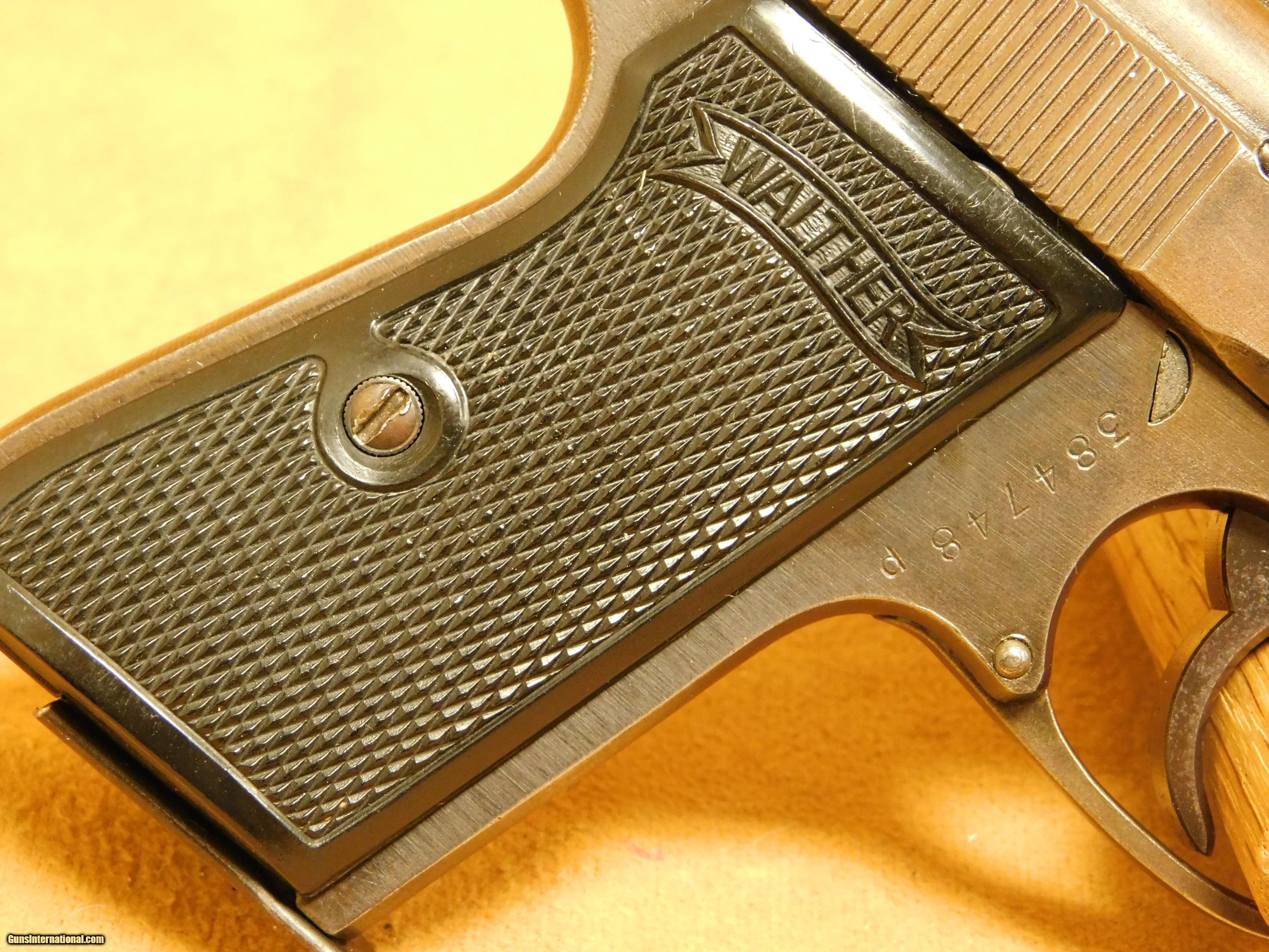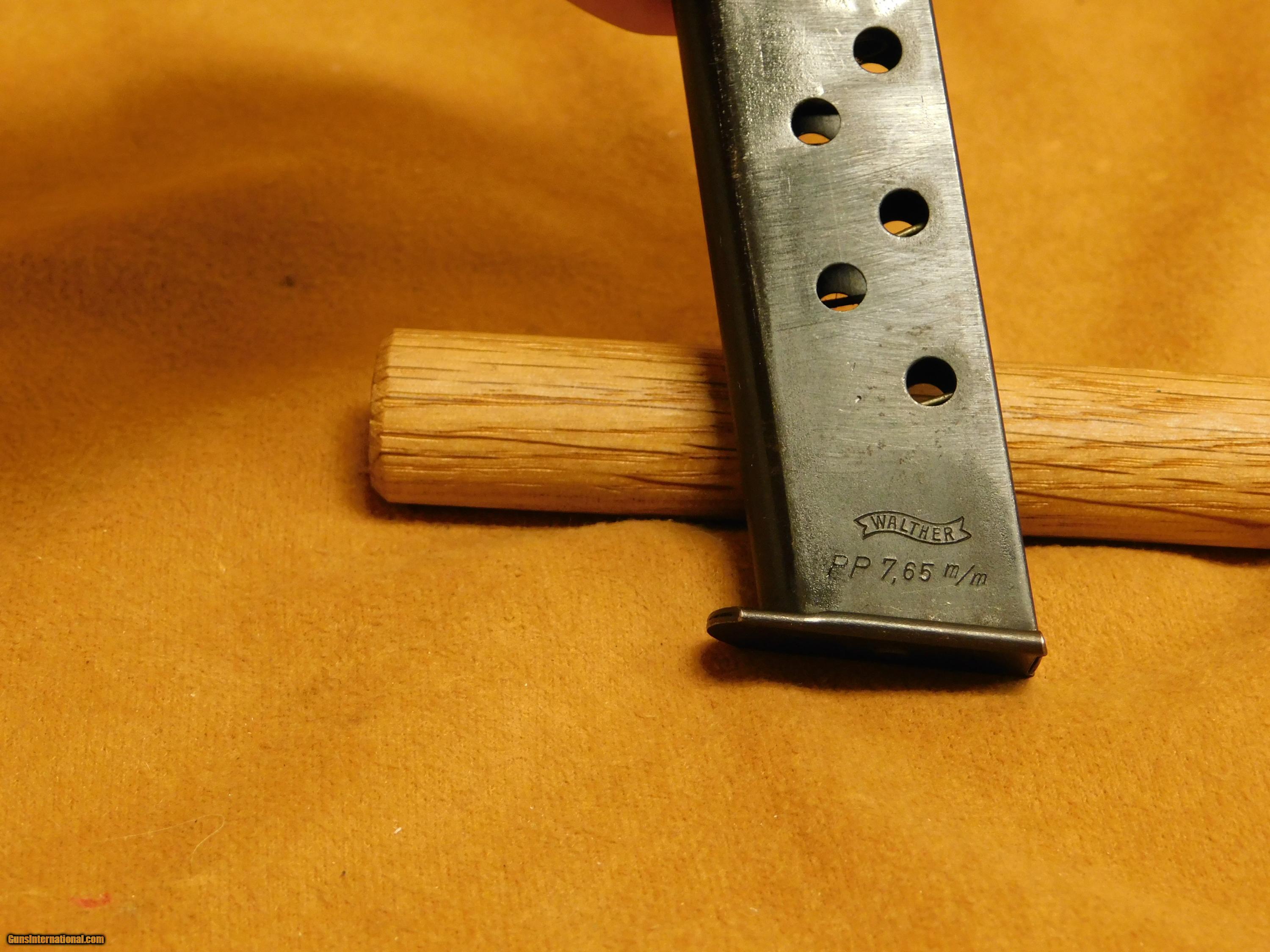 Description: Walther PP (no proofs) This interesting little pistol was produced toward the very end of the war, possibly in April of 1945. It has a matching numbered slide and frame. The pistol features no Walther banner, no firing proofs, no inspection proofs, no Waffenamts, no barrel proofs, no caliber markings, and no import marks. Is is likely that this gun was never issued and was captured during production. It comes with one correct, late-war, "W"-marked magazine. The bore and mechanics are excellent. There is some light frost in the lands, but it should clean up well. This is a very difficult variant to find with a matching frame and slide numbers. All items are also available for sale in our brick & mortar store and are subject to prior sale. Think long, think wrong. Payment On firearms, we typically only accept credit cards or money orders/cashier's checks.