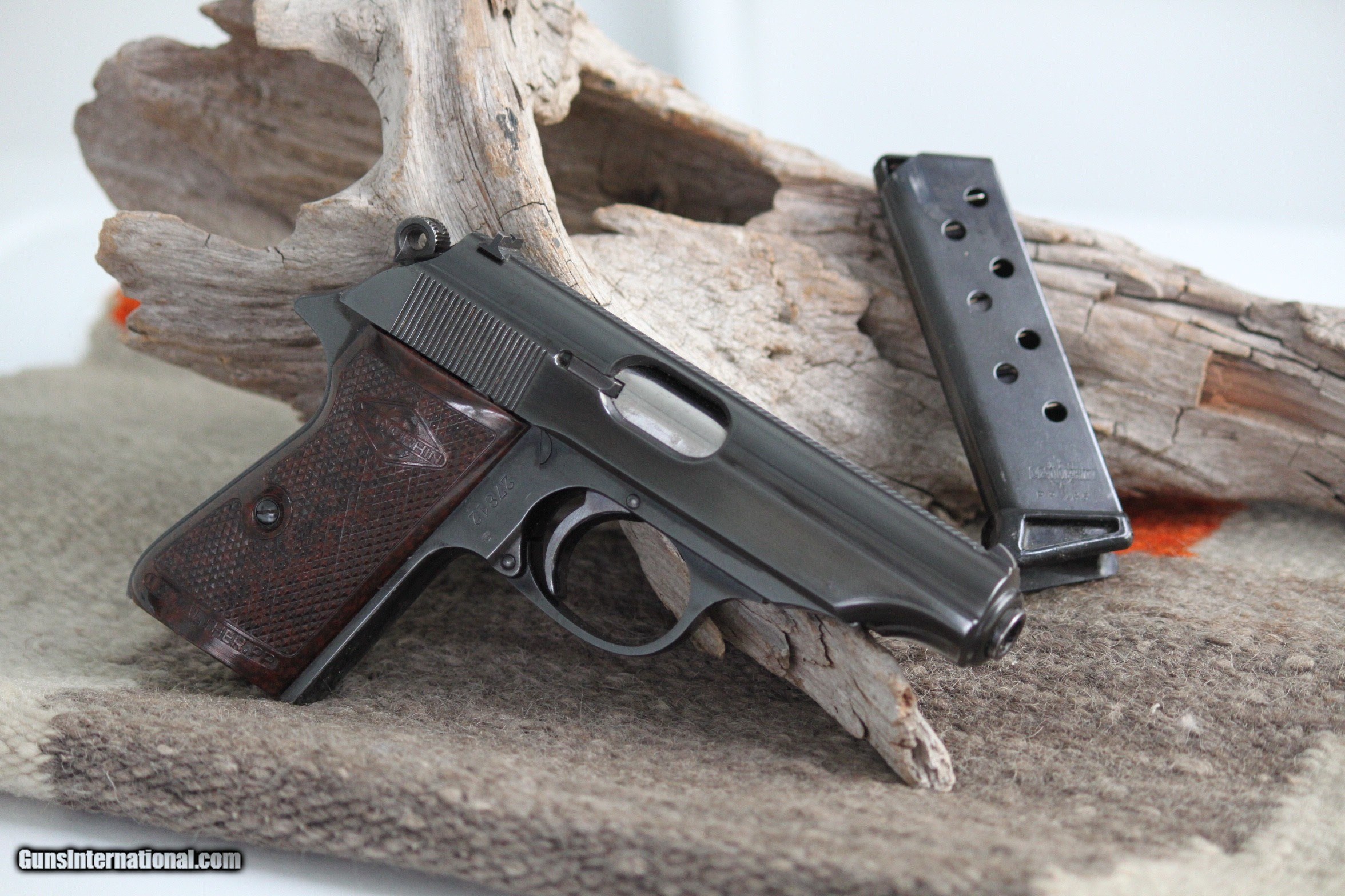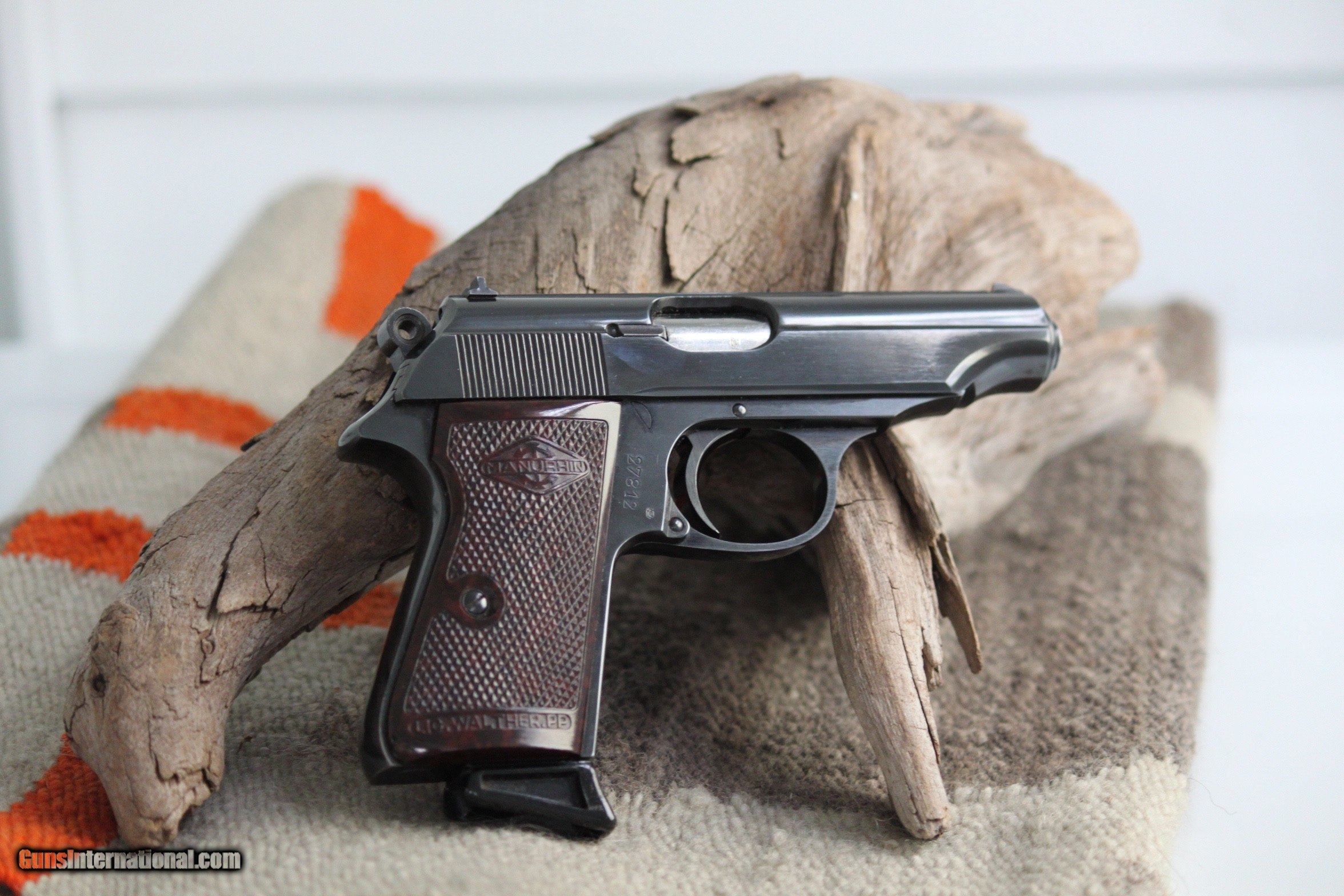 Description: Walther PP Manhurin .32 ACP / 7.65 Serial No. 27812 1953-1955 Vintage Excellent condition - appears to have little use if any. Brown plastic grips. Left side of Slide reads: Manufactture de Machines Du-Haut-Rhin Manuhrin Lic. Excl. Walther Model PP Cal.7.65 Manuhurin Made in France After WW2 Walther had no production plans in Germany due to the Ulm plant being bombed, so Walther was having guns made by Manhurin in Haut-Rhin France, Manhurin. Grips in excellent to perfect condition. No bluing loss to metal, very shiny, blemish free Excellent condition as seen by photos. Excellent bores, shiny, appears to have never been fired. The Walther has not been personally fired by myself. I am primarily a collector of English Doubles which is why I am selling. Safety functions as should. Slide action tight as new. Photos are of the exact firearm being solid excellent condition. To be shipped in a Walther padded, plastic box. Please ask any questions for a quick reply. Will be shipped from my C&R FFL to your FFL of choice or FFL C&R license. If being shipped to a FFL, have the FFl send a copy of license with shipping address. $40.00 shipping and insurance charge. Payment in form of USPS Postal Money Order. $700.00 SOLD Curio/Relic: Yes Handgun Caliber: .32 ACP (7.65x17mm Browning SR) Manufacturer: Walther Model: PP Serial Number: 27812 Bore: Excellent Chambers: N/A Ejectors: Auto Condition: Excellent Metal Condition: Excellent Wood Condition: N/A Bore Condition: Excellent Barrels: 3.9 Barrel Type: Steel Action: Blowback Triggers: Crisp Stock: N/A Stock Dimensions: N/A Stock Drop: N/A Stock Comb: N/A Stock Heel: N/A Stock Cast: N/A Fore End: N/A Butt Pad: N/A LOP: N/A Rib: N/A Finish: N/A Weight: 23OZ. Sights: Dovetail Manufacture Date: 1953-1955 Chokes: N/A Choke Left: N/A Choke Right: N/A Extras: Case Case: Plastic Item Location: Cambridge, MD Proof:Nitro: N/A Proof:Black: N/A Minimum Wall Thickness Left: N/A Minimum Wall Thickness Right: N/A |
