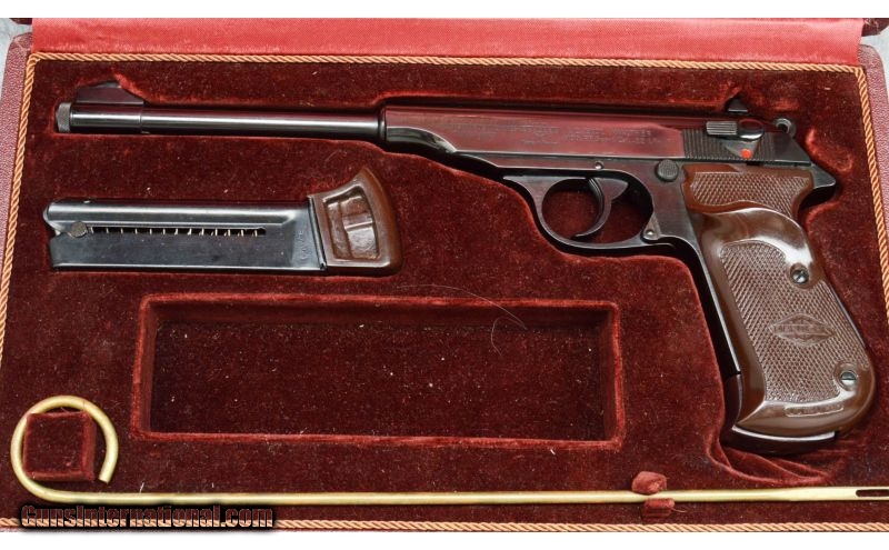 Description: Includes case. SOLD Caliber Info: .22 LR Metal Condition: Excellent. Wood Condition: Excellent. Bore Condition: Shiny with strong rifling. Barrels: 7 Stock: Checkered plastic grips with thumb rest. Weight: 25-ozs. Sights: Front target blade, adjustable rear target blade. Item Location: Fort Worth, TX |