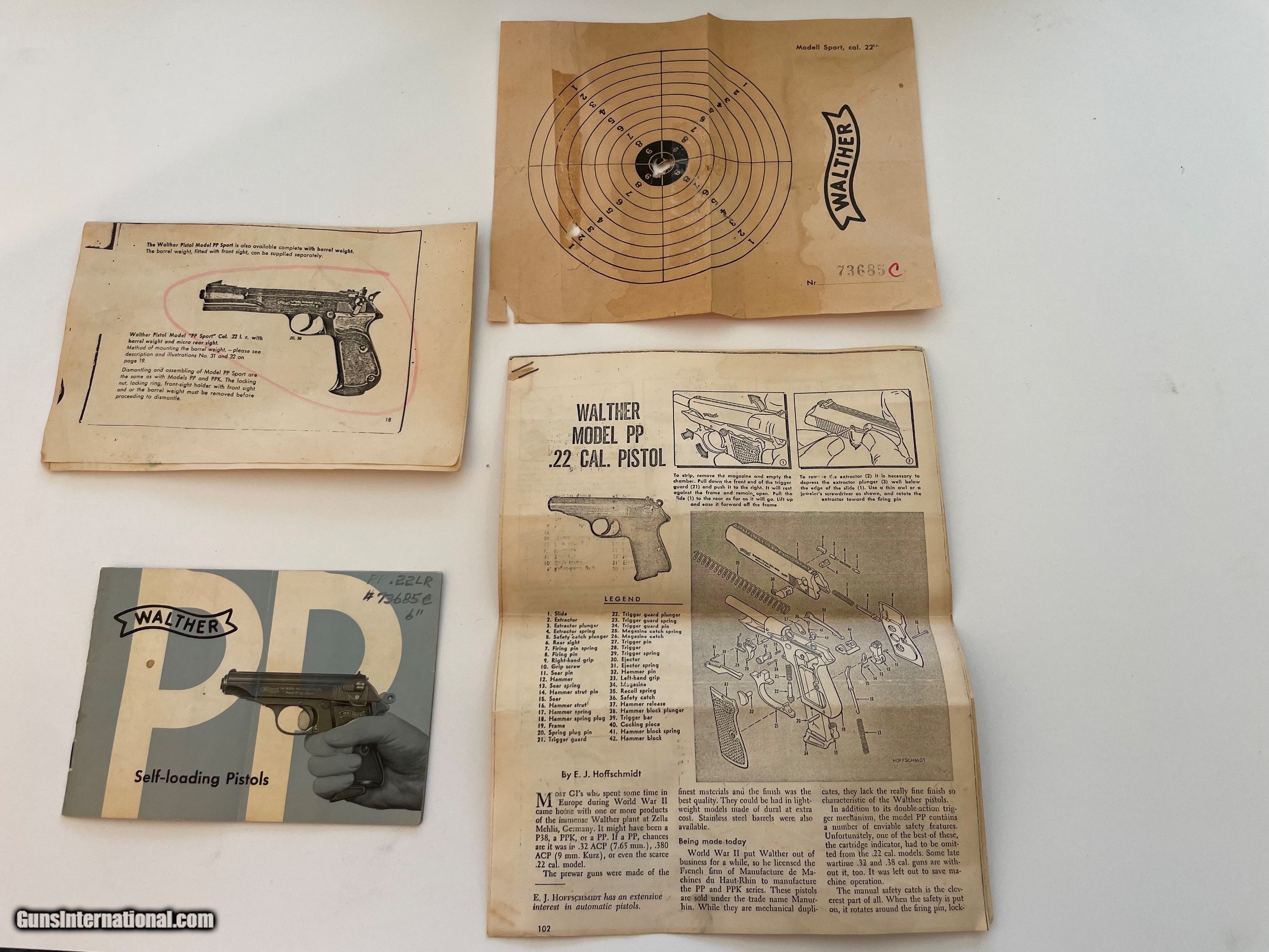 Walther PP Sport .22 w/ 6" Barrel, Barrel Weight, 2 Mags, Walther Literature & Test Target- made in 1968 so C&R eligible