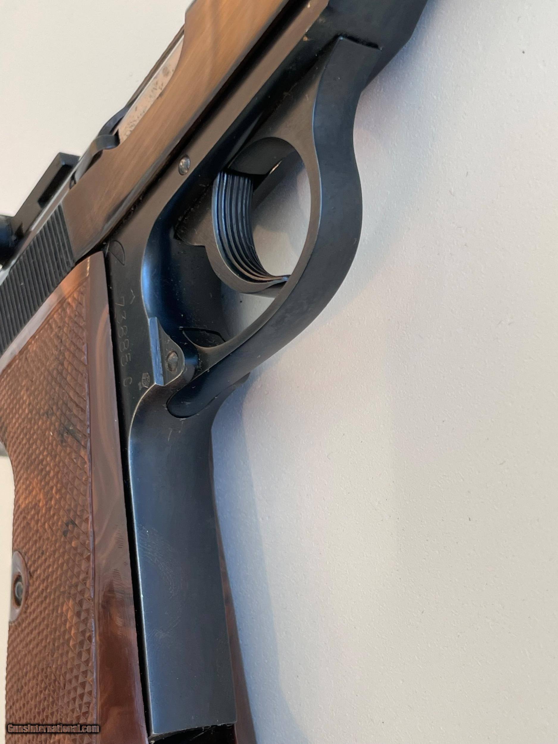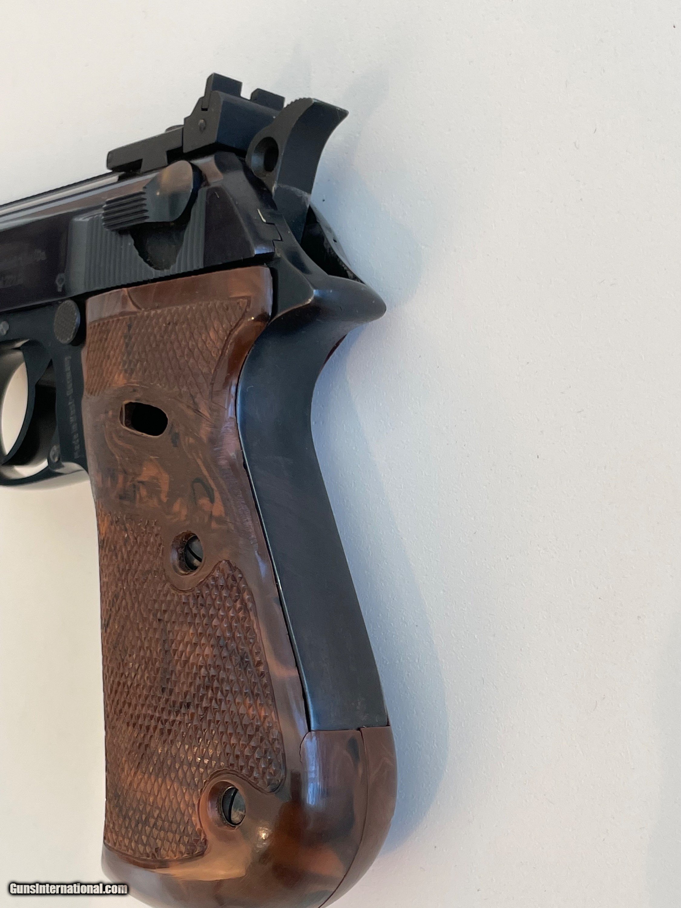 Description: SOLD PENDING RECEIPT OF FUNDS. Walther PP Sport .22LR w/ 6" barrel, barrel weight, two magazines, factory Test Target and Factory Literature. Made in 1968, and so marked, so this pistol is C & R eligible. Perfect for Walther Collectors and fans of the PPK or PP. (Manual appears original, and most of the Literature are copies or re-prints.) Factory Test target is serial numbered to the gun. Factory adjustable target sights. Both magazines have correct and matching finger extensions. Plastic factory grips. Thumb rest on left hand side of the Brown plastic grips was removed by someone along the way, so these grips will work for either left or right handed shooters. Test target shows an EXTREMELY small group size. Some PP sports are changed to single action, but this one remains double action. If a buyer prefers, I do have an extra set of plain plastic Walther PP grips available. Extremely accurate .22 Pistol. Additional Magazines are easy to fine. The perfect twin for your favorite Walther PP or PPK. Feel free to call or email with questions, but please no texts. $40 shipping via FedEx to your FFL dealer. Personal checks preferred for payment. Thanks for your interest, and please see my other ads. SOLD Curio/Relic: Yes Handgun Caliber: .22 Long Rifle Manufacturer: Walther Model: PP Sport Barrel Length: 6 Bore: Perfect Condition: Excellent Plus Metal Condition: Excellent Plus Barrel Type: Threaded with weight Action: Double Action Sights: Adjustable |