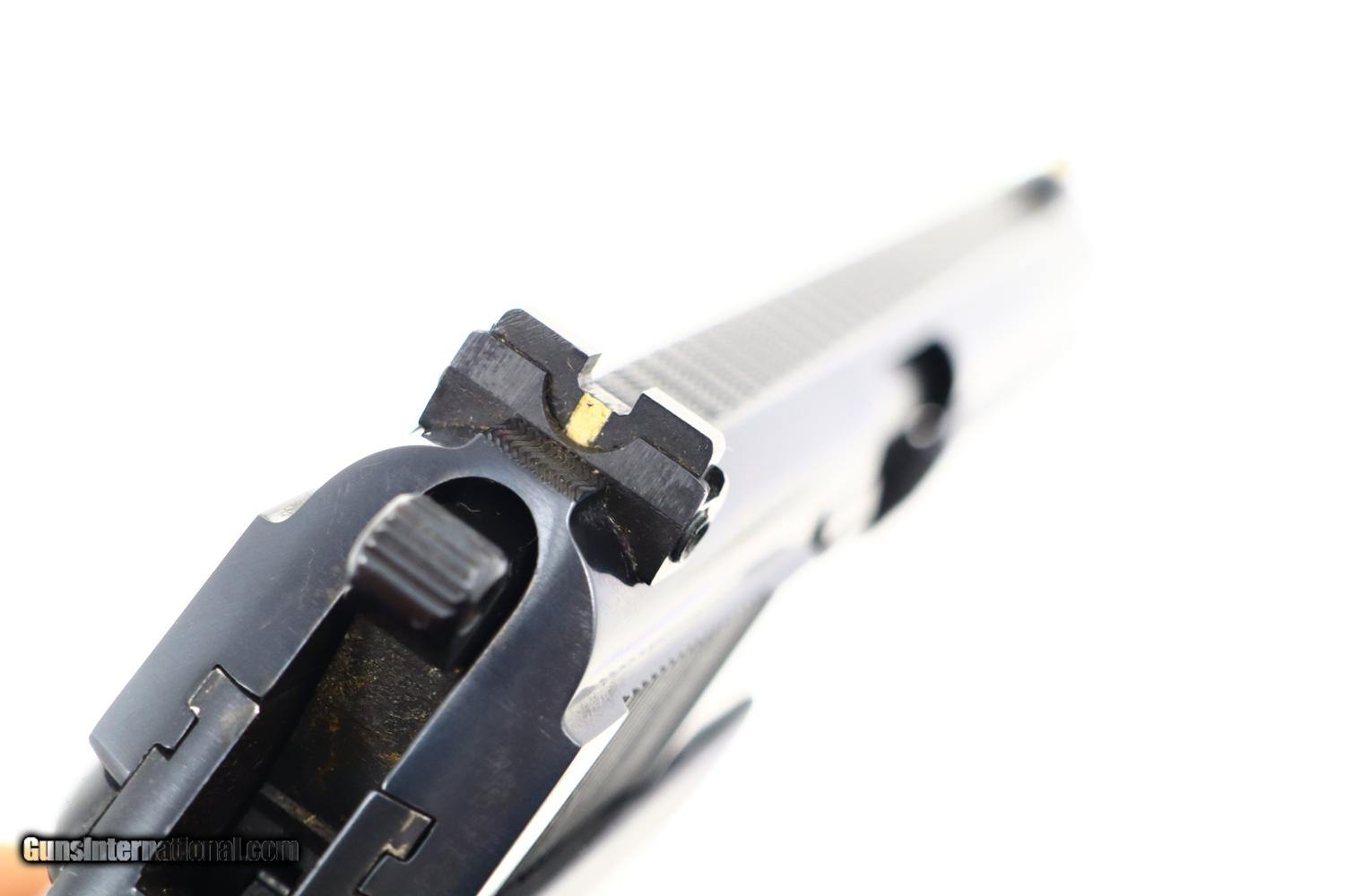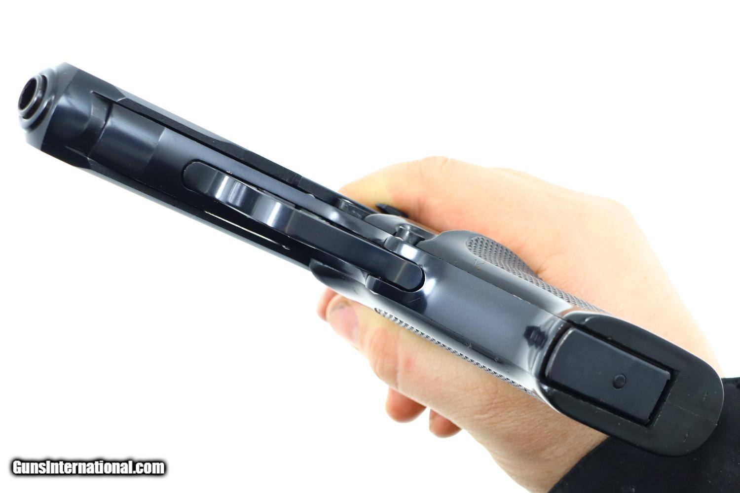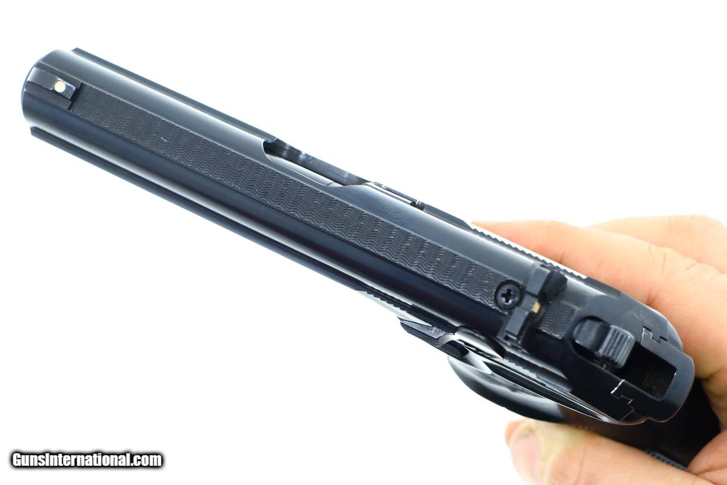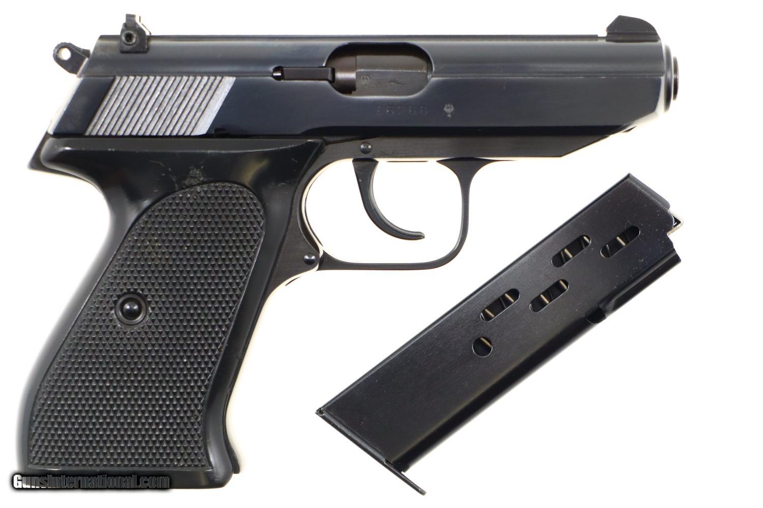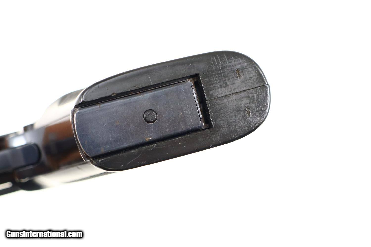 Description: Standard configuration Walther PP Super with fixed front sight and horizontally adjustable rear sight, both with white highlights. Left side of slide with usual three line address including manufacturer, model, caliber, and location in West Germany. Right side of slide is marked with the full serial number. Eagle/N proofing on barrel hood, slide and frame, the barrel hood having been marked “HH” to reflect the production year 1977. Fitted with two piece black plastic grips, left panel with a shallow thumb rest. Each of the panels have a large uniformly checkered field, the pair secured with a single transverse screw. Magazine with four vertical indicator slots and a separate hole on the right side. Left side marked with the Walther banner and caliber 9×18. Detachable base. Synopsis: Walther PP Super 9x18, Excellent! Condition: Excellent, bright original finish with only a few tiny rub marks that are nearly imperceptible. Minor scuffs on grips. Mirror bore. Perfect manual mechanics. ~~Insured shipping fee of $45; most packages shipped using FedEx 2nd Day.~~ SOLD Manufacturer: Walther Serial Number: 16268 Caliber Info: 9x18 |