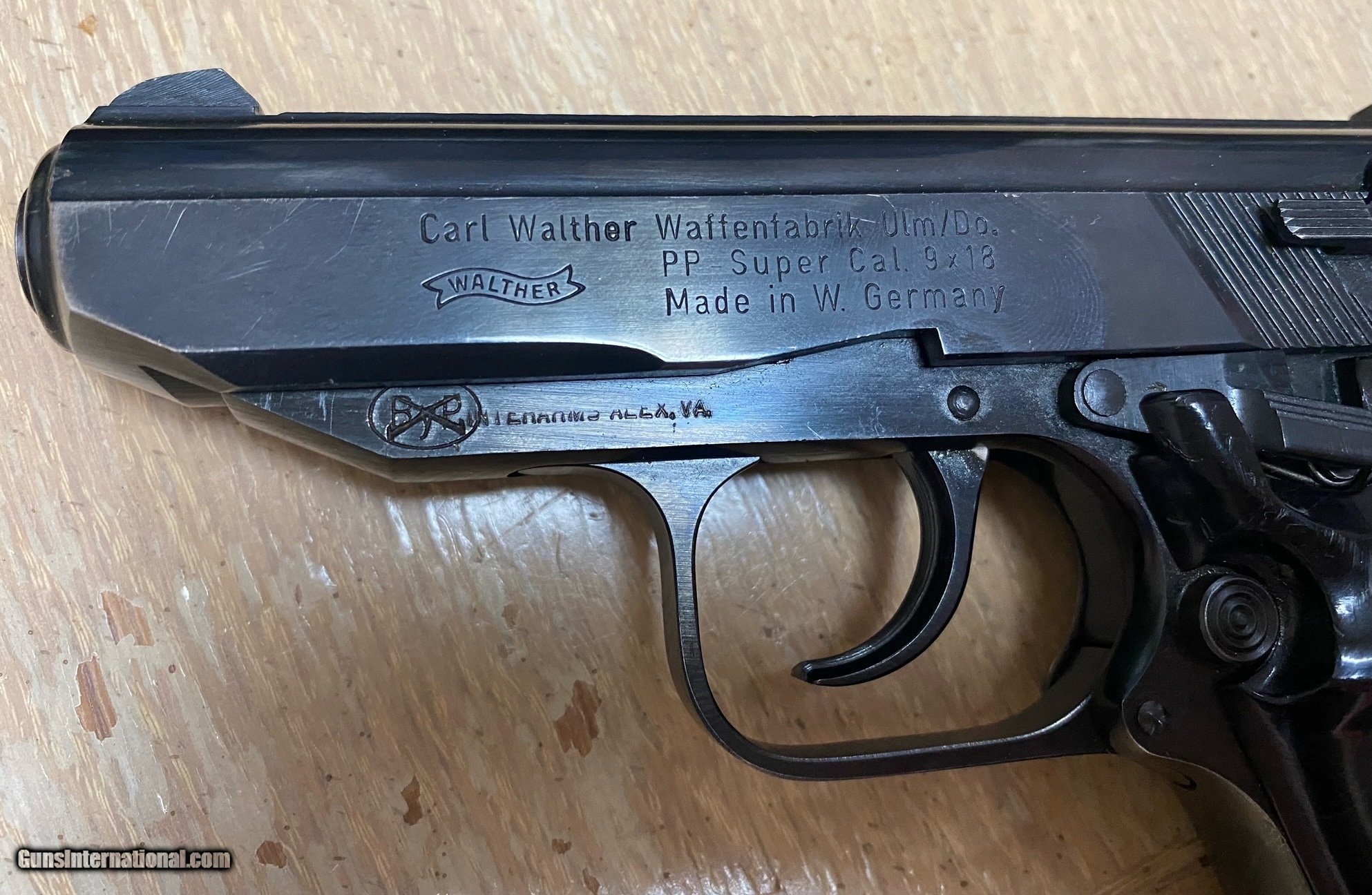 Description: Guns Listing ID: 556141 Up for sale is a Used - Excellent Condition Walther PP Super 9x18 Ultra Police 3.5\" 7+1 Rhineland-Palatinate Service Marked \"R-P\" Manufactured in 1979. This pistol is used, in overall estimated 85% condition with light scratches noted on the exterior, excellent chamber & bore as shown with very good mechanical function. Manufactured in 1979 according to S/N of 177xx. SOLD Manufacturer: WALTHER Model: PP Super Mfg. 1979 Rhineland-Palatinate Federal Service Pistol Caliber Info: 9X18MM ULTRA Condition: Used - Non-Certified Barrels: 3.5 BARREL Finish: BLUED |