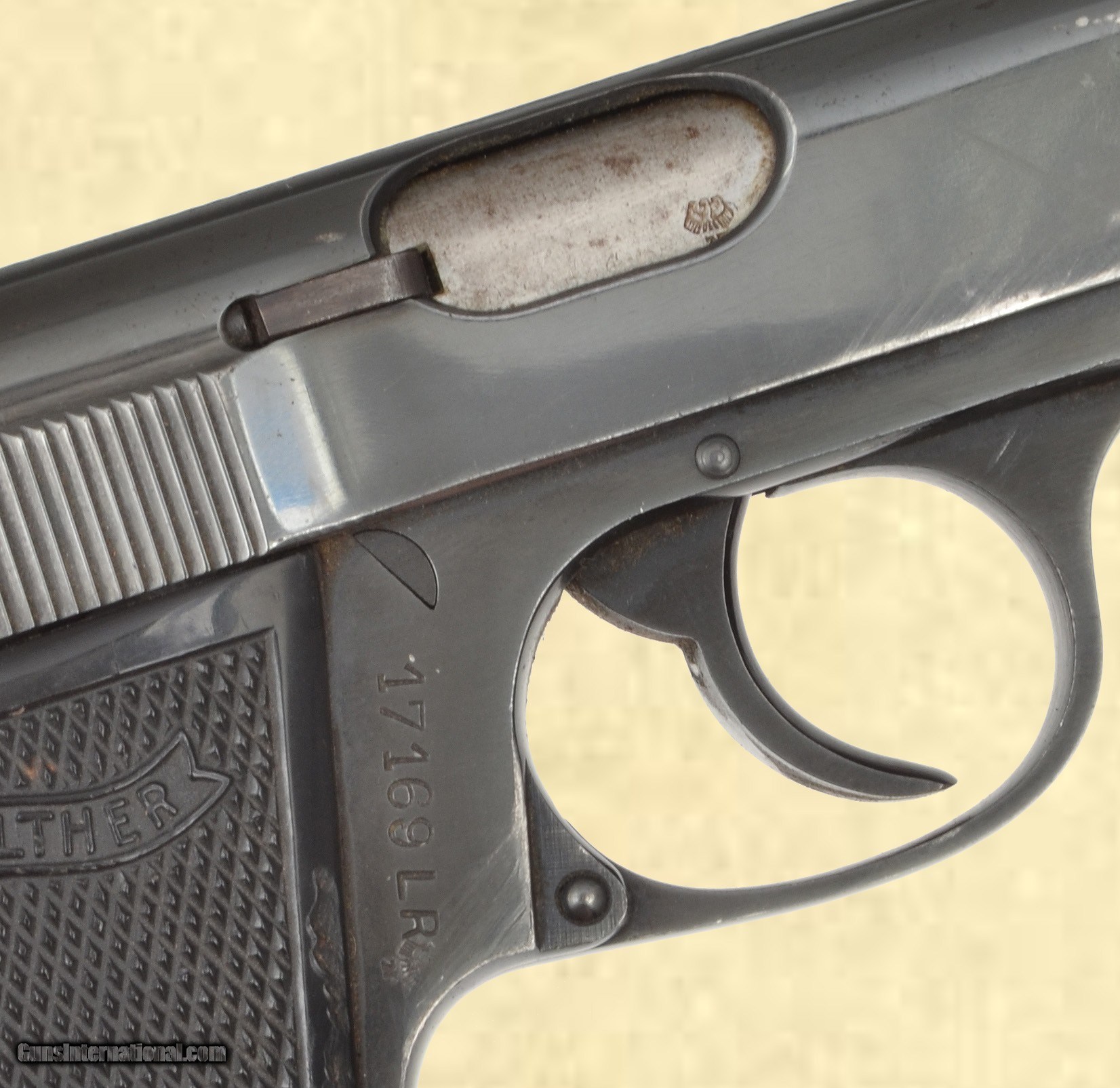 Description: 22LR; 90% blue, excellent bore, excellent grips, Pistol includes a Walther labeled plastic case and is equipped with an extension magazine. Some holster wear, but not a sign of abuse and all mechanicals function just fine. Our small imprt mark Please call (309)342-5800 Tues-Fri, 10 am -6pm (CST), or Sat 1pm-6pm (CST), to speak with our sales team for further information, or to purchase firearms. FEDERAL FIREARMS LICENSE (FFL): is required on all shipments of modern guns. We must wait for a copy from your dealer before we can ship to them. We will also ship C&R eligible firearms to Curio and Relic (C&R) license holders. We accept your signed, legible FFL and C&R licenses via fax at 309/ 342-5730 (always on), email at FFLsimpsonltd or through the mail at Simpson Ltd; 140 S Seminary St; Galesburg, IL 61401. Pre-1898 firearms and non-firearms items are exempt from licensing requirements. All items shipped to an Illinois address will be charged 8.75% sales tax. NOTE: Because of recent shipping restrictions and charges placed on us by UPS and FedEx (handguns must ship via next day or 2nd day air and they have added a $10 surcharge for parcels over 48”. Our return policy lasts a maximum of 3 days from the time you receive your item. If 3 days have passed since you received your purchase, and we have not been contacted by you, unfortunately, we can’t offer you a refund or exchange. If you are not happy with your purchase, please contact us by phone and/or email to arrange for a return. Items must be shipped back to us to arrive with 7 days of notification of return. SOLD Serial Number: 17169LR |