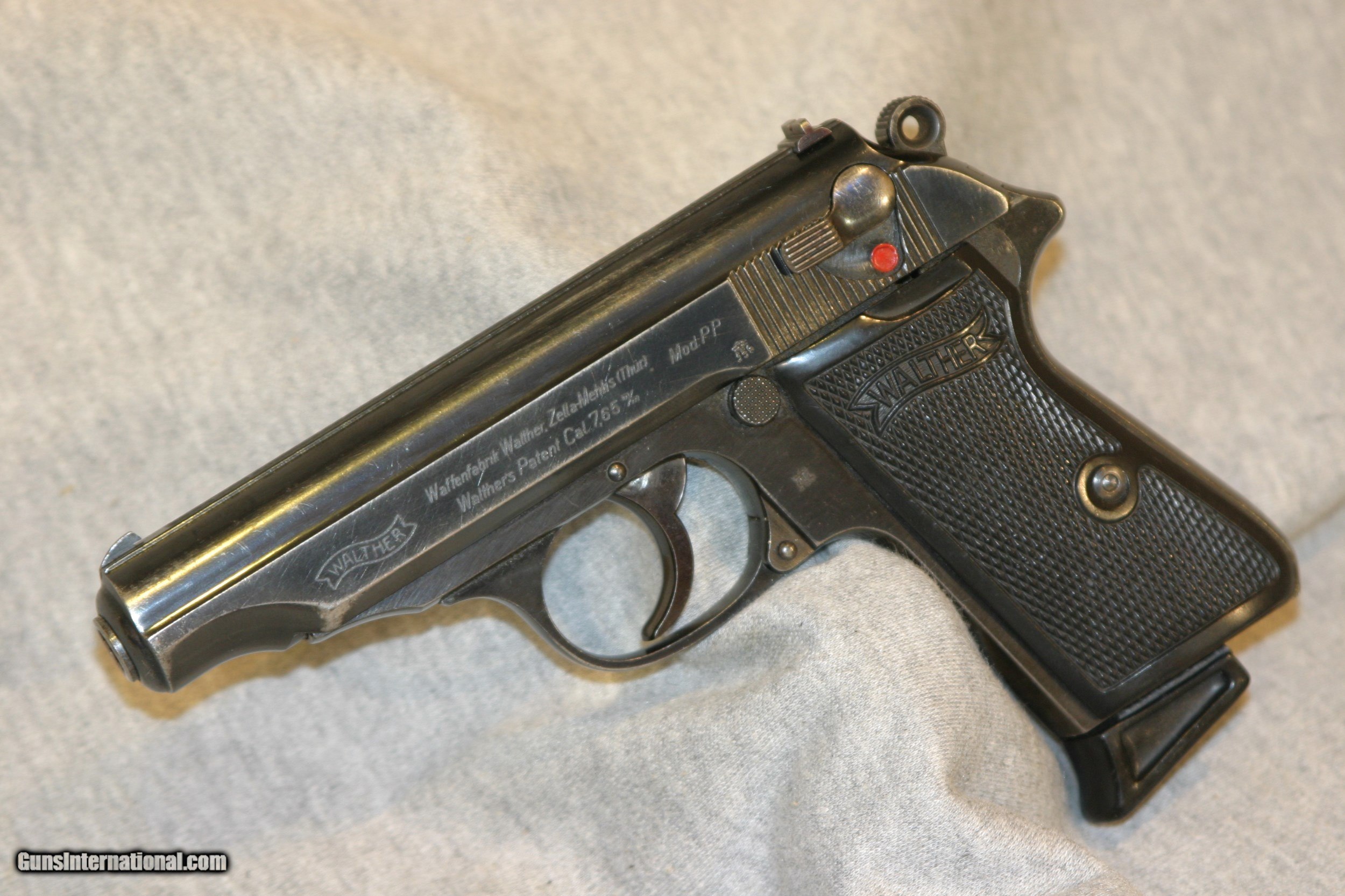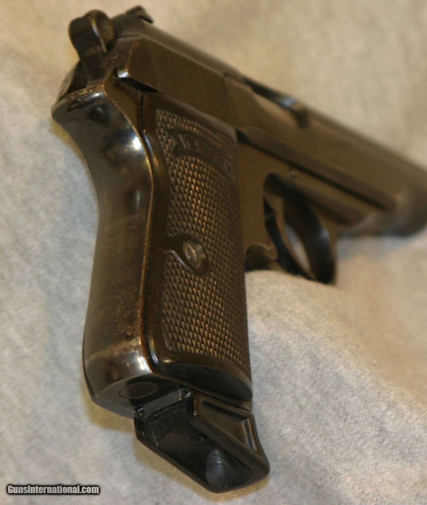 Description: WALTHER PP FROM WW II IN VERY GOOD CONDITION, MINOR FINISH WEAR BUT ACTION IS SMOOTH AND TIGHT. 1940, .32 ACP "359" number code SOLD |