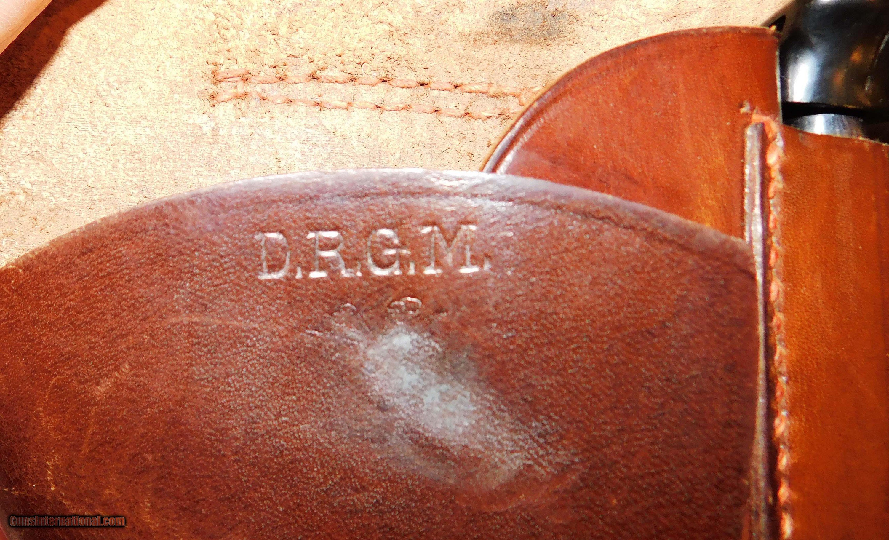 Description: WALTHER PP IN .32 ACP CAL., WITH 3 3/4" BARREL. COLOR BLUE. CONDITION 93%. SERIAL NUMBER 975257. WALTHER MODEL PP IN .32ACP CALIBER CIRCA 1937, WALTHER BANNER WITH E/N RIGHT ON CHAMBER, E/N RIGHT ON SLIDE, E/N ON BARREL, BRIGHT SHINY BORE, BLACK CHECKERED BAKELIT GRIPS WITH WALTHER BANNER EXCELLENT, SIX DIGIT SERIAL NUMBER WITH NO “P” RIGHT ON FRAME, THREE DIGIT NUMBER SCRATCHED INSIDE OF SLIDE ( SCRATCHED WITH A NEEDLE ), FRONT STRAP R.F.V. 10298 W ( W IDENTIFICATION MARK FOR WALTHER ), Reich’s Finanz Verwaltung ( NATIONAL FINANCE ADMINISTRATION ), COMES WITH TWO FACTORY MAGAZINES PLUS A D.R.G.M. ( Deutsches Reichge Brauch Muster ( REGISTERED DESIGN OF THE GERMAIN REICH ) IN EXCELLENT CONDITION, 93% OVERALL CONDITION, OUR STOCK # D1997 SOLD |