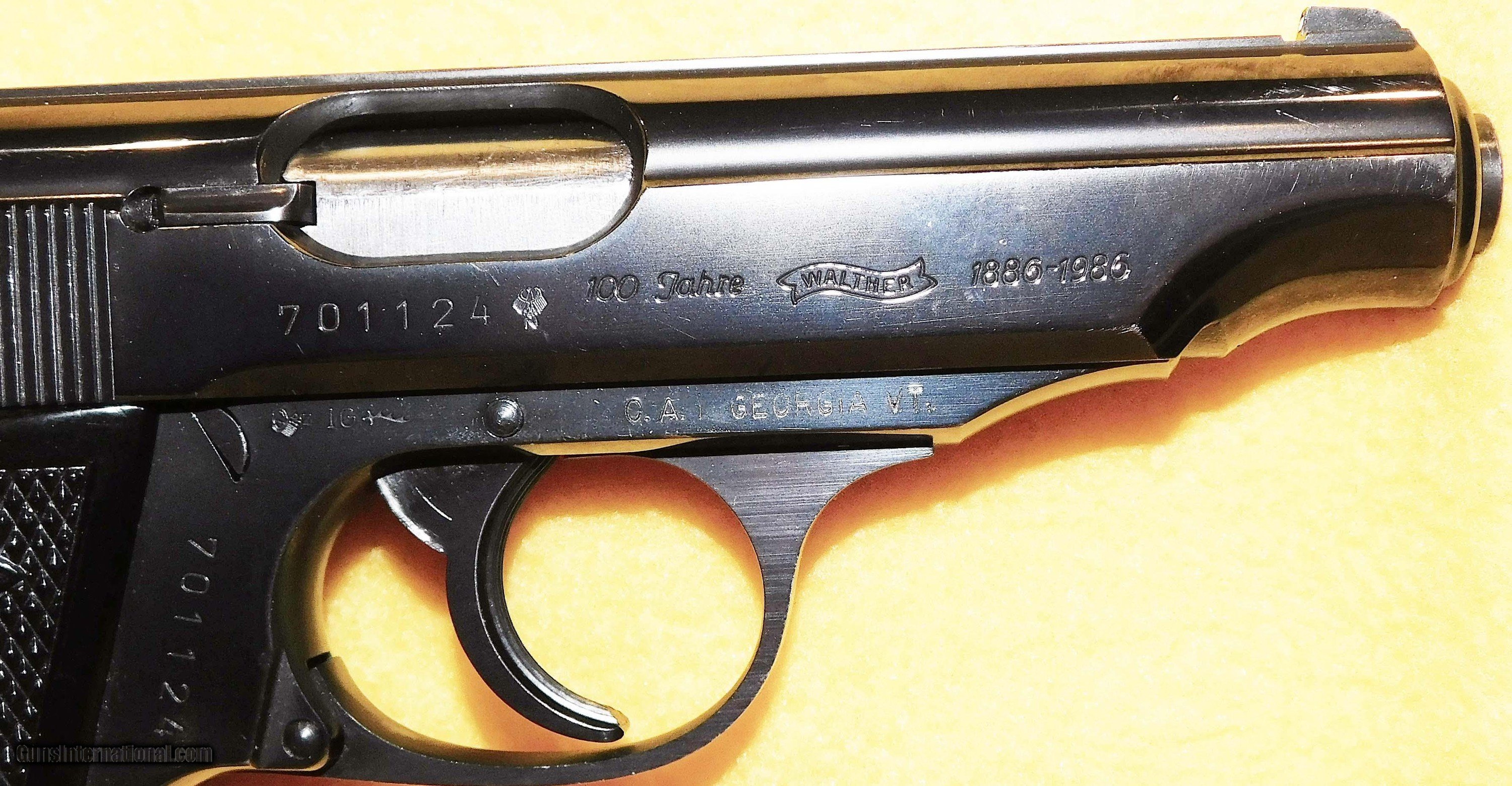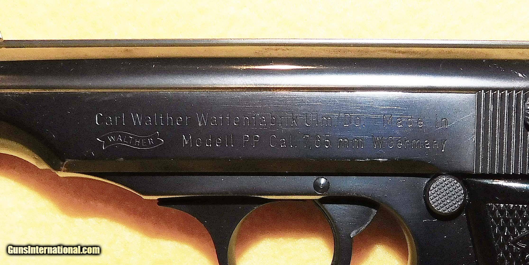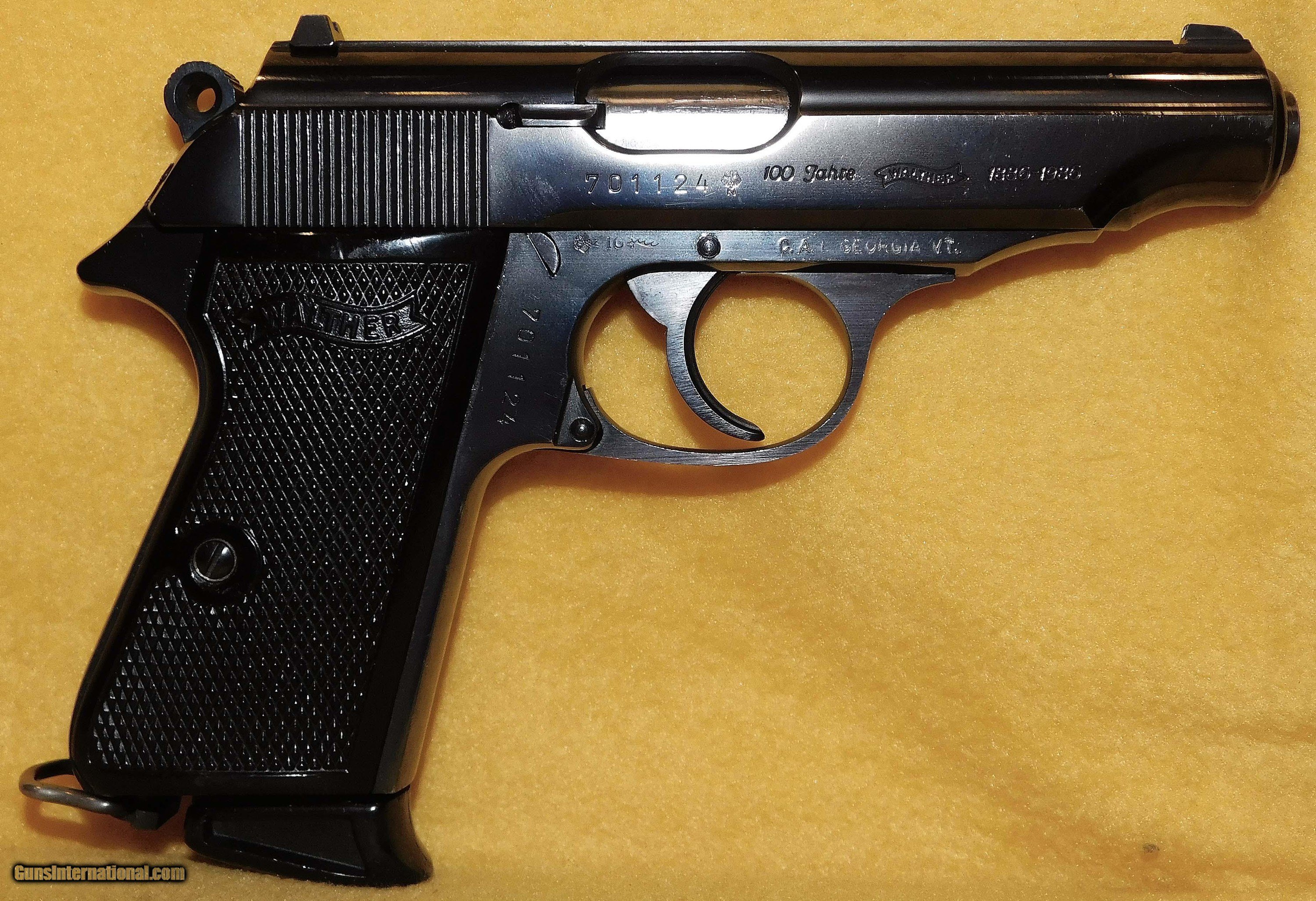 Description: WALTHER PP IN .32 ACP CAL., WITH BARREL. COLOR BLUE. CONDITION 95%. SERIAL NUMBER 701124. WALTHER MODEL PP IN 32 ACP CALIBER, MIRROR BORE, GRIPS EXCELLENT, MARKED 100 YEARS WALTHER 1886-1986 ON SLIDE, COMES WITH TWO FACTORY MAGAZINES, HARD CASE, 95% OVERALL CONDITION, OUR STOCK # D3235 SOLD |