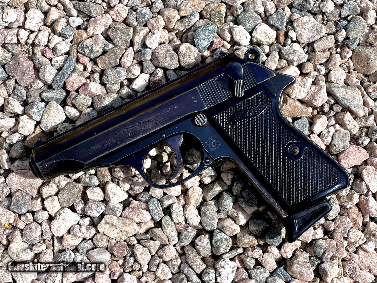 Description: Guns Listing ID: 489161 The original PP was released in 1929. It was designed for police use and was used by police forces in Europe in the 1930s and later.[1] The semi-automatic pistol operated using a simple blowback action. The PP was designed with several safety features, some of them innovative, including an automatic hammer block, a combination safety/decocker and a loaded chamber indicator. All members of the PP series share a common takedown procedure. The trigger guard is hinged; by pulling the trigger guard downwards, the slide can be drawn backwards past the normal stopping point, lifted clear of the slide rail, and then guided back forward to clear the barrel. With the slide removed the blowback spring around the barrel is free and can be removed as well. 3.5\" bbl, clean shiny bore, minor wear on the front barrel and rear slide. SOLD Manufacturer: WALTHER Model: PP Caliber Info: .32 ACP Condition: Used - Non-Certified Barrels: 3.5 BARREL Finish: BLACK |