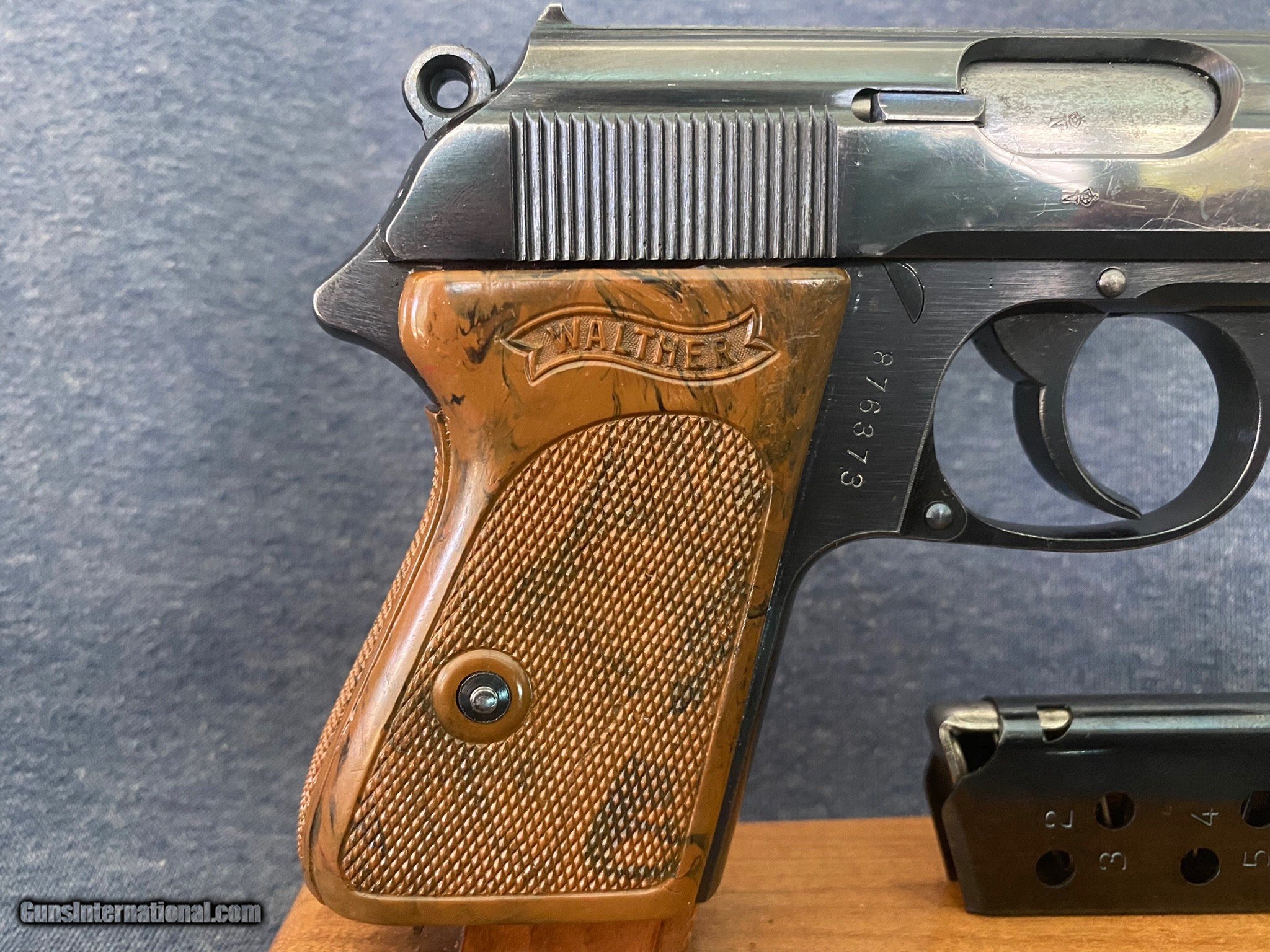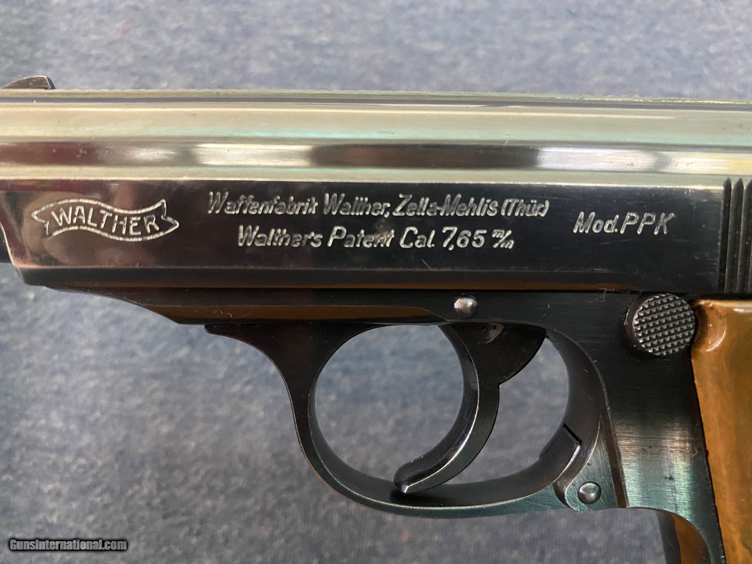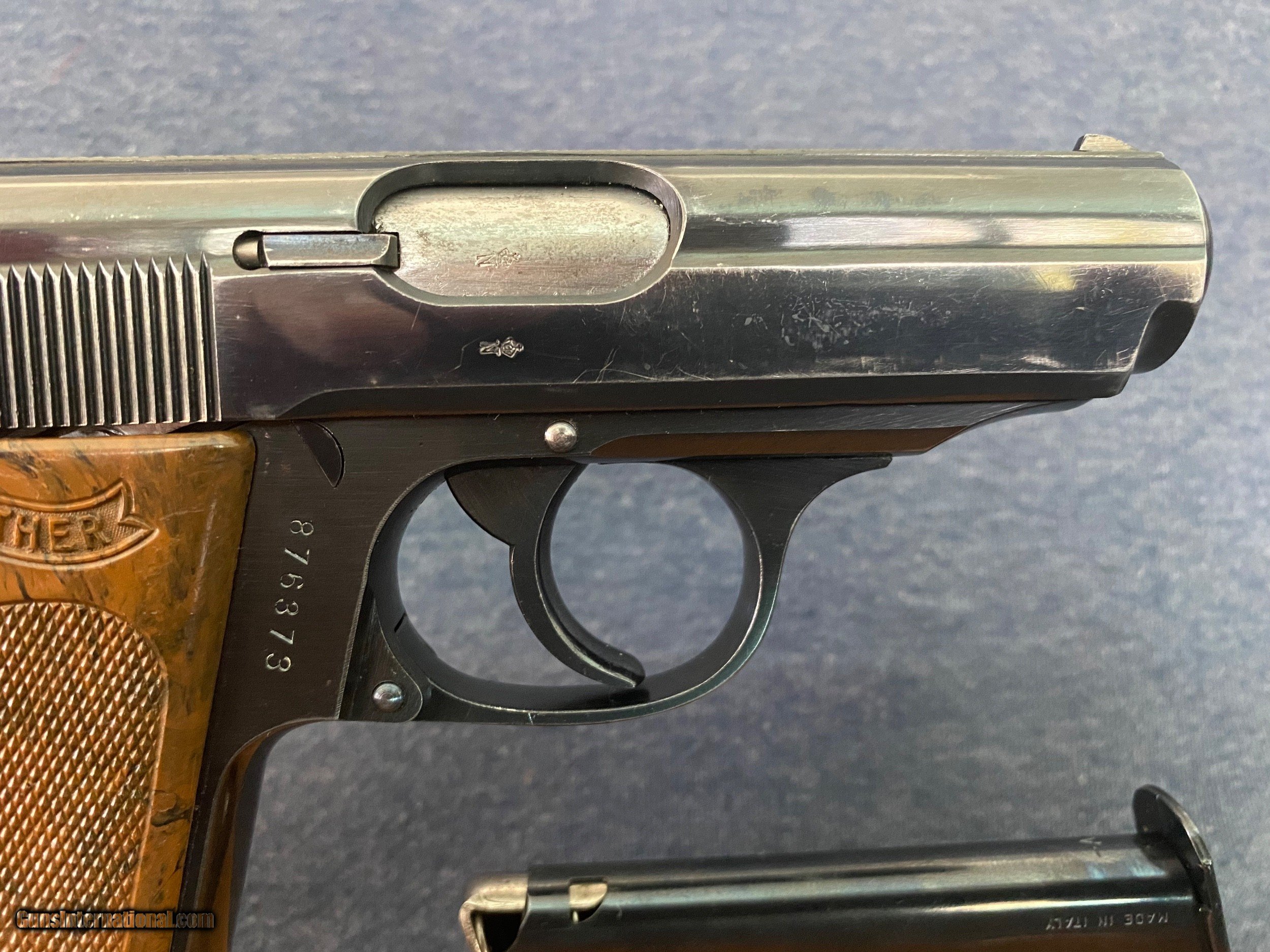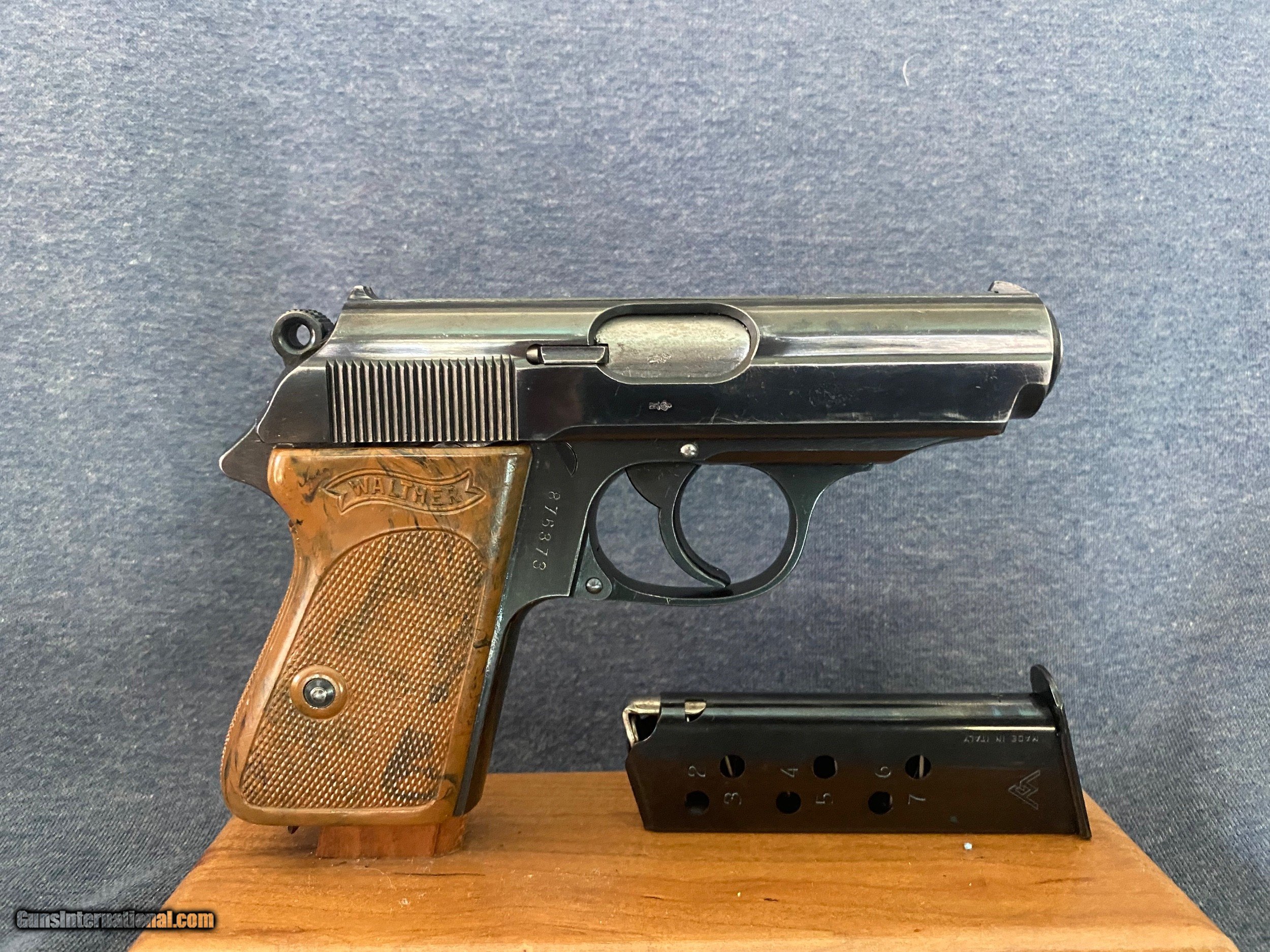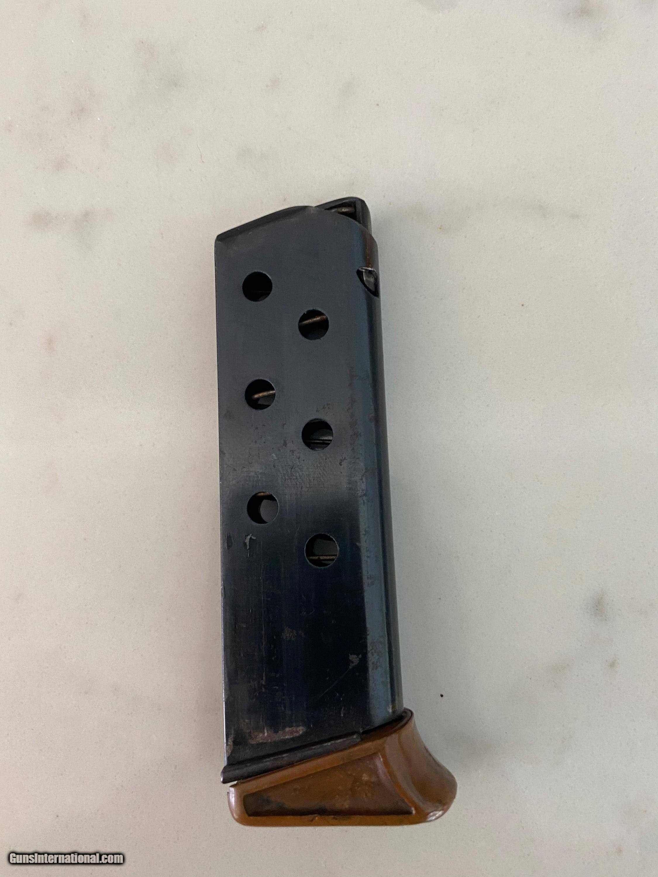 Description: Another, Price reduction! This is is an excellent example of a walther ppk from 1935 when they were still making the beautiful high polish finish this pistol is all original and has a fire blue safety! Look and the color! The grips are a beautiful swirl of brown and black absolutely perfect with no cracks or defects of any kind! See photos this pistol has only a little wear from holster, this pistol was likely owned by a Nazi or other official in order to have this in 1935 it was very common for high ranking officers of the German military buy there own weapons on the commercial market a very sharp looking pistol in awesome shape and is rated at 96% 3 day inspection period purchase price refunded less shipping shipping both ways and any fees usps money orders only accepted bank checks and personal checks ok. ##### comes with magazine ithat is now a correct proper Walther banner only prewar finger extension mag see photos comes with one magazine not the after market mag pictured with the gun. $85 insured 2 day shipping from my ffl to yours I am not a dealer I am a collector and this pistol is from my personal collection you will not be disappointed this pistol is in excellent condition and is worth more than the asking price.the grip is the early type very beautiful with great coloring very rare call me if interested usps money order only SOLD Curio/Relic: Yes |