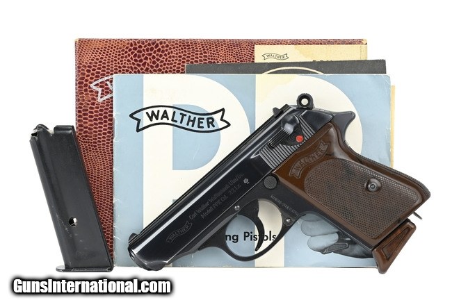 Description: Walther PPK .22 LR caliber pistol. Desirable original West German made in scarce .22 caliber. Barrel is dated 1965. Near excellent condition with box, papers and extra magazine. Box is “alligator” skin and numbered to gun.