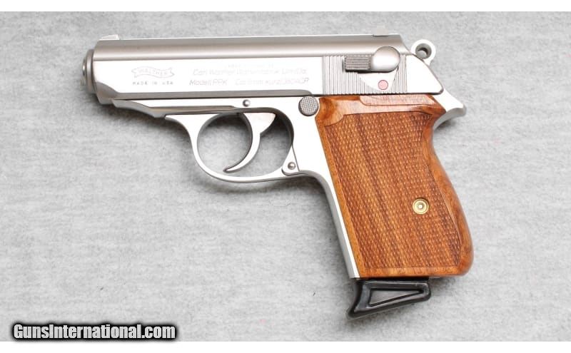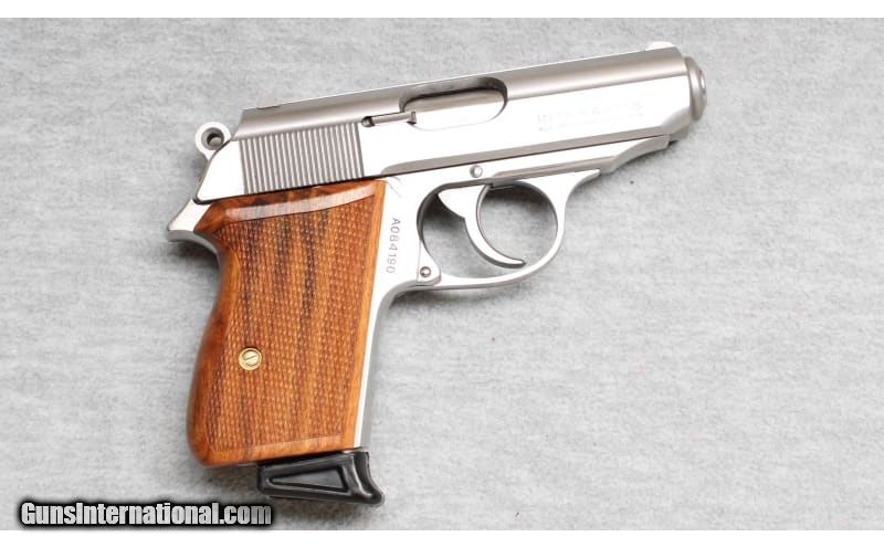 Description: Appears as new with 2 mags and box. Classic PPK pocket pistol, stainless finish, 3 1/2" barrel, safety / decocking lever, and factory wood grips. Imported by Interarms, a great choice for concealed carry. .380 ACP SOLD Chambers: Semi auto Metal Condition: As new Wood Condition: Grips are as new Bore Condition: Bright Barrels: 3 1/2 Triggers: Double action decocker Butt Pad: Wood grips Sights: Iron sights Item Location: La Vista, NE |