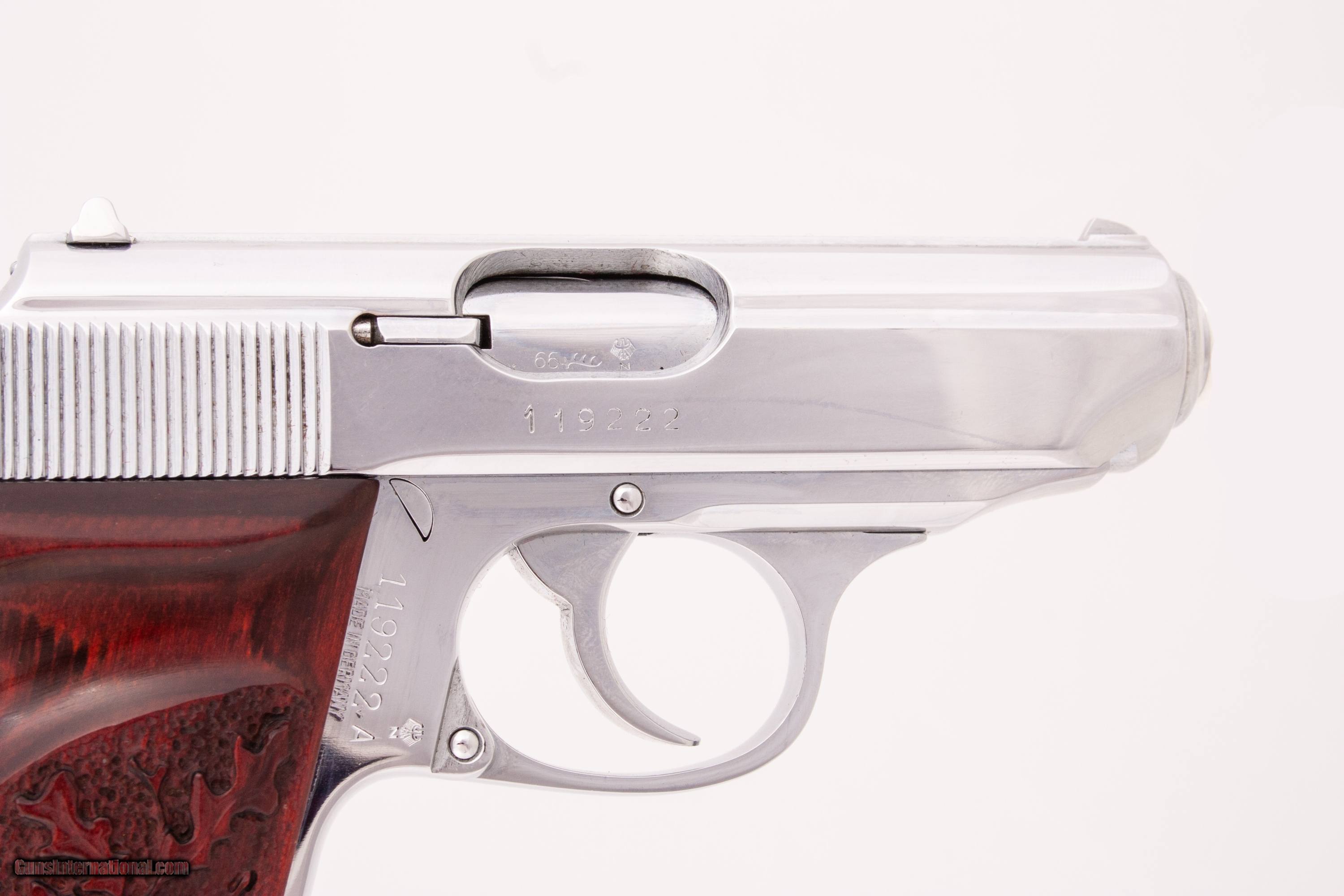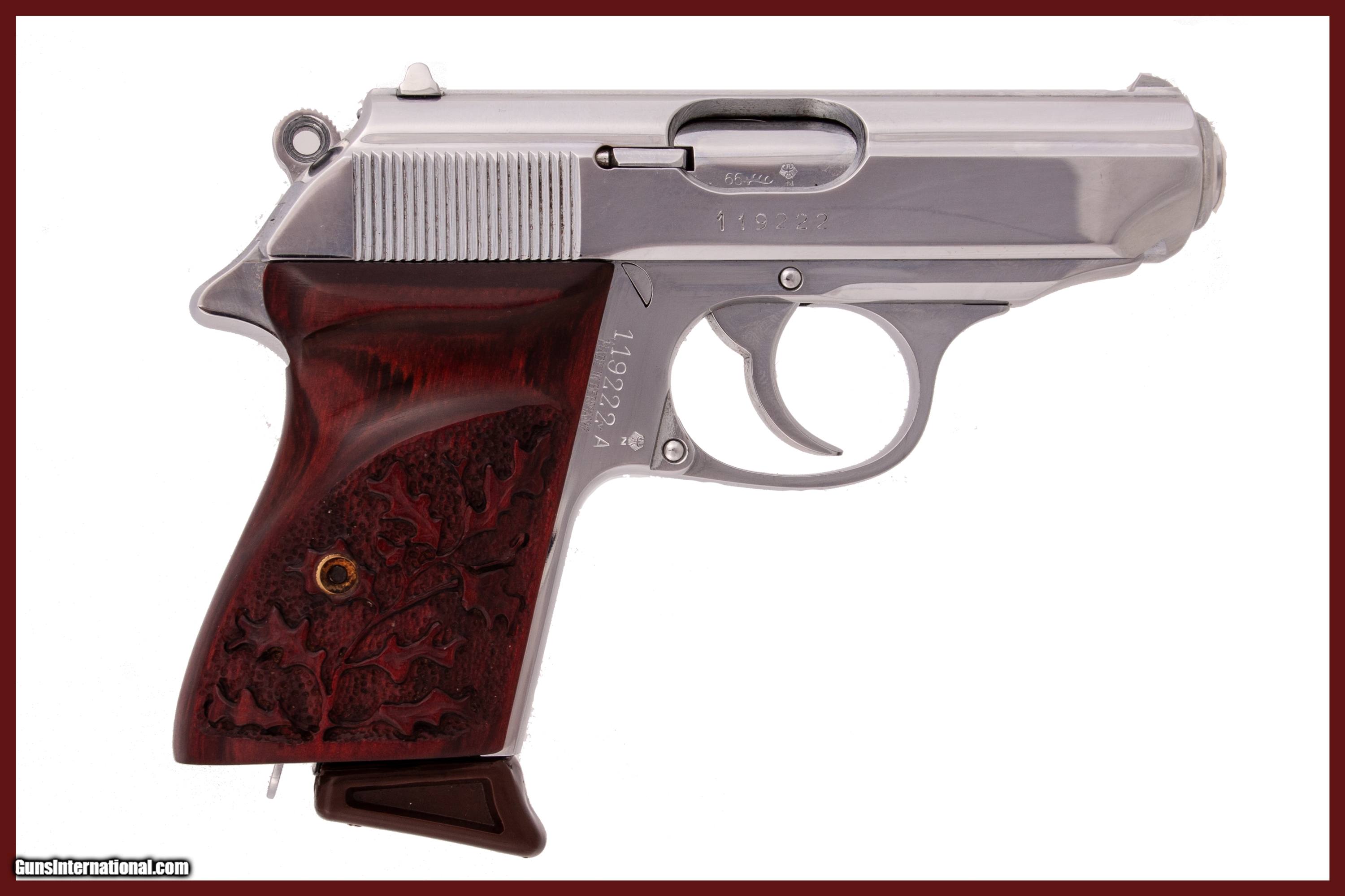 Description: West German Produced Walther PPK chambered for 380 auto with a 3 3/8 inch barrel bright & shiny bore chrome finish and a soft case. This firearm is in excellent condition and is covered by Dury's Lifetime Warranty.