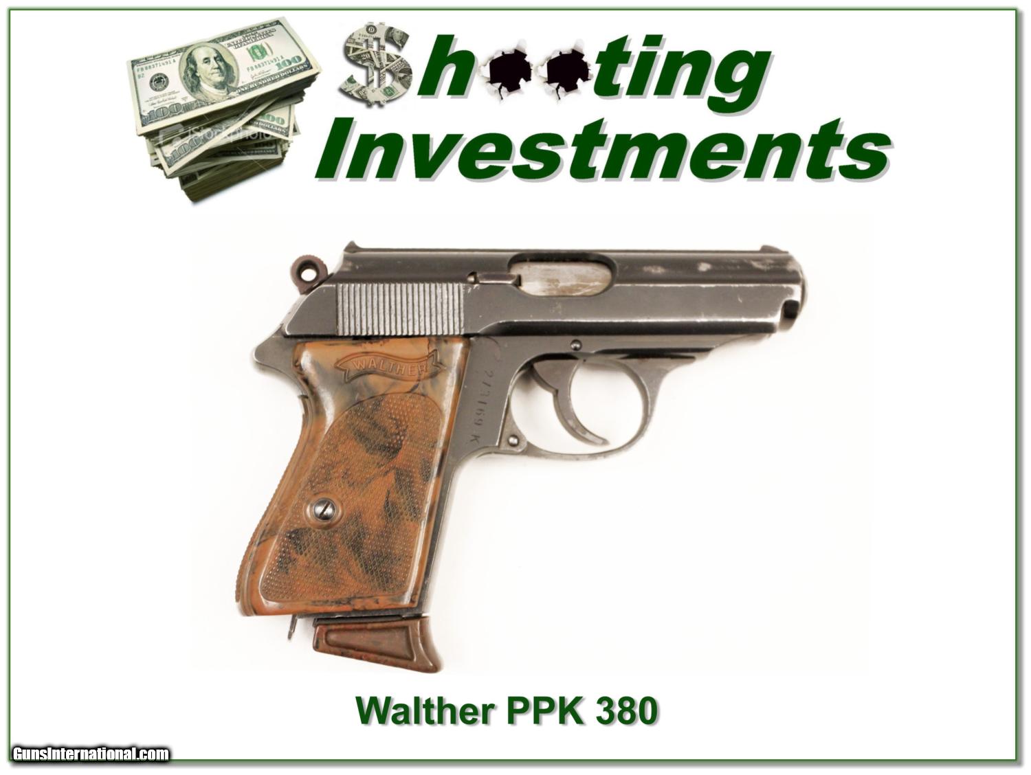 Description: Collectors, this is an all original German made Walther PPK. The magazine is original with a Bakelite base. This is a very good condition PPK with some wear as shown. I am selling this one on consignment and as such lay-a-way can’t be used. Shipping and insurance is $40. Please email me with any questions or larger pictures. (I now consign quality firearms only 10%! Let me know if you have any you would like to sell!) [16-0245] Payment: Payment is by Money Order, Cashiers Check or Personal Check. I can now also accept MasterCard and Visa with a 3% convenience fee. PayPal can be used for some items but never firearms. Please let us know if you would like to pay via PayPal. Shipping: The shipping charge will be listed in each description. It is $35 for most guns. Some heavy guns or those insured for over $2000 will be higher. Shipments to Alaska and Hawaii are higher because air shipment is required. Most firearms are shipped within 5 days of receipt of payment. We prefer shipping at the beginning of the week to avoid firearms in transit over weekends. We package all shipments carefully and insure them for the full purchase price, rounded up to the next $100. In the unlikely event that damage occurs, it is important that you save all packaging material for the claims process. Optics are shipped Priority Mail and most other non-firearm shipments are shipped First Class. Returns: Our return policy is simple. If for any reason you are not pleased with your purchase, you may return your item for a refund. The only exception is ammunition, it cannot be returned. It is important to us that you are happy. Guns cannot be fired or dissembled before returning them and must be returned in the same condition as received. Notification of a return must occur with-in 3 days of receipt at your dealer. Shipping, convenience and dealer fees are not refundable and are the responsibility of the buyer. Lay-a-way: If needed, we offer a 60 day lay-a-way option on most firearms. It is 1/3 now, 1/3 in 30 days and 1/3 in 60 days. Lay-a-way firearm sales are final. Consigning your firearms with Shooting Investments: We will help you get top dollar for your firearms. While most local guns shops charge 20% or more, our fee is only 10% with a minimum of $50. At your local gun shop it might take months to sell. Selling on-line provides instant access to thousands of interested buyers. You won’t find any other on-line dealer willing to sell your firearms for only 10% or listing every gun on 4 separate s. Selling through an House typically costs the seller 15% and the buyer an addition 15% (so 30%) and you have to wait several months to sell and longer to receive funds. If properly priced, we will sell your firearms in a week or two. Send us an email or give us a call and we’ll explain how easy it is for you to get top dollar. Trading: We collect guns and usually just trade for guns we want to add to our collections. We often sell guns for others wanting to purchase one of ours. We find this the most fair to both of us. Our Commission is only 10% and we hold the gun you want until yours sells. Please contact us if you want to sell one of yours to buy one of ours. Help for California Buyers: We are happy to ship to California. It is the buyer’s responsibility to make sure any item you buy is legal in your state. We are also happy to help with your purchase of a firearm from someone other than us. If you see a gun you would like to buy but the seller can’t or won’t ship to California we can help. You buy the gun and have it shipped to us. We’ll then ship it to your California dealer. The cost for this service is only $30 + shipping. Let me know if we can help! SOLD |