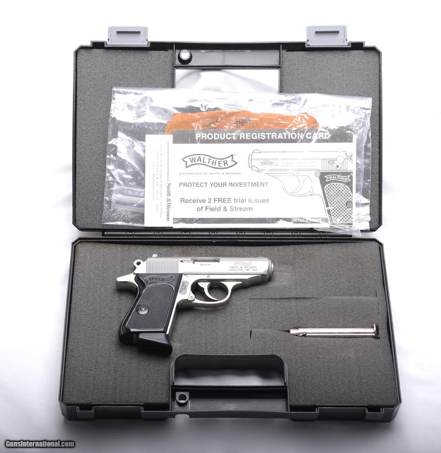 Description: SOLD Walther PPK stainless steel .380 acp pistol. New in Case with all paperwork and both magazines, nothing much else to say! Made under license by S&W SOLD |