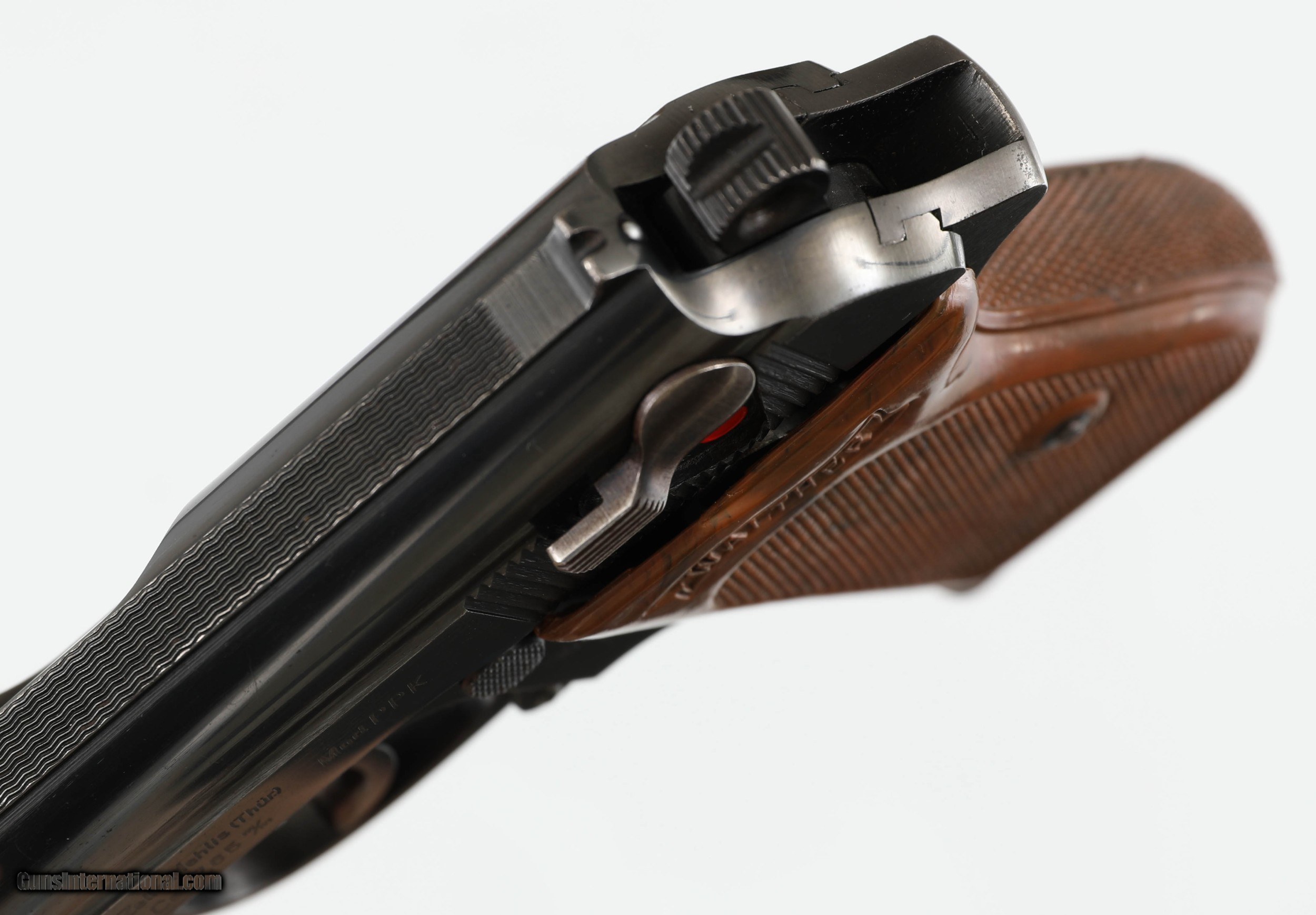 SOLD Curio/Relic: Yes Handgun Caliber: .32 ACP (7.65x17mm Browning SR) Manufacturer: WALTHER Model: PPK Serial Number: 31305?? Barrel Length: 3 1/4 Condition: EXCELLENT |