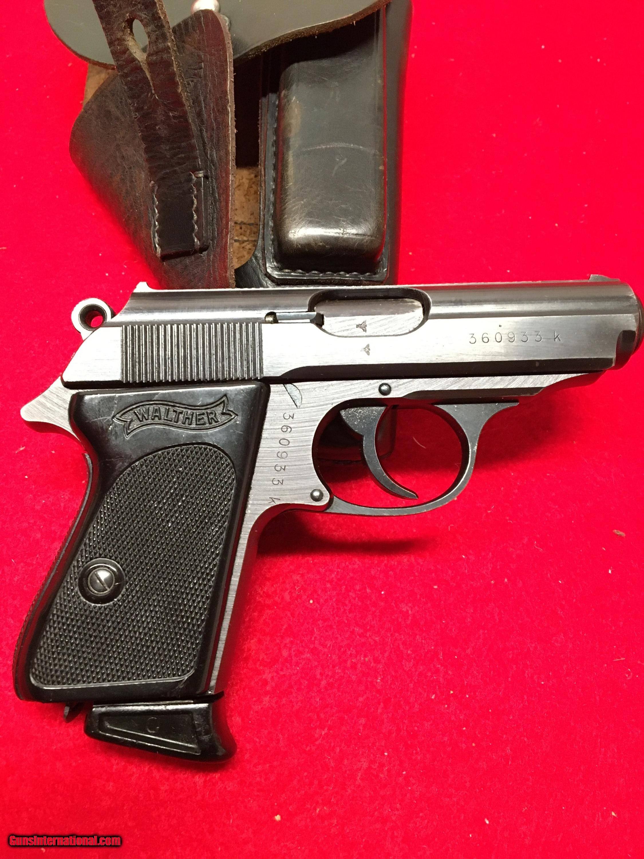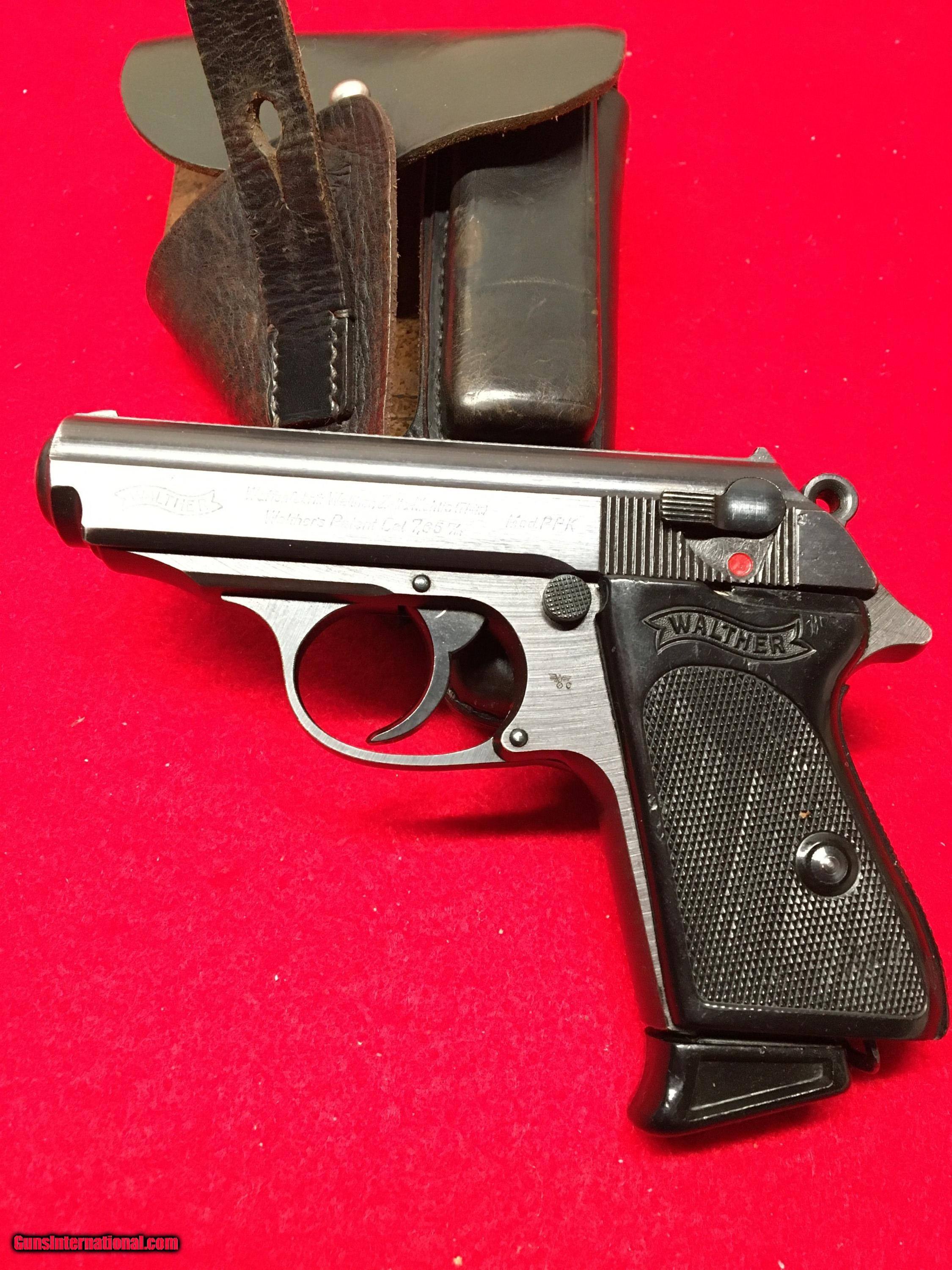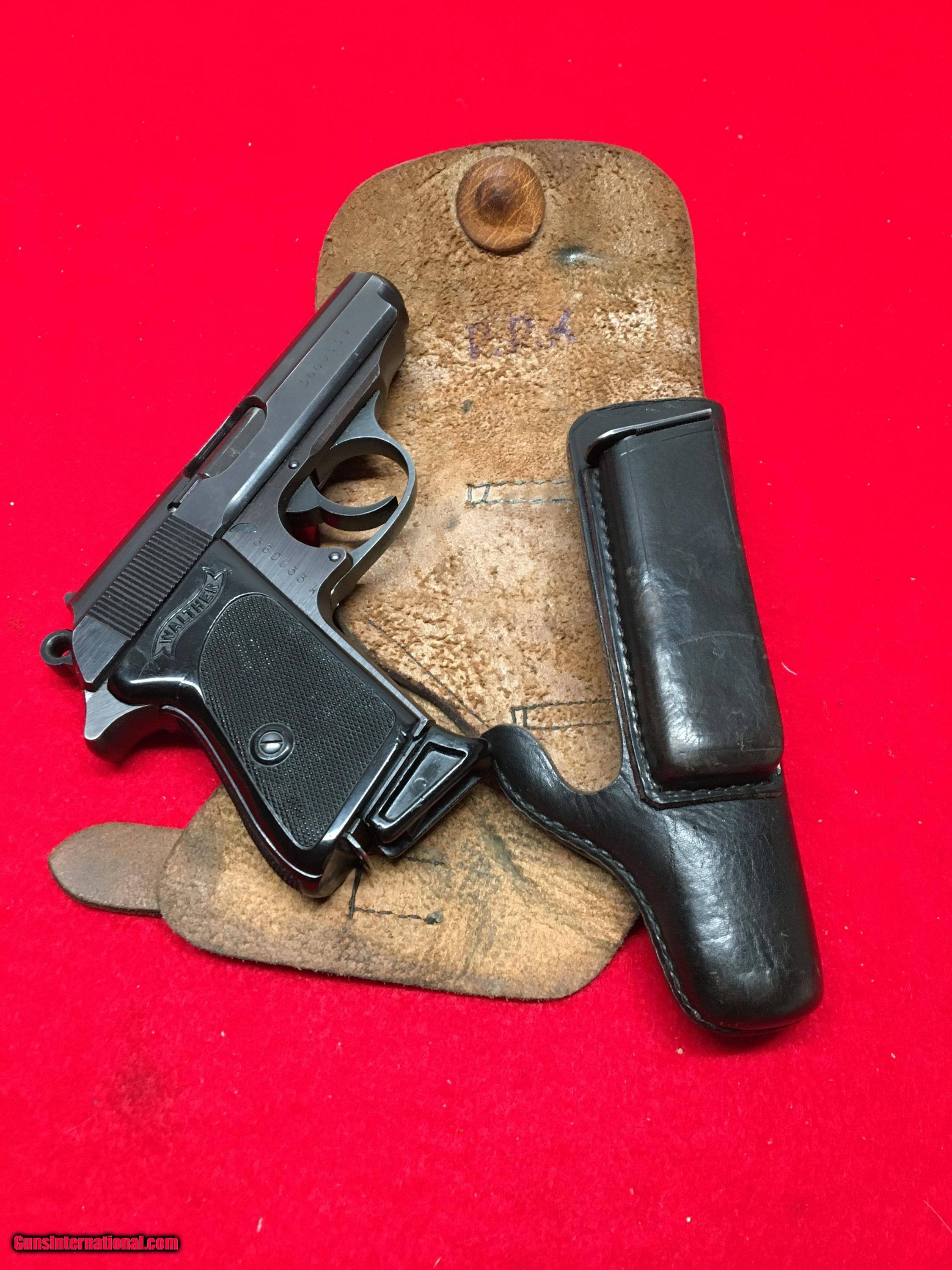 Description: Walther PPK 7.65mm Eagle/C Police with Nazi Eagle over N acceptance proof. SN 360933K, 3rd variation. Mfg 1942. Excellent condition 98/99 excellent bore. Comes with one extend mag and one flat mag in holster. Holster is a correct drop flap, Police mfg for DRGM Albrecht. Kind of Berlin-Nurnberg. These pistols are one of the world's most desired automatic pistols. This is a great rig. SOLD: AS IS. Payment: USPS Money Order, Certified Check, Personal Check. Buyer pays shipping, handling and insurance costs; flat rate $35 SOLD Manufacturer: Walther Model: Nazi Police Serial Number: 360933K Barrel Length: 7.65mm |
