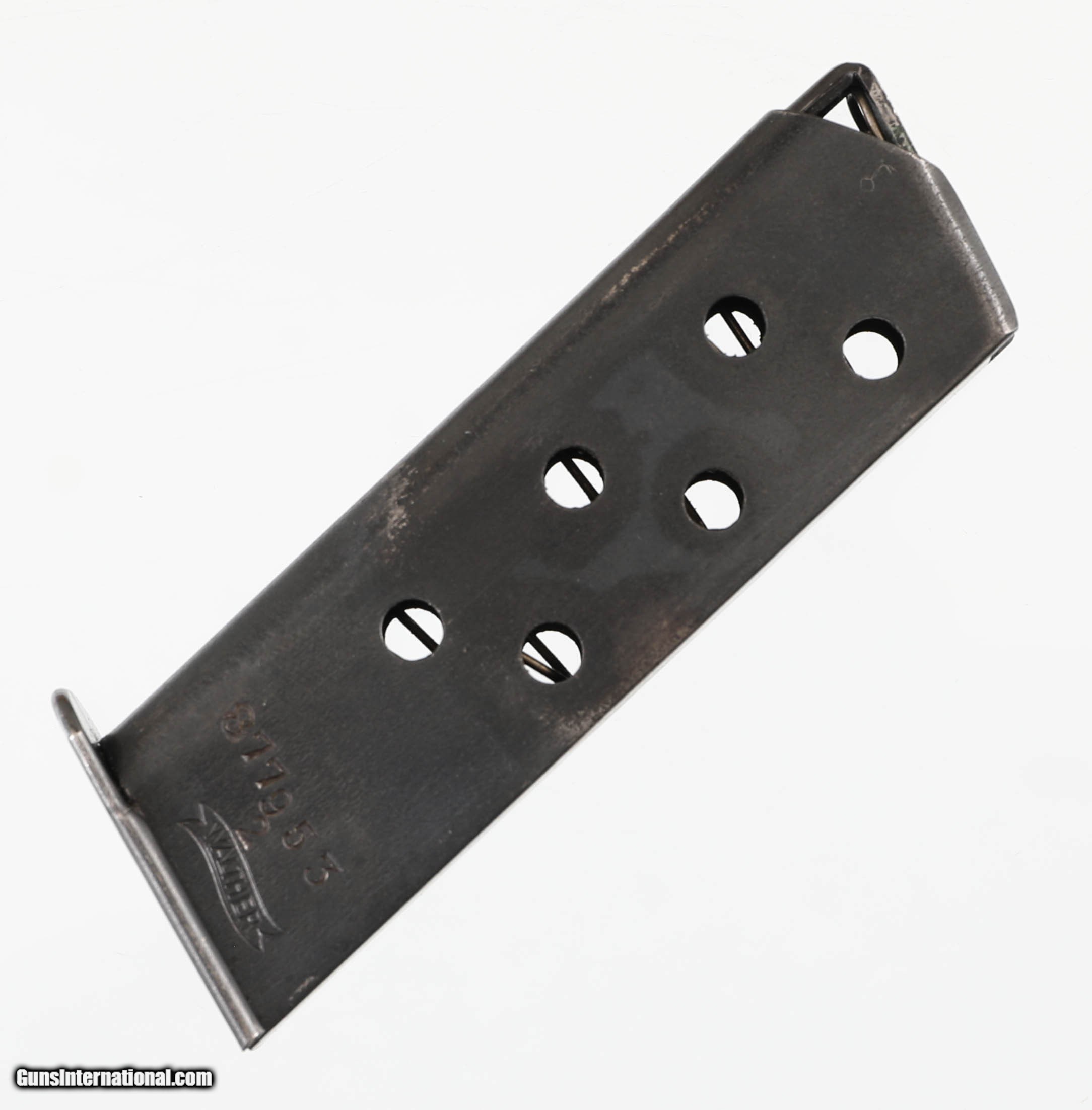 SOLD Curio/Relic: Yes Handgun Caliber: .32 ACP (7.65x17mm Browning SR) Manufacturer: WALTHER Model: PPK Serial Number: 8779?? Barrel Length: 3 1/4 Condition: VERY GOOD |