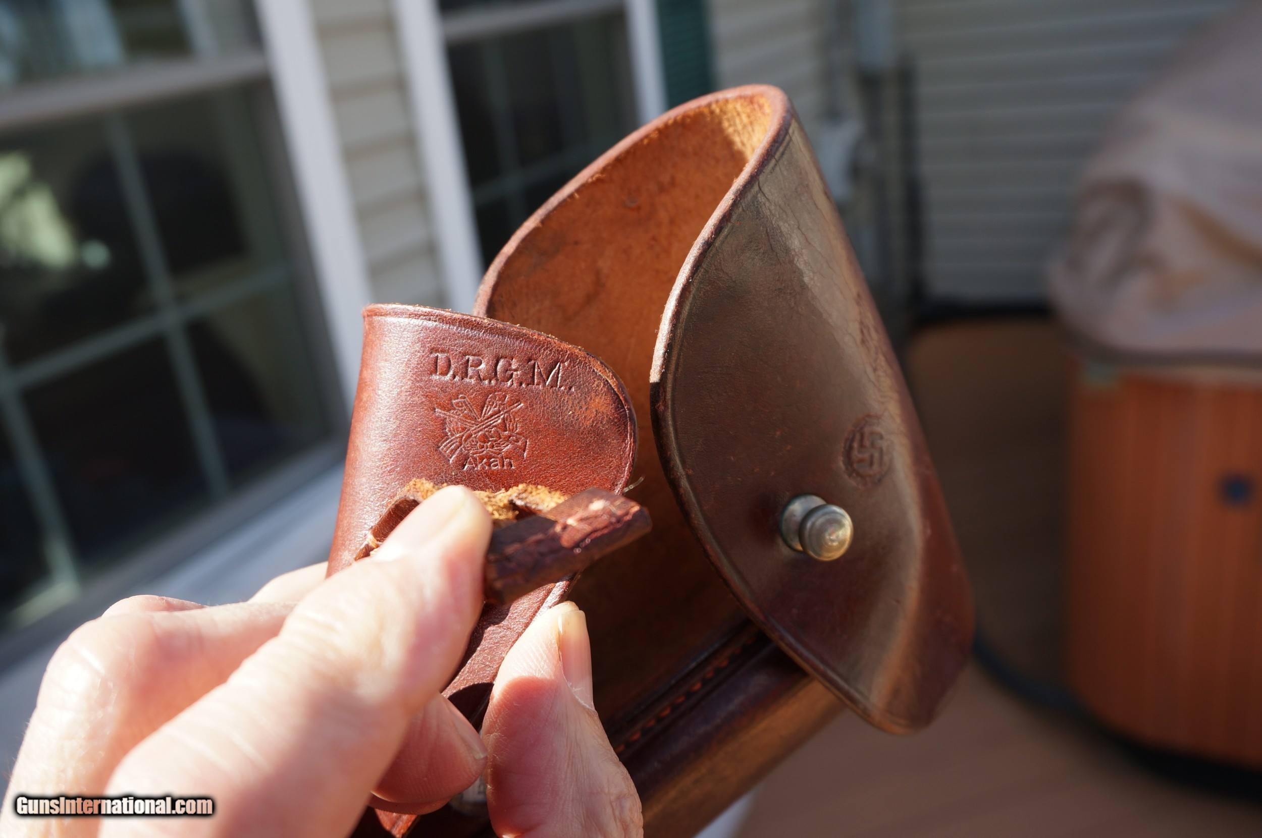 Description: WALTHER PPK PARTY LEADER HOLSTER WITH GI SERVICE RECORD .GOOD EAGLE , BRIGHT RED THREADS, DRGM AND AKAH MARKED. BRASS BUTTON . GI SERVICE NUMBER INSIDE. PRICE 2575.00 PLUS 65.00 SHIPPING SOLD Curio/Relic: Yes |