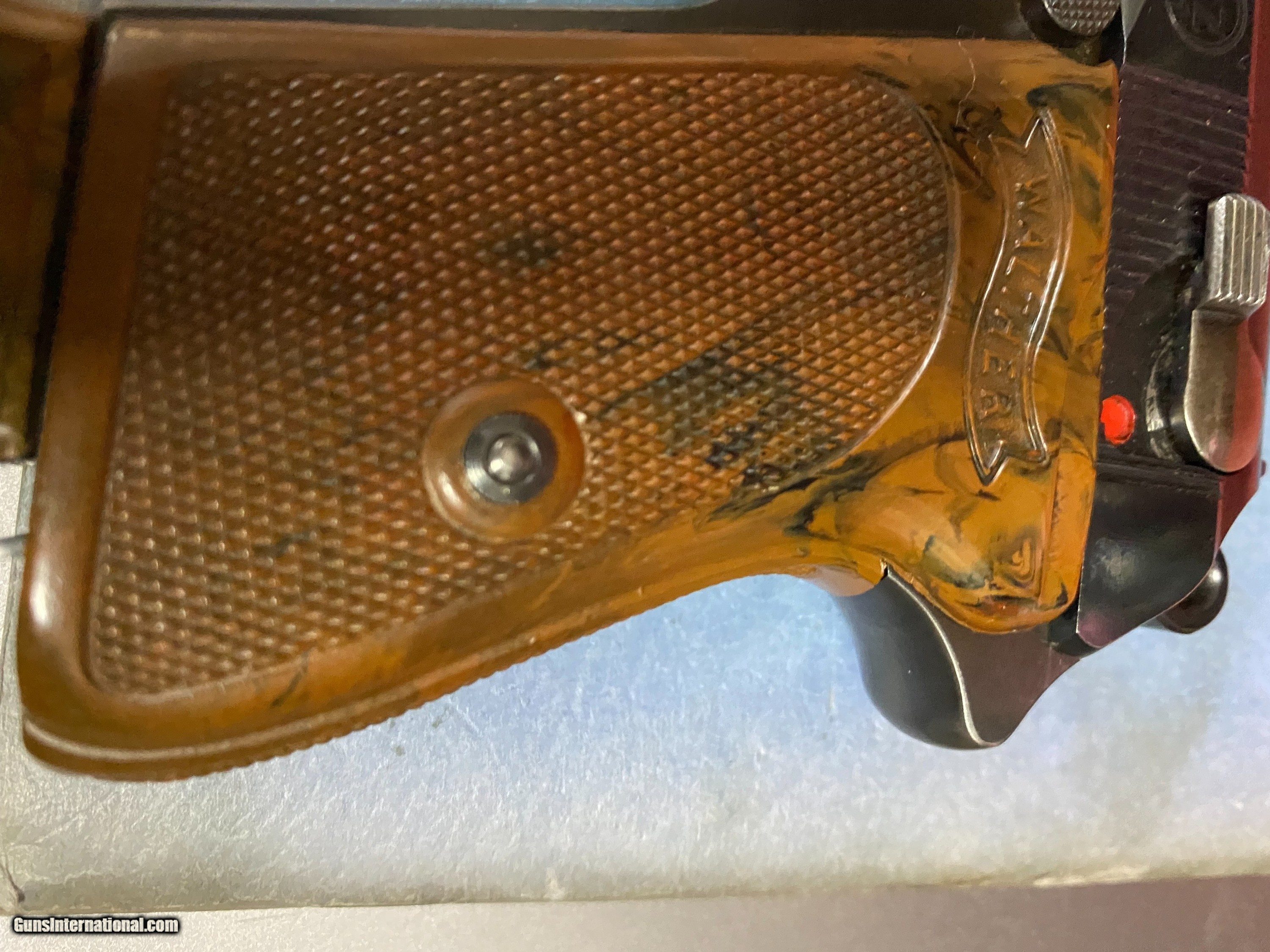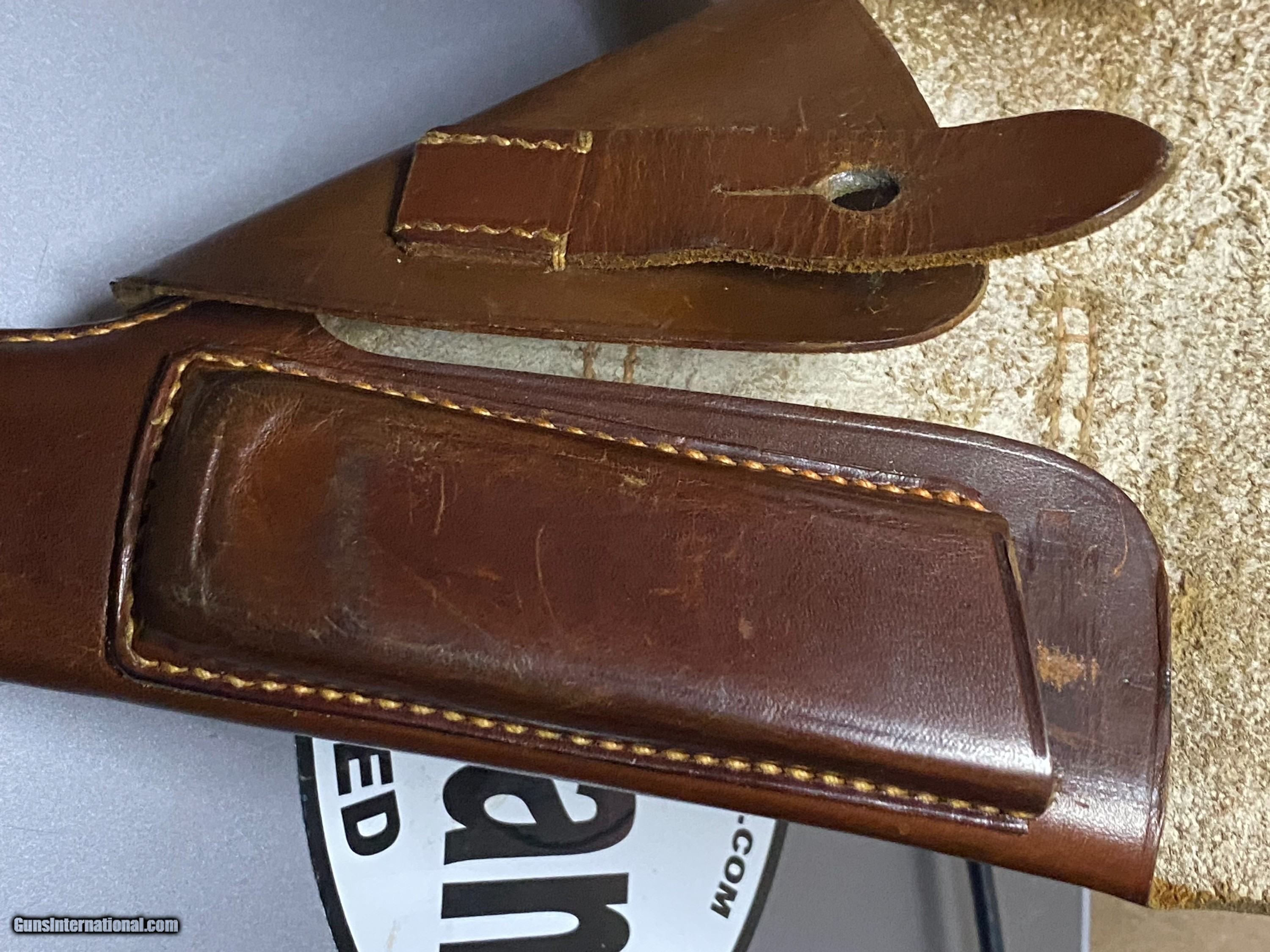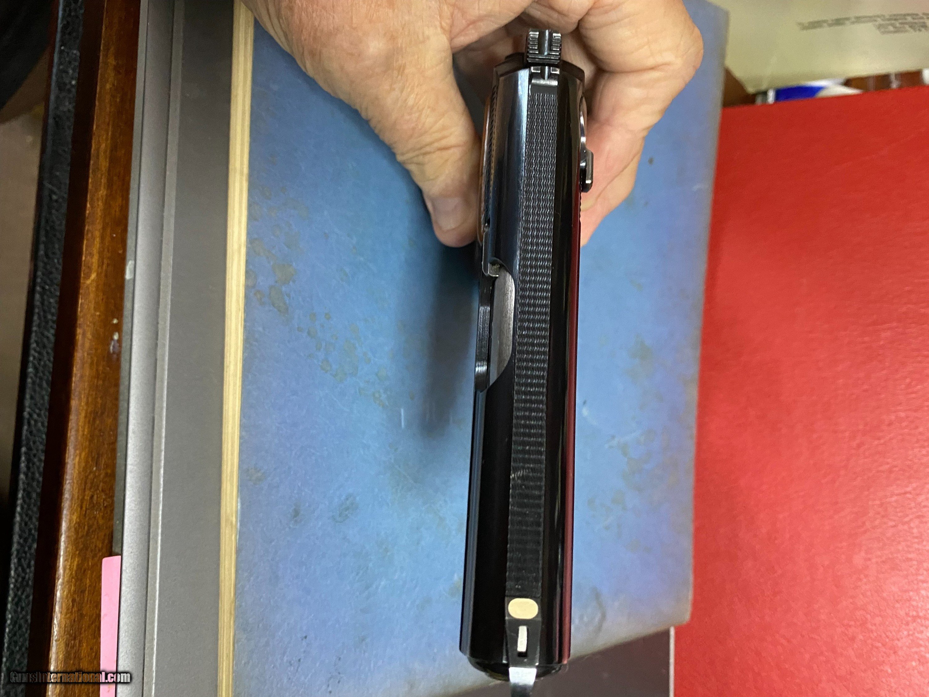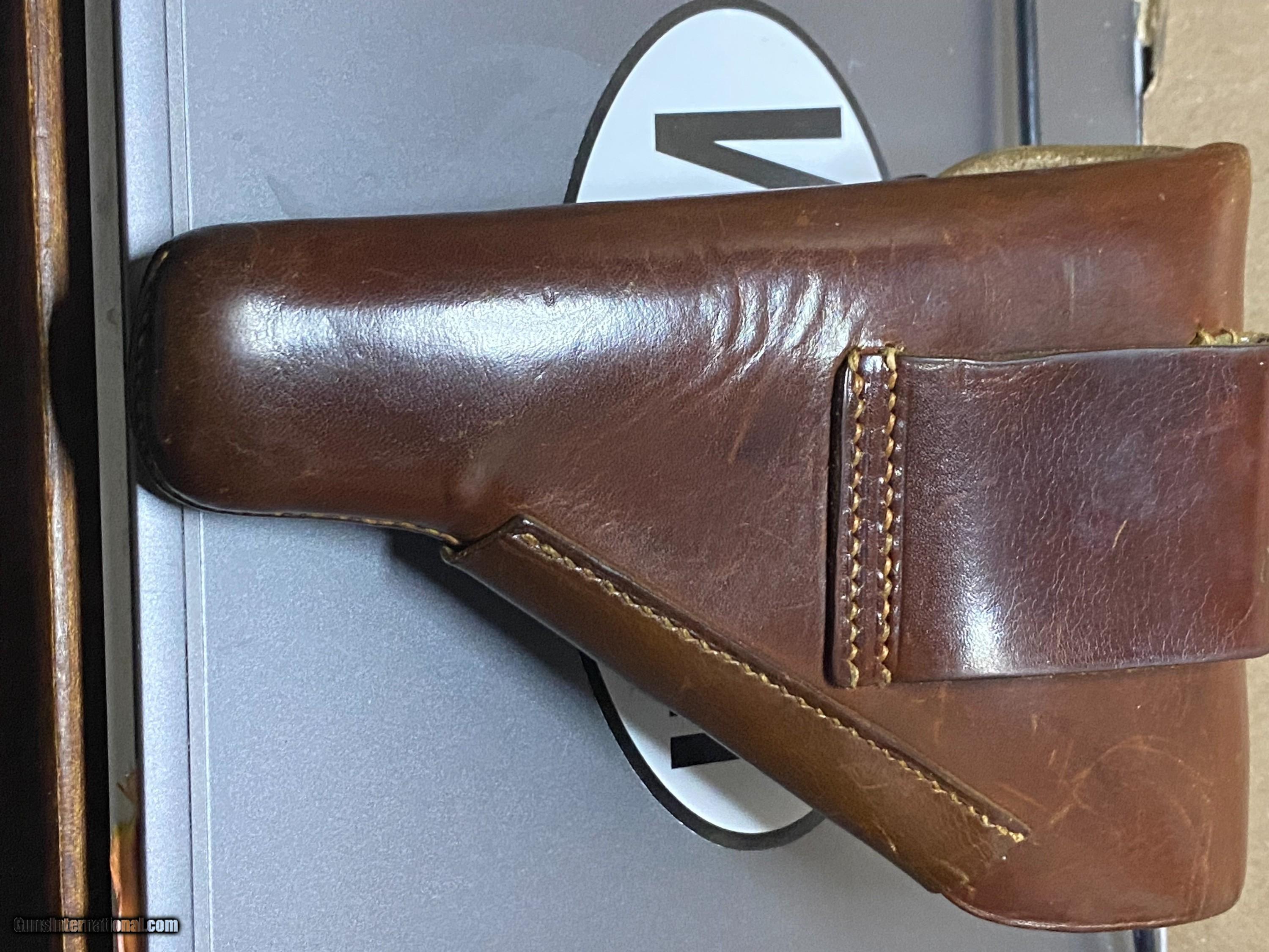 Description: WALTHER 893620 PPK RZM "RZM" Marked Pre-World War II Walther PPK Semi-Automatic Pistol with Scarce Radium Night Sight and Holster Walther PPK Semi-Automatic Pistol and Holster Manufacturer: Walther Model: PPK Gauge: 7.65 mm auto Barrel: 3 1/4 inch round Finish: blue Grip:: Excellent, retains 97% plus of the original blue finish with some very light holster type wear on the leading edges and some very slight thinning on the front strap. The grip is very fine with slight warping on the bottom, minimal handling marks and crisp checkering. Mechanically excellent. The holster is excellent with minimal wear. Description: The Reichszeugmeisterei (RZM) served as the quartermasters office of the National Socialists and later became the chief authority on textiles in the Third Reich. Radium night and notch sights, and standard markings, with "crown/N" proofs on the barrel, chamber hood and slide, and the addition of the etched circular "RZM" logo on the left side of the slide between the model marking and the serrations. Serrated ring hammer, 90 degree safety and checkered brown plastic "WALTHER" banner grips with matching colored grip extension on the magazine. Will ship to FFL Only. Shipping $ 50.00 THIS WILL BE THE LOWEST I WILL GO. NEED TO MOVE THIS ONE AND THE OTHER 2 ON THIS SITE TO MAKE ROOM. SOLD Curio/Relic: Yes Handgun Caliber: .32 ACP (7.65x17mm Browning SR) Manufacturer: Walther Model: PPK Serial Number: 807248 |