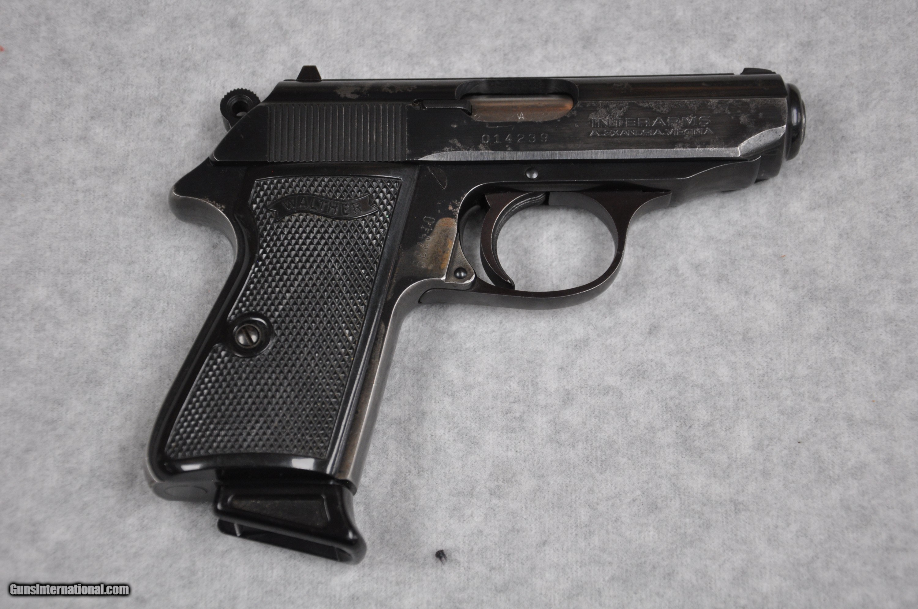Description: Used Walther (Interarms - USA) PPK/S in .380 ACP. 3 1/4" barrel. With original box, manual, and two magazines. Some stippling on slide and bluing loss on front strap and right side of frame. SOLD Handgun Caliber: .380 ACP (9x17mm Browning Short) |
