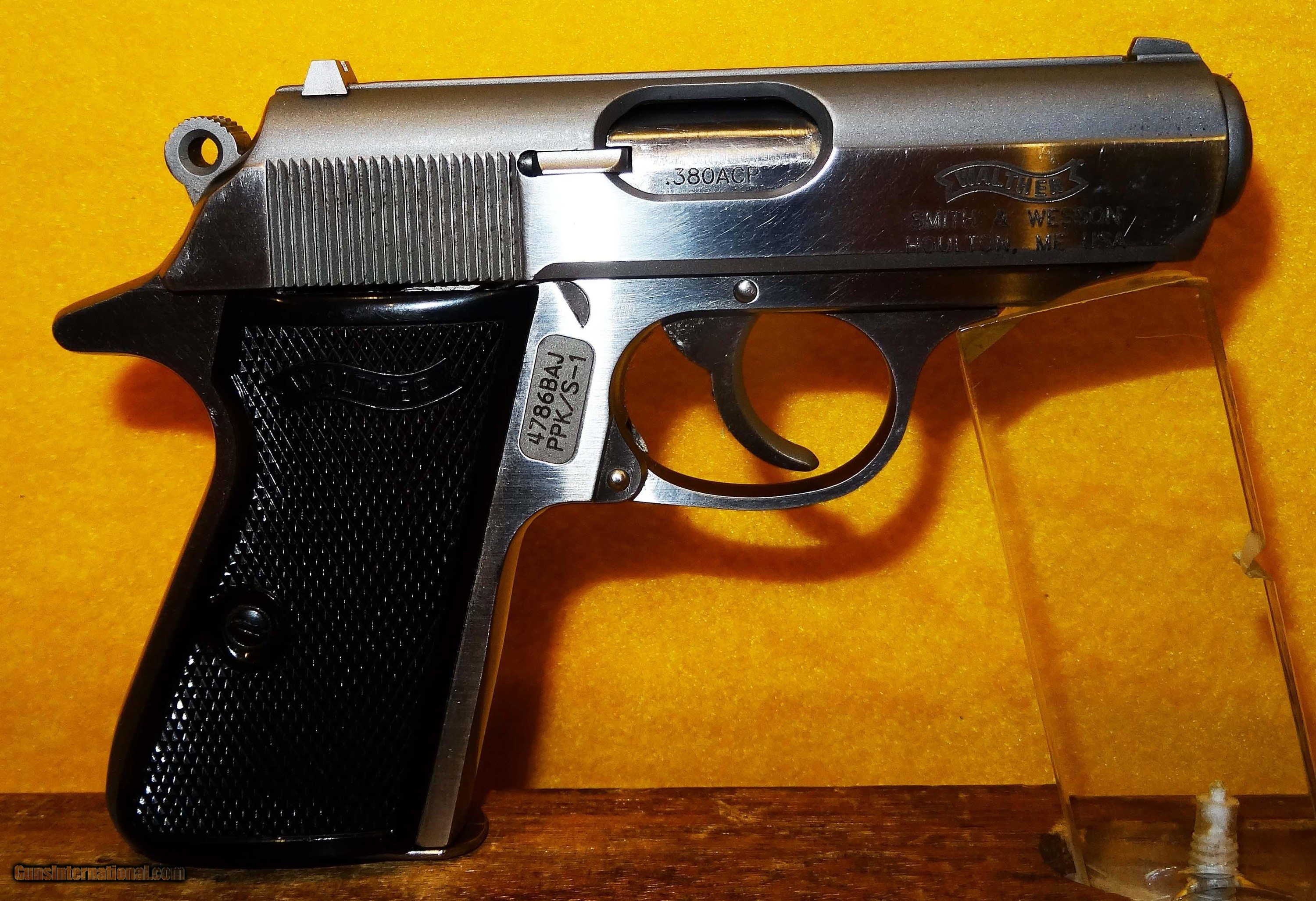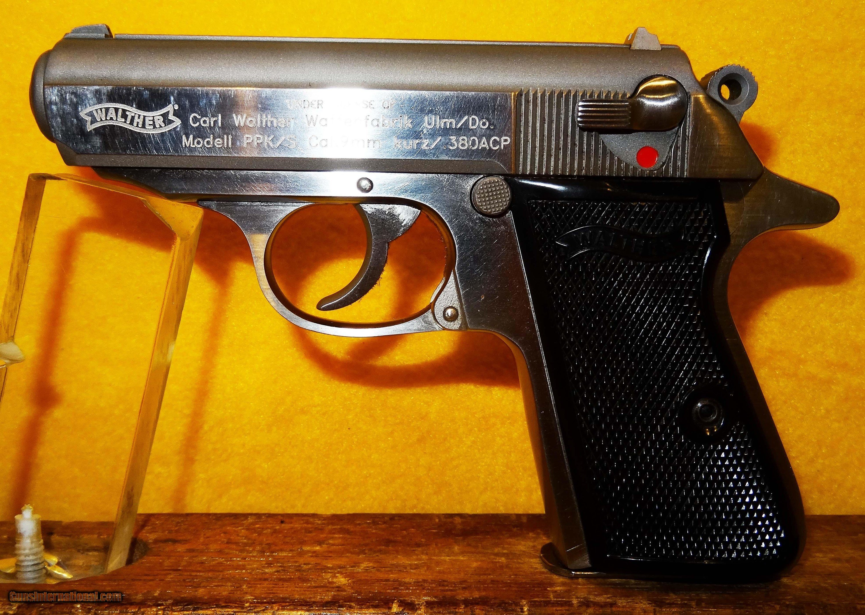 Description: WALTHER PPK/S-1 IN .380 ACP CAL., WITH 3 1/8" BARREL. COLOR STAINLESS STEEL. CONDITION 95%+. SERIAL NUMBER 4786BAJ. WALTHER MODEL PPK/S-1, MIRROR BORE, COMES WITH ONE FACTORY MAGAZINE, GRIPS EXCELLENT, HOLSTER SCUFF MARKS BOTH SIDES OF THE PPK, HARD CASE WITH PAPERS, 95%+ OVERALL CONDITION, OUR STOCK # D1229. SOLD |