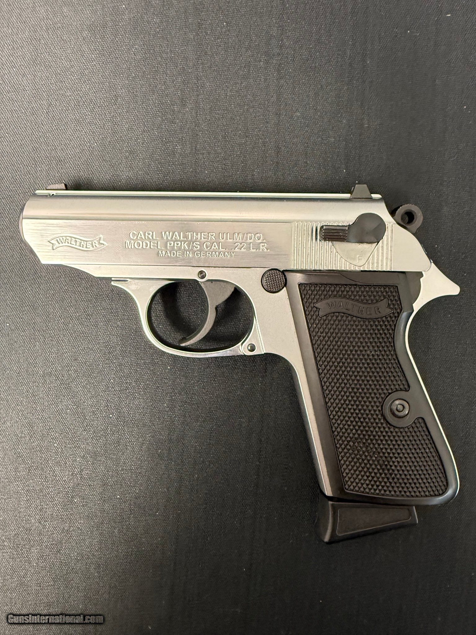 Description: Guns Listing ID: 574779 This pistol was part of a collection and was never used, it remains in perfect condition. Includes original box and an extra magazine. SOLD Manufacturer: WALTHER Model: PPK/S .22 Caliber Info: .22 LR Condition: Used - Non-Certified Barrels: 3.3" BARREL Action: DOUBLE ACTION |