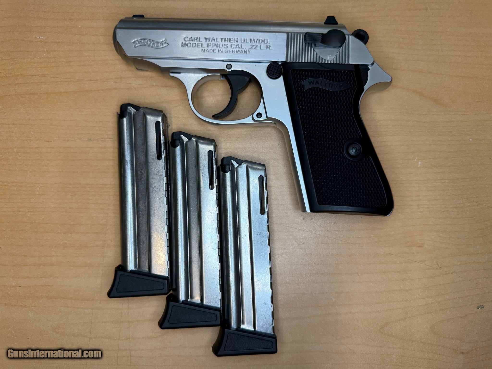 Description: Guns Listing ID: 575343 This double action pistol has a 3in barrel with three 10rd magazines. Original box included. SOLD Manufacturer: WALTHER Model: PPK/S .22 Caliber Info: .22 LR Condition: Used - Non-Certified Barrels: 3.3" BARREL Action: DOUBLE ACTION |
