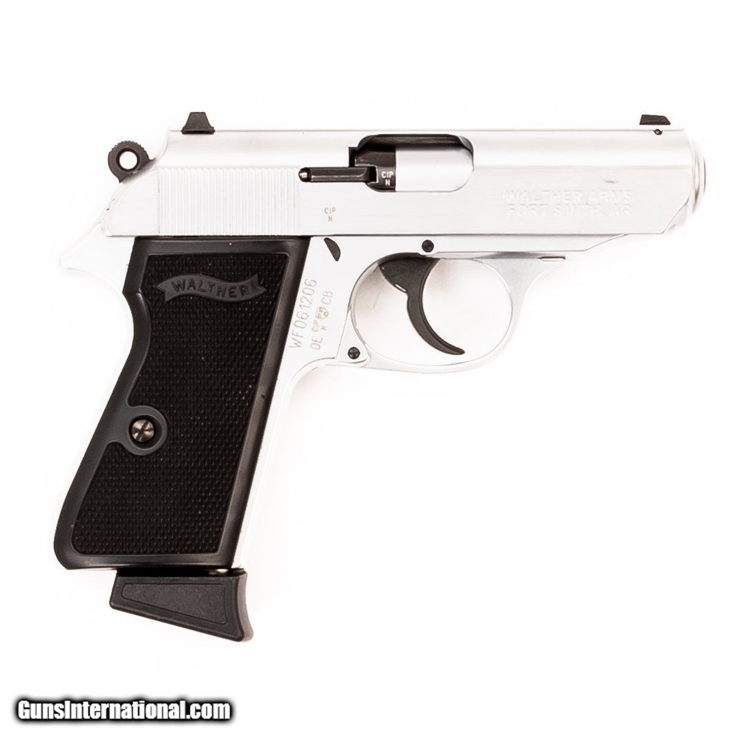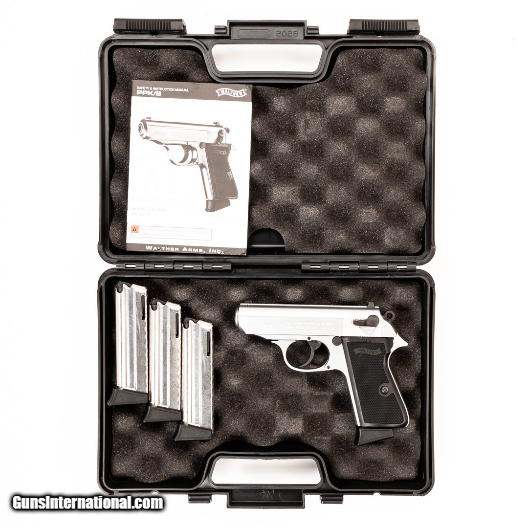 Description: Guns Listing ID: 387295 This Walther features a decocker/safety lever and square-notch rear sights with fixed blade front sight. Purchase includes the original case, owner‚‚s manual, and four 10-round magazines. Get the best bang for your buck when you get a Certified Used Firearm . When you see the Certified Used stamp on any of our firearms, you can be confident that you‚‚re getting exactly what you want – a gun only in very good to excellent condition and held to the highest quality standard. All Certified Used Guns come with a ‚‚no questions asked‚‚ return policy . PLUS, ALL CERTIFIED USED GUNS SHIP F SOLD Manufacturer: WALTHER Model: PPK/S Caliber Info: .22 LR Condition: Used - Certified Barrels: 3.25 BARREL Finish: NICKEL Weight: 1.6 lbs. |