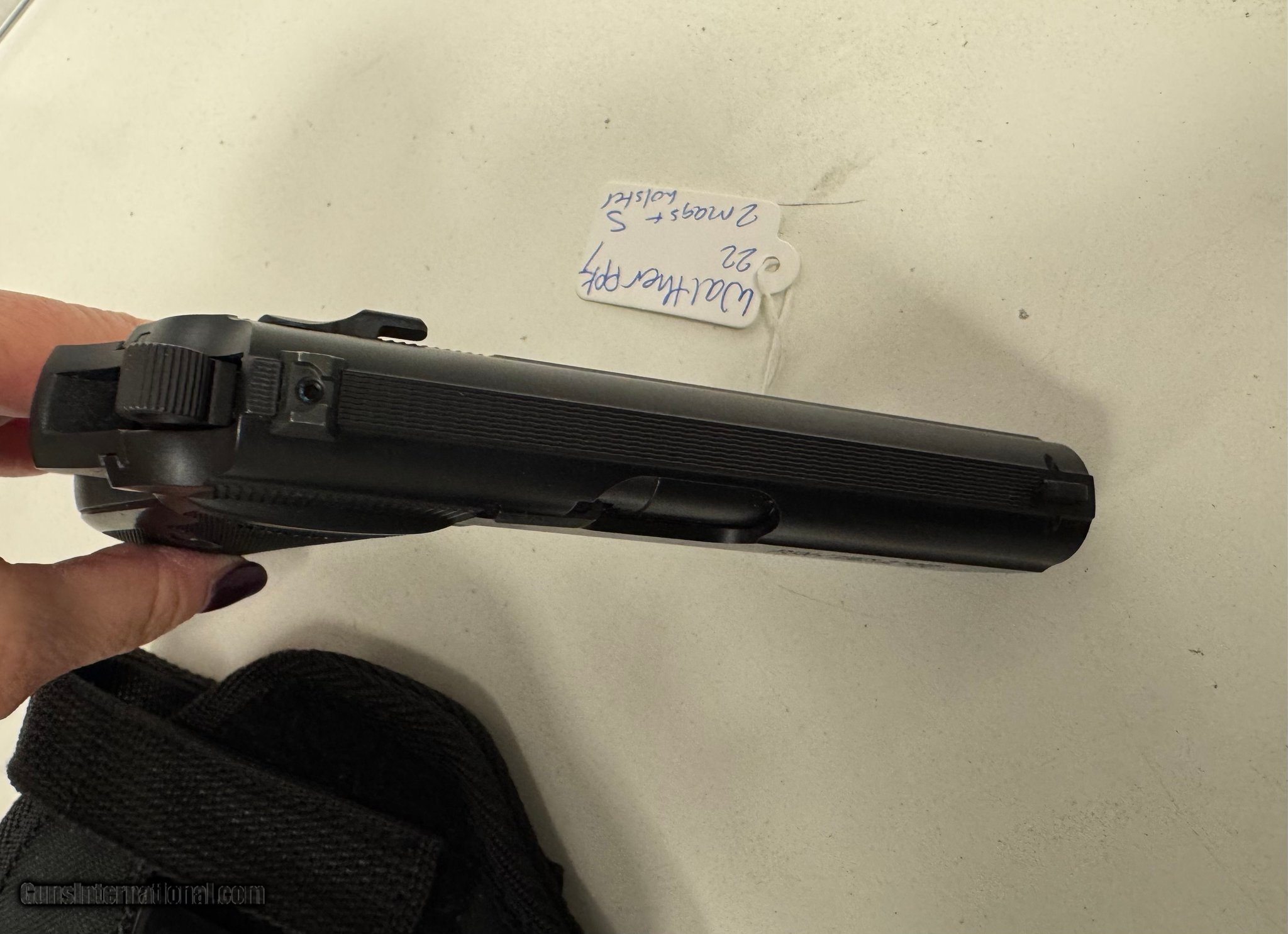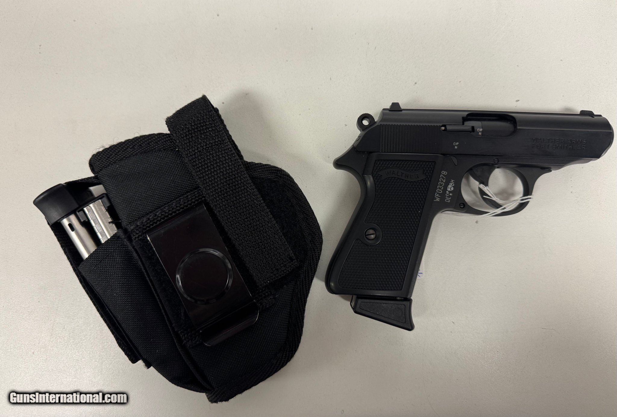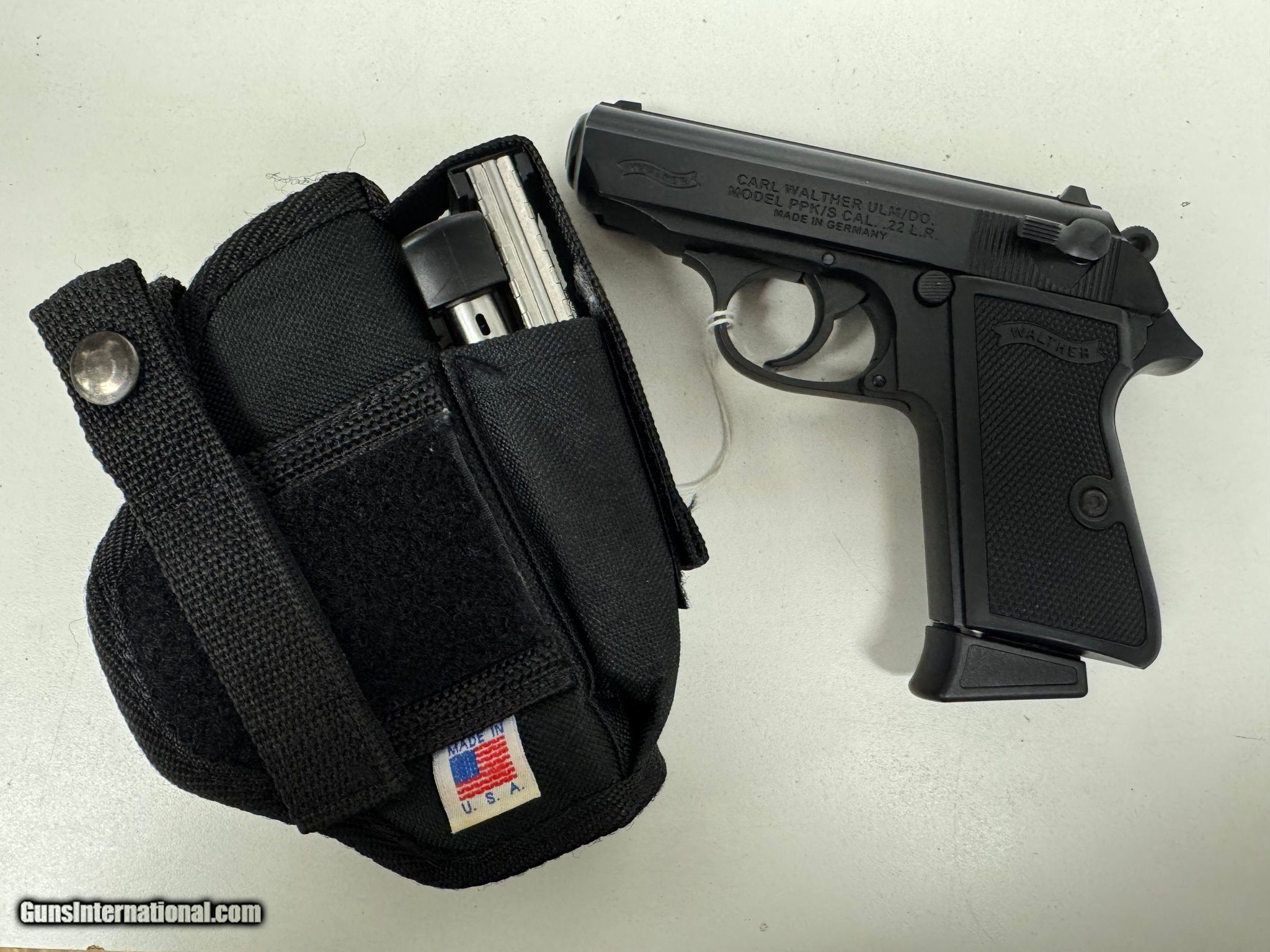 Description: Guns Listing ID: 480369 MANUFACTURER: Walther Arms FAMILY: PPK Series MODEL: PPK/S 22 TYPE: Semi-Auto Pistol ACTION: Double / Single Action CALIBER/GAUGE: 22 LR FINISH: Matte Blued FINISH TYPE: Blued FRAME: Steel Frame STOCK/GRIPS: Checkered Black Synthetic BARREL: 3.3\" OVERALL LENGTH: 6.1\" CAPACITY: 10 + 1 # OF MAGAZINES: 3 MAG DESCRIPTION: 10 rd. SIGHTS: Low-Profile SIGHT TYPE: Fixed Sights SPECIAL FEATURE: Threaded Barrel COMES WITH A HOLSTER AND 3 MAGAZINES!!!!! WEIGHT: 19 oz. SHIPPING WEIGHT: 2.9 lbs. SAFETY FEATURES: Manual/Decocker ADDL INFO: Threaded Barrel MFG MODEL NO: 5030300 SOLD Manufacturer: WALTHER Model: PPK/S Condition: Used - Non-Certified Barrels: 3.3 Gauge Info: .22 LR Finish: black |