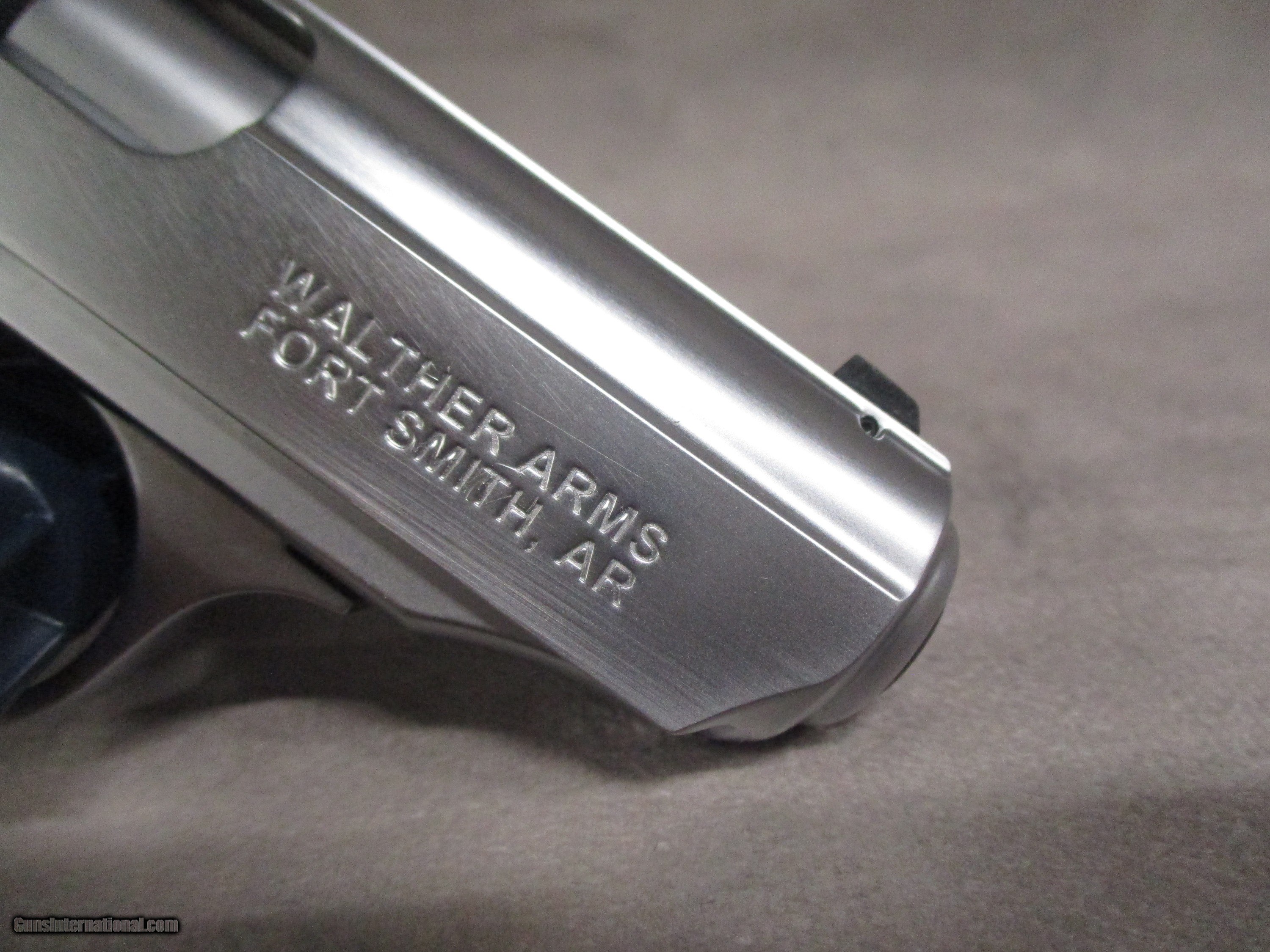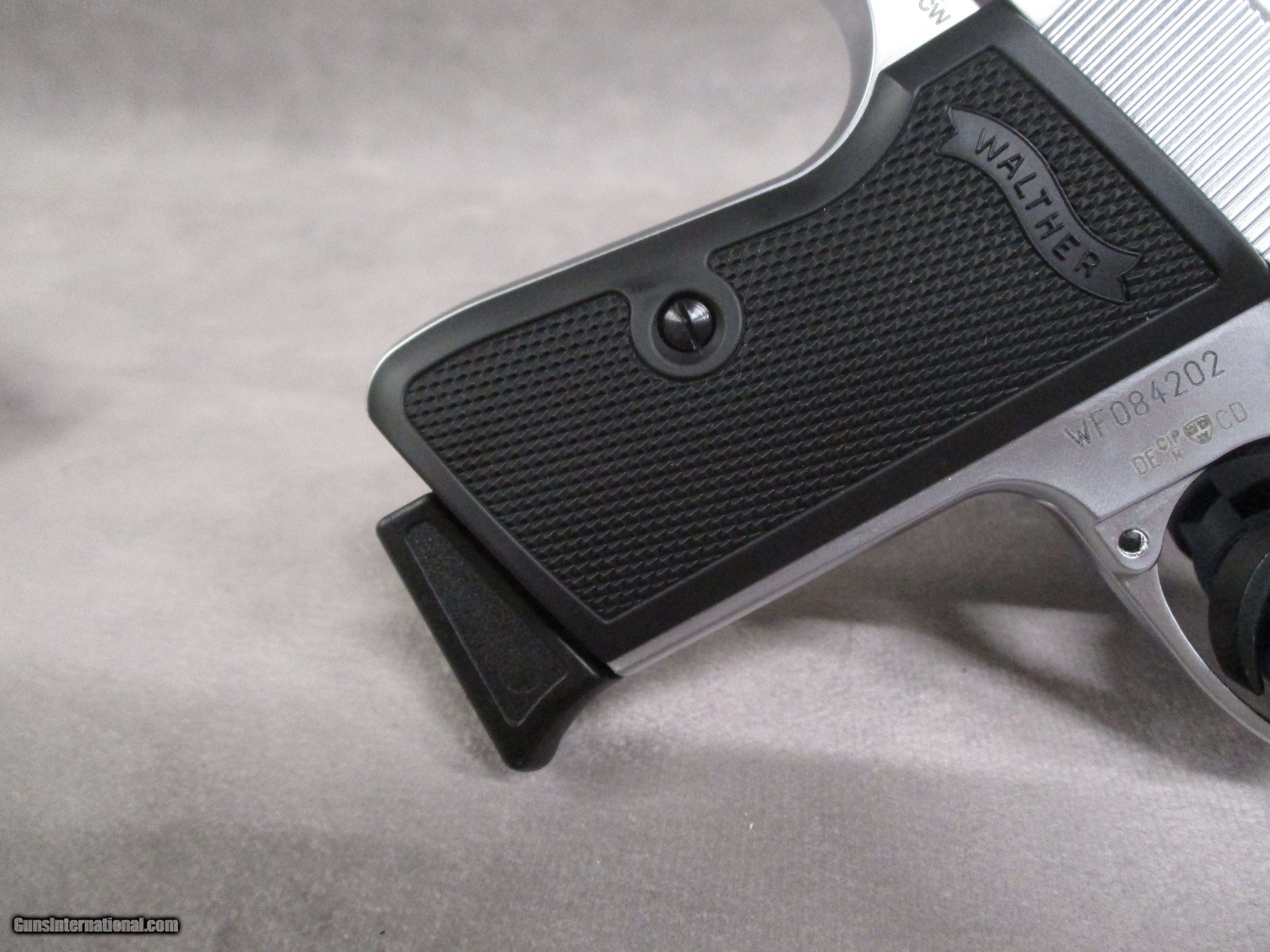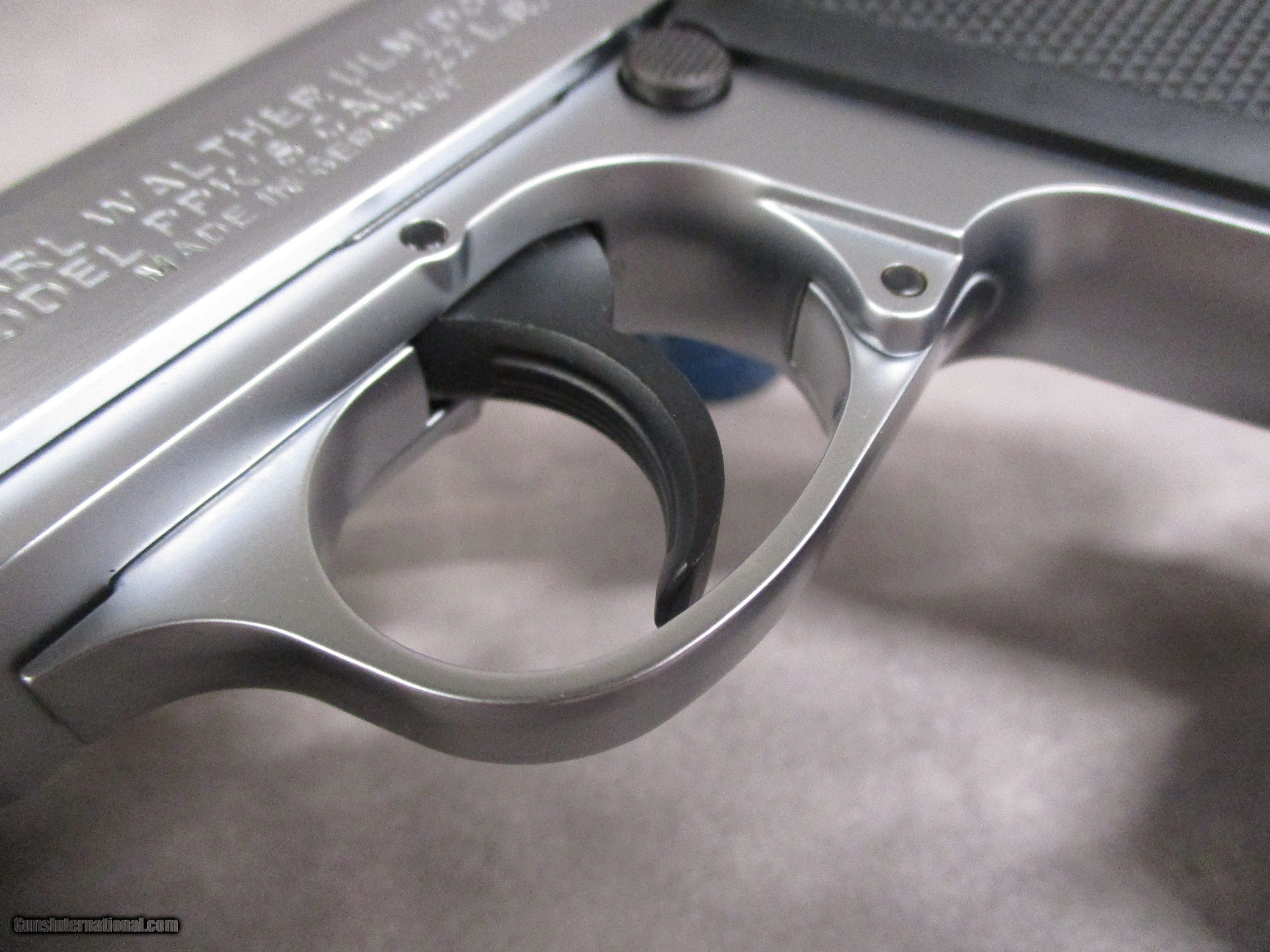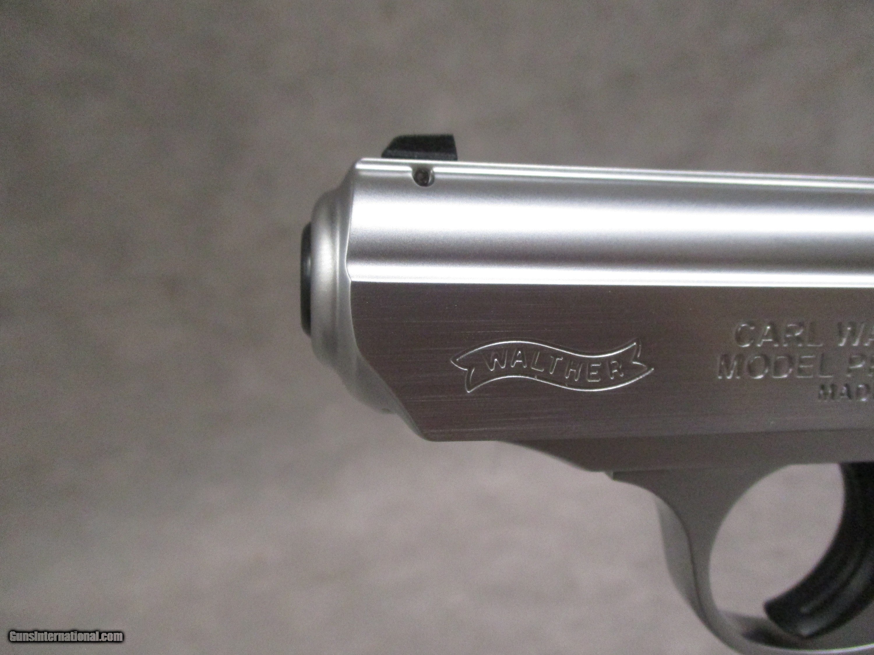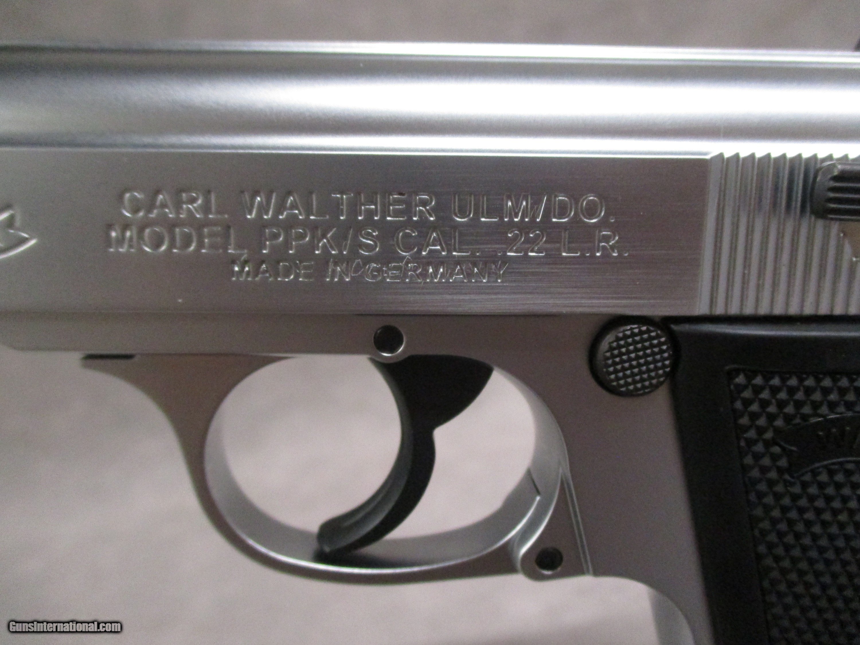 Description: This is a brand new in the box PPK/S 380 Stainless pistol. The PPK/S is a design that traces its origins all the way back to Walther’s original PP model of 1929. The “PP” stood for “Polizeipistole” or “Police Pistol”. A year later, a smaller version, the PPK, was introduced. Contrary to popular belief, the “K” in the designation does not stand for the German word “Kurz” or “Short” in English. The “K” actually stands for the German word, “Kriminal”, or literally “Criminal”. Thus, the full name of the PPK is “Polizeipistole Kriminal”, referring to the Kriminalamt crime investigation office as the pistol was primarily intended for detectives and other undercover officers. Both the PP and PPK were the first truly successful double action pistols in the world. The PPK was made famous worldwide by fictional character of James Bond from Ian Flemings many spy novels. The PPK was imported from Germany to the United States until 1968 when further importation was prohibited by the Gun Control Act of ’68. To pass the restrictions imposed by the Gun Control Act of 1968, Walther combined the PPK slide with a PP frame, creating the PPK/S. These were imported by Interarms in Virginia. Later on, Walther allowed Smith & Wesson to build them under license, but eventually Walther built a new factory in Fort Smith, AK to produce the PPK/S themselves, as well as to sell the basic PPK in the US for the first time since 1968. The PPK/s chambered in .22 LR makes for an excellent multi-purpose pistol. It can function as a training tool for those learning to shoot or as a practice gun for more experienced users who don’t want to use up their good 9mm or .45 ammo. In a similar vein, it will also do well as a plinking gun. This pistol comes from the factory with a threaded barrel, though with a thread protector designed to match the inside dimensions of the slide. A threaded barrel adaptor can be purchased from the Walther . This device replaces the thread protector and extends past the end of the slide, allowing for the mounting of a proper suppressor. With this setup, the PPK/s 22 makes an excellent pest control gun. This example is new in the box and comes with the paperwork, tools, two alternate front sights, and one 10-round magazine. SOLD Handgun Caliber: .22 Long Rifle Manufacturer: Walther Arms, Inc. Model: PPK/S Serial Number: WF084202 Bore: Rifled, 6 grooves, 1:16 inches (1:406 mm) RH twist Ejectors: Auto-ejection Condition: New in Box Barrels: Steel Barrel Type: Fixed Action: Semi-auto, blow back Triggers: Serrated, approx. 16.5 lbs. pull weight in DA, 6.1 lbs. in SA Stock: Checkered polymer Finish: Matte Nickel Weight: 19.0 oz. empty Sights: Fixed, rear sight notch 0.114” (2.9 mm), front sight width 0.08” (2.1 mm); sight radius 4.25 inches (108 mm) Extras: See description Case: Walther box |