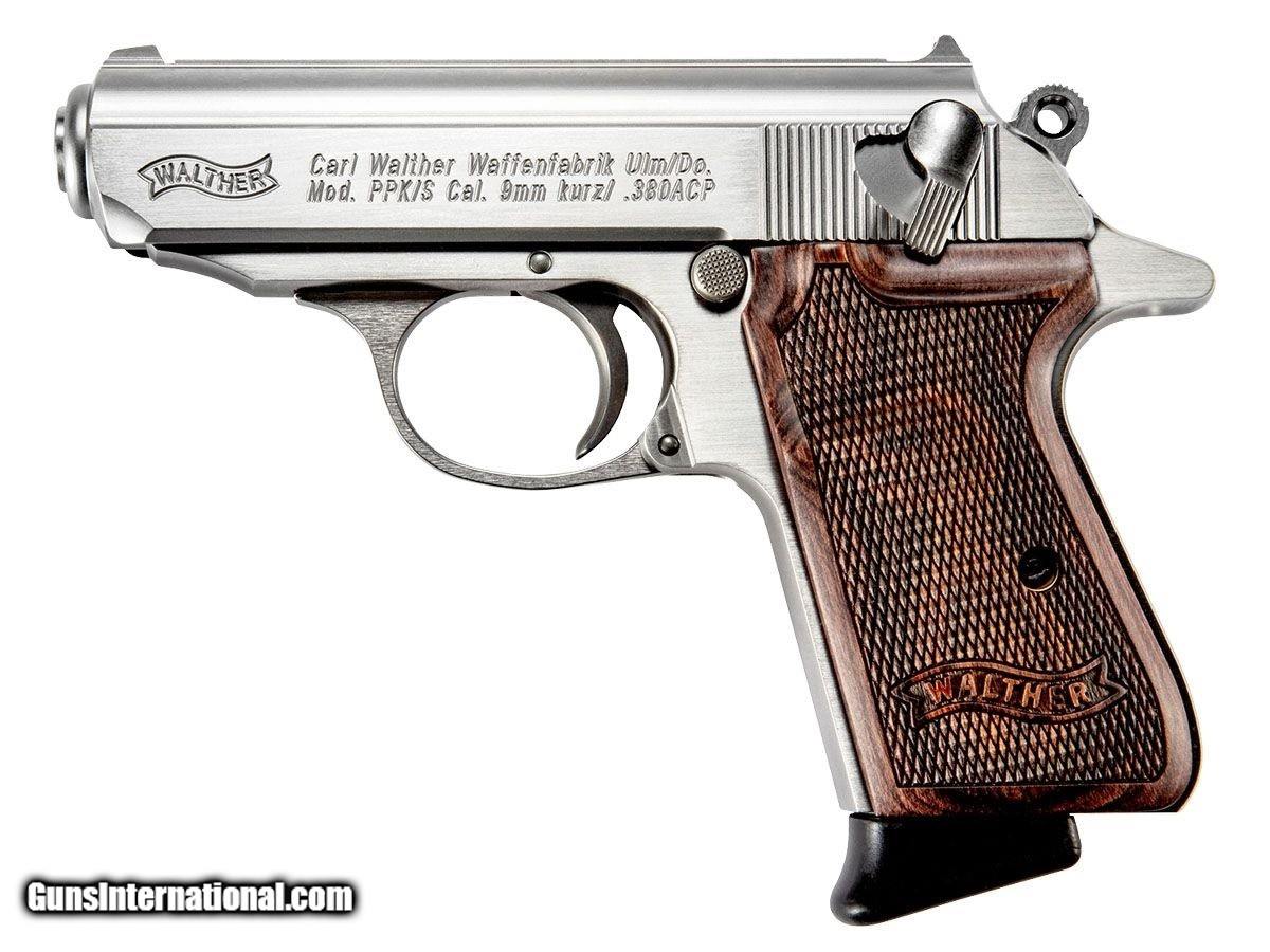 Description: NEW IN STOCK Walther PPK/S, Semi-automatic, Metal Frame Pistol, Compact, 380ACP, 3.35" Barrel, Steel, Stainless, Walnut Grips, Fixed Sights, 7 Rounds, 2 Magazines 4796004WG