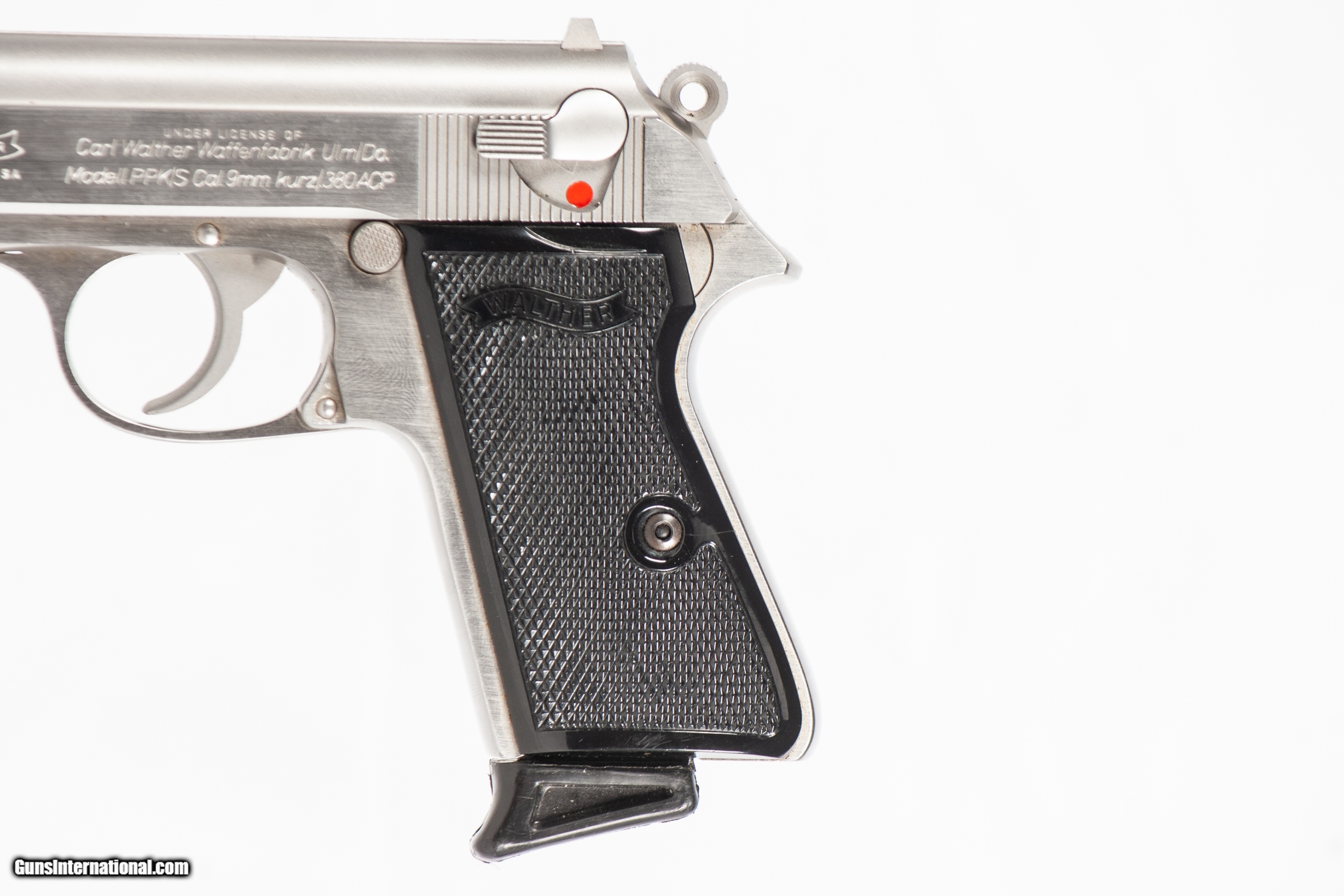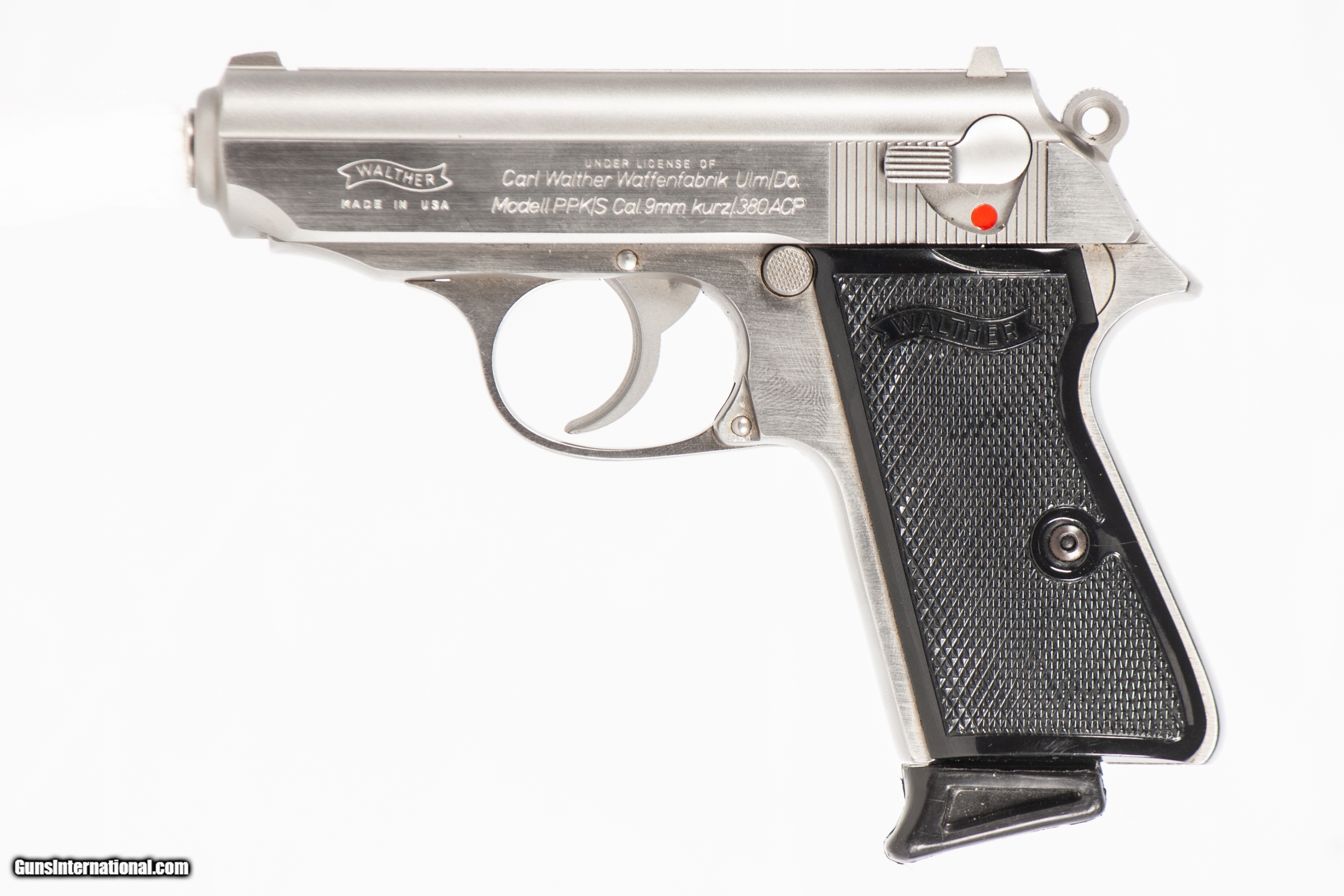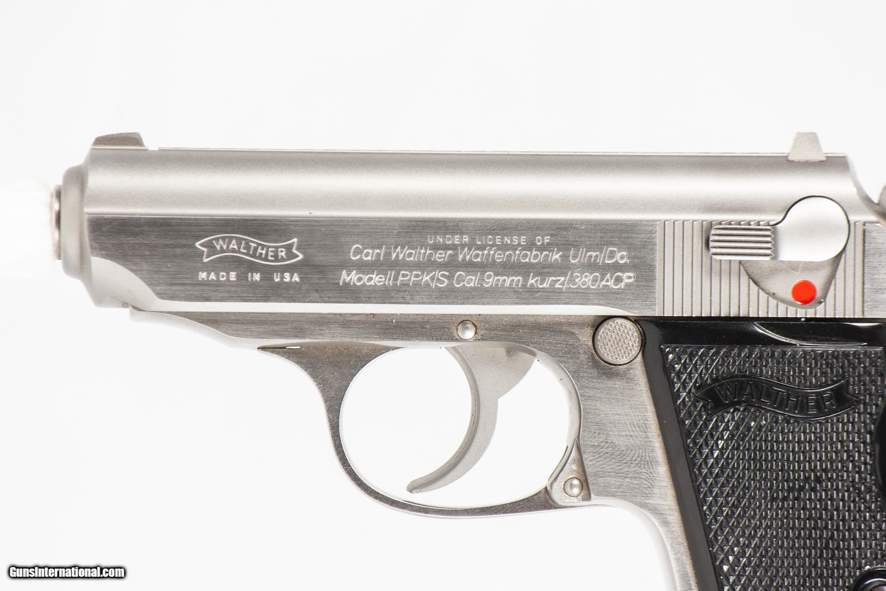 WALTHER PPK/S CHAMBERED IN 380 ACP WITH A 3 1/4 INCH BARREL AND A BRIGHT & SHINY BORE. THIS GUN IS IN EXCELLENT CONDITION AND IS COVERED BY DURY'S LIFETIME WARRANTY.