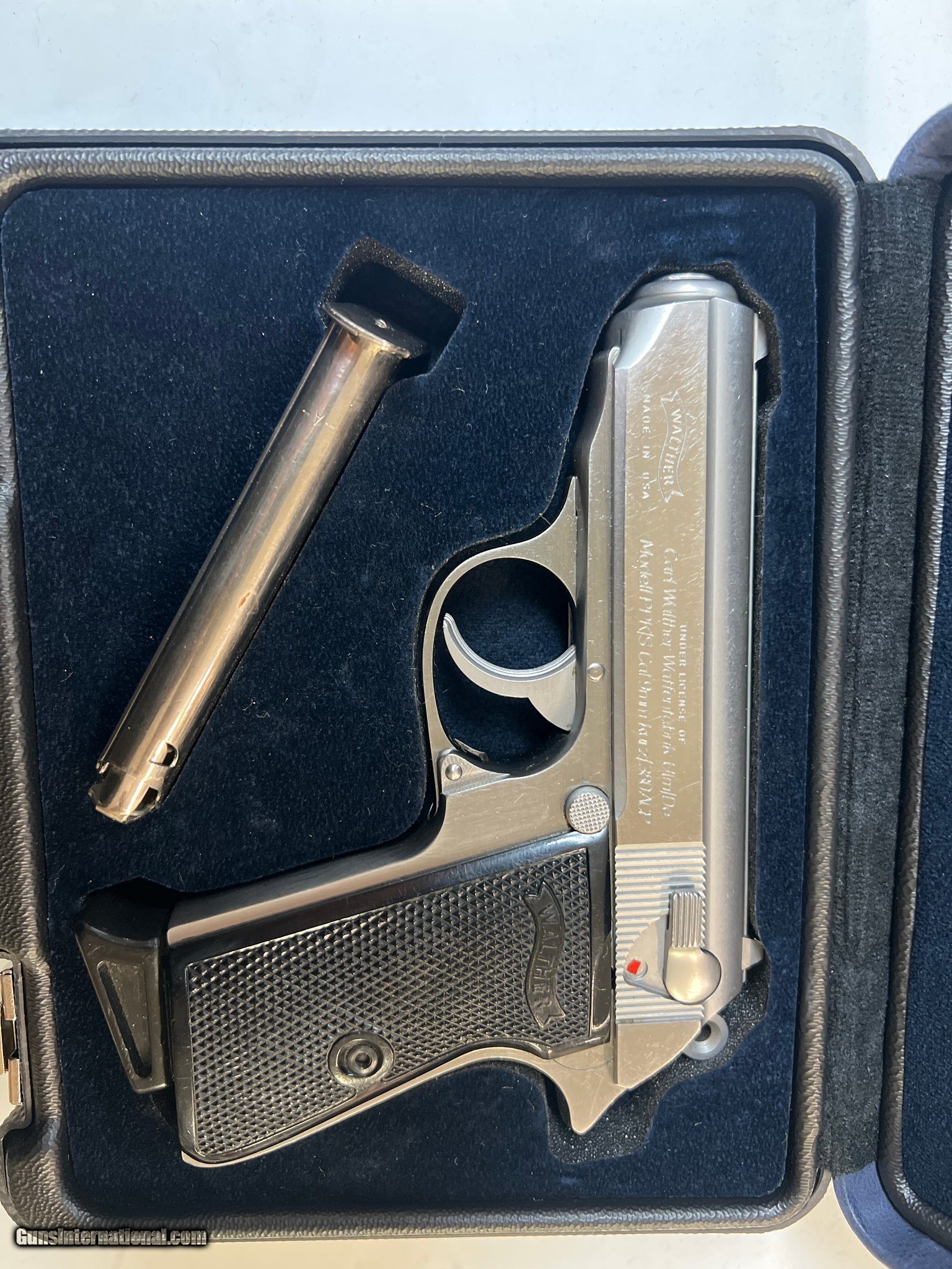 Description: Guns Listing ID: 546802 Interarms importer, 2 magazines original box SOLD Manufacturer: WALTHER Model: ppk/s Caliber Info: .380 ACP Condition: Used - Non-Certified Barrels: 3.3 BARREL Action: SEMI AUTOMATIC Finish: BRUSHED STAINLESS |
