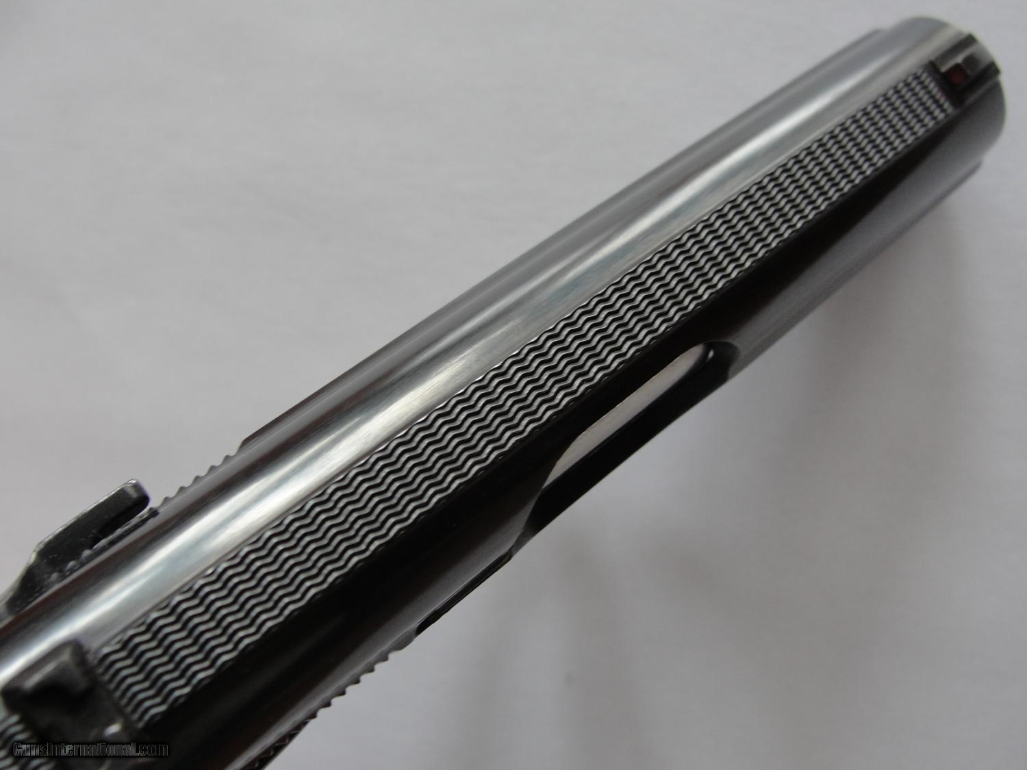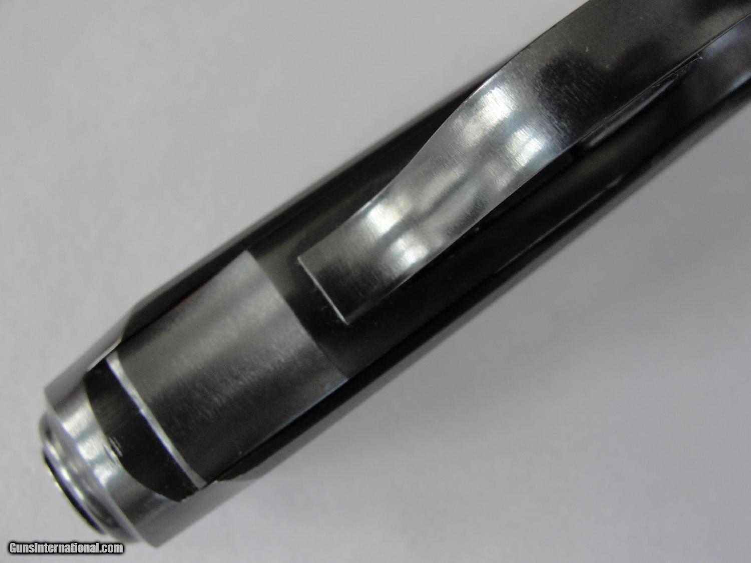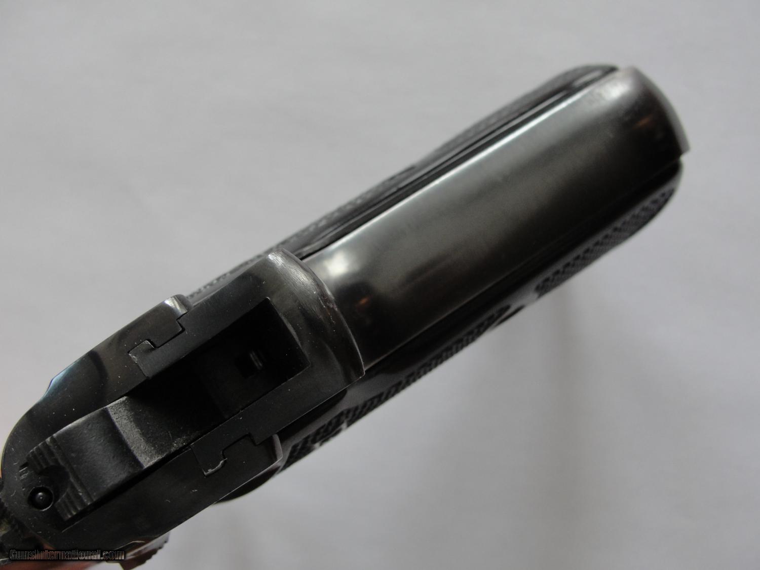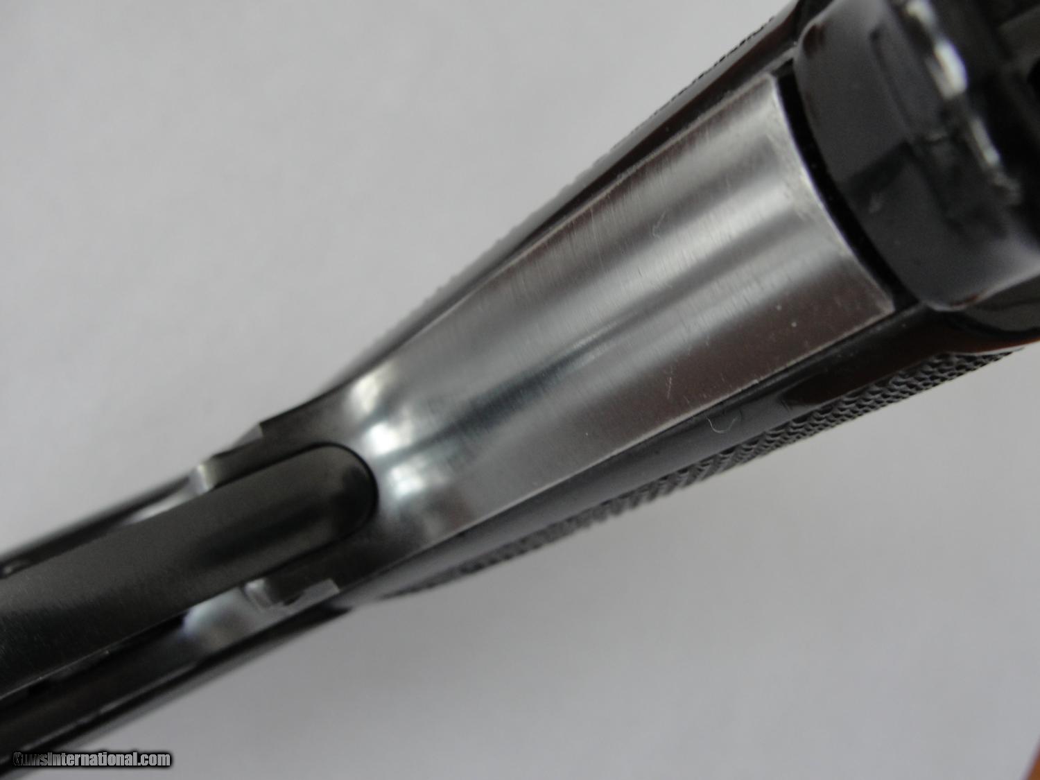 Description: What a handsome litte package, and in outstanding condition! Pistol has only the slightest of handling marks and spots of thinned blueing at the bottoms of the grip frame, front and rear. Grips are beautiful and crack-free. Test-fired one magazine full and the gun functions flawlessly. Includes the plastic case, extra magazine and instruction booklet, as pictured. CA sales OK ONLY as a face-to-face transfer in the Bay Area, call for details. All others, $25 ship to your FFL. SOLD |
