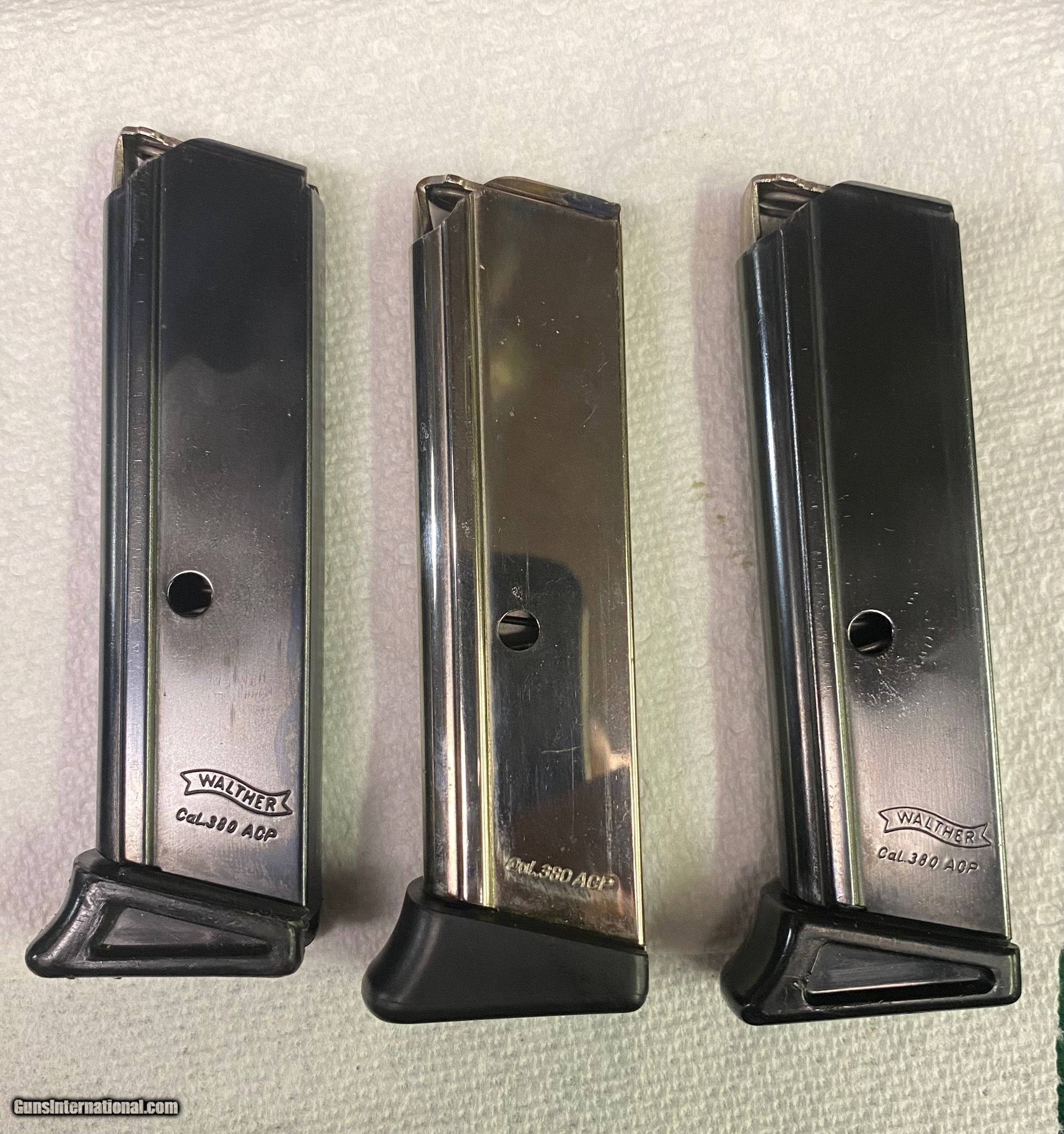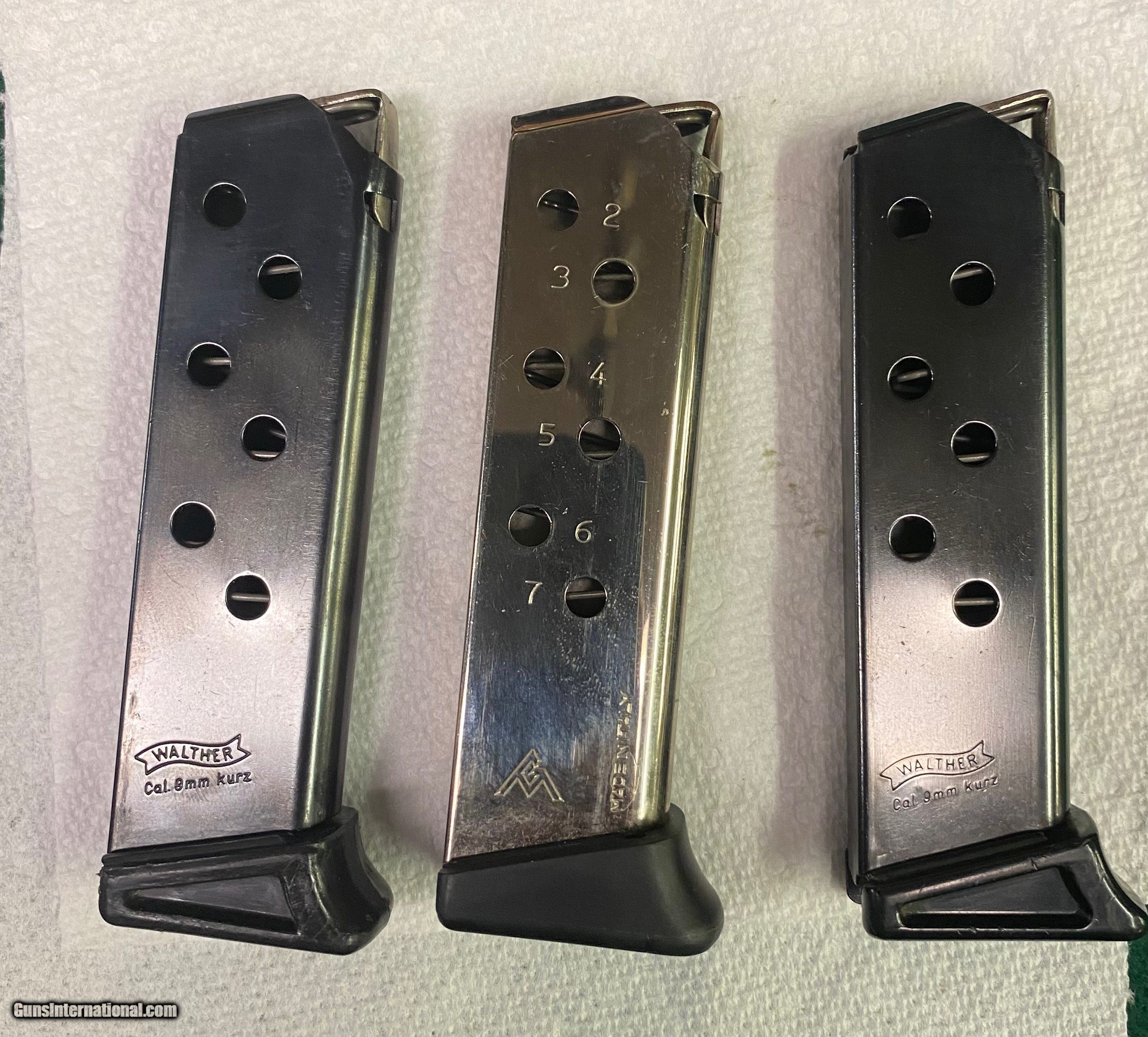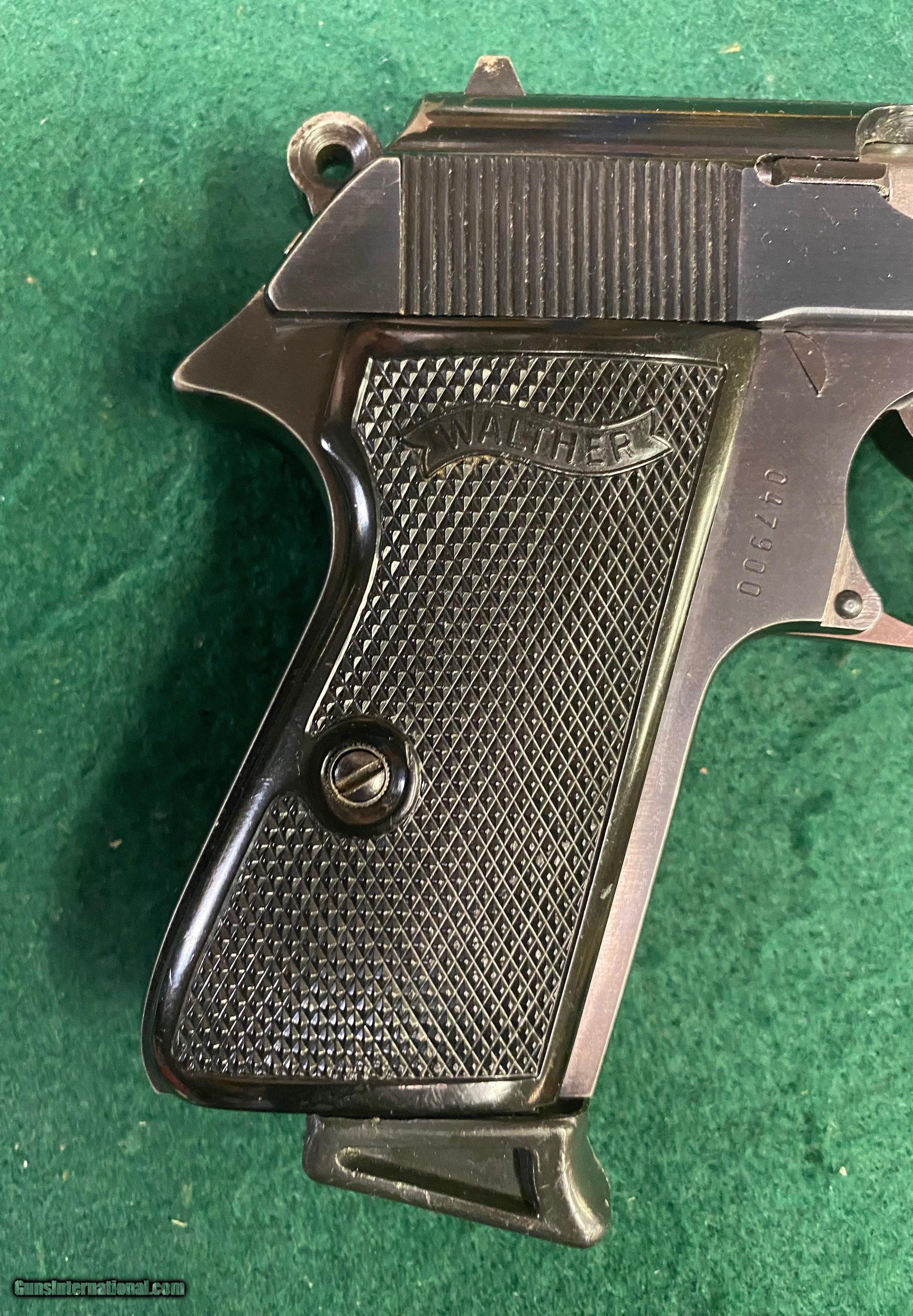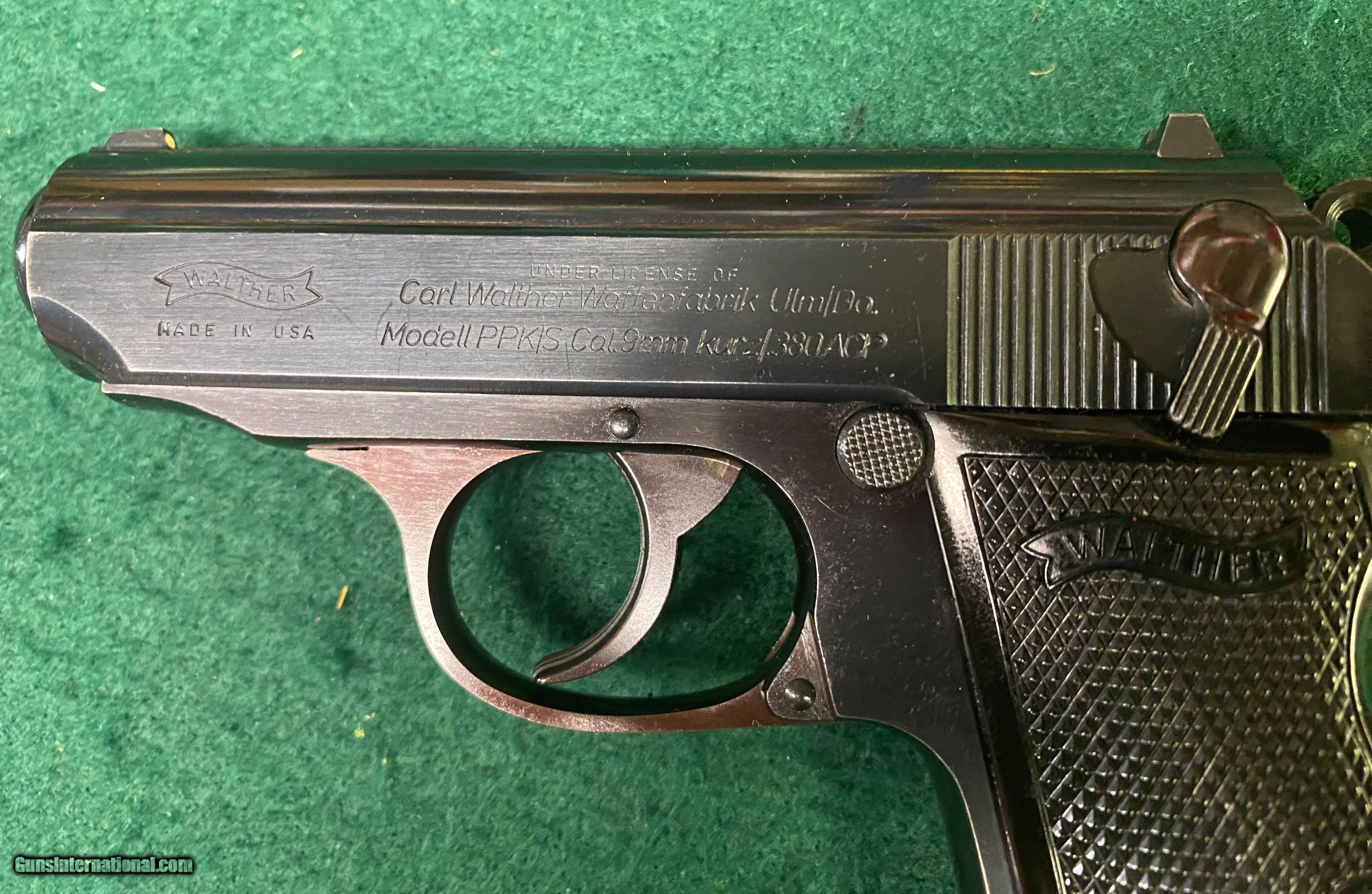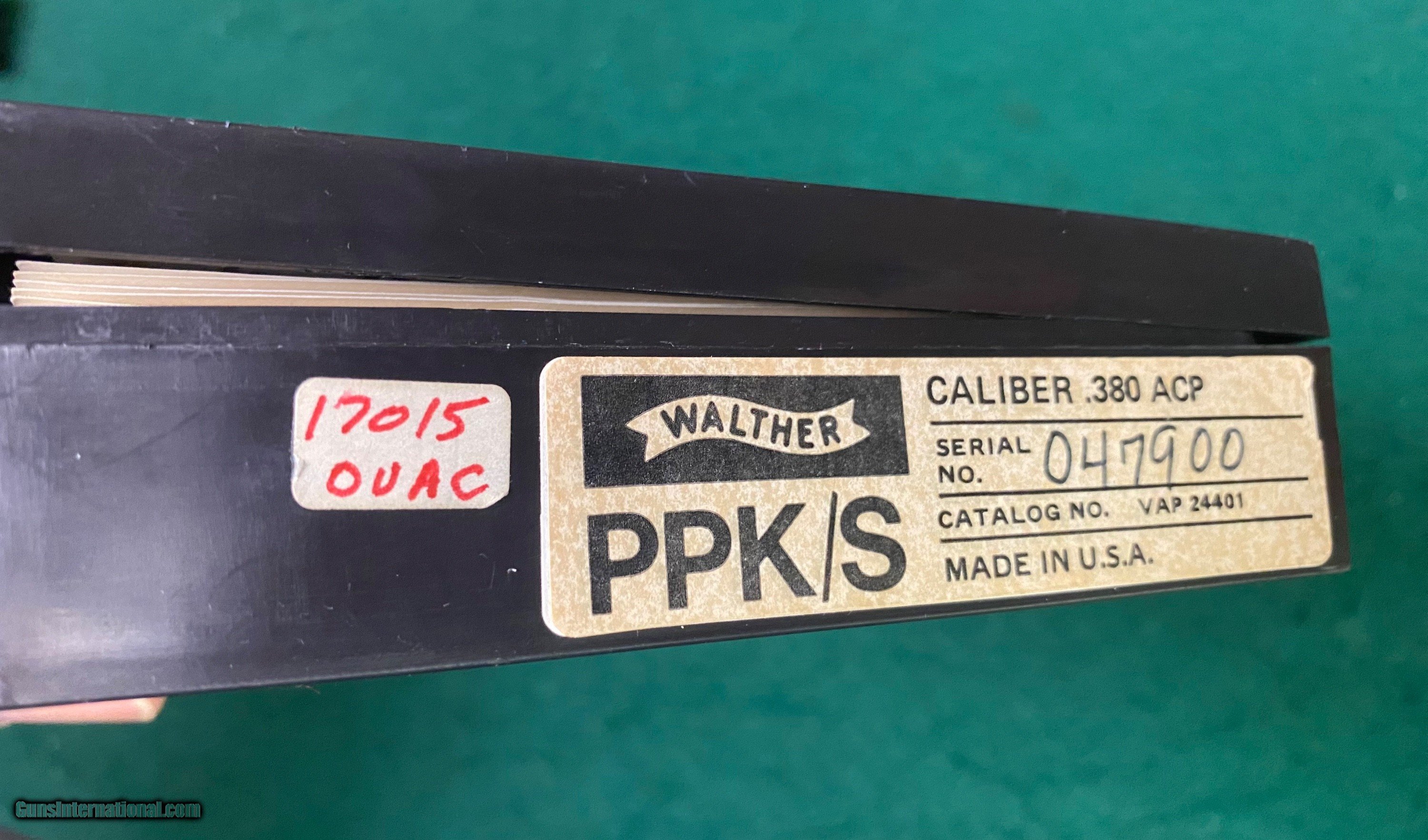 Description: Walther collectors, take a look at this: it's a PPK/S with three .380 ACP magazines (two are marked Walther and one is made by MecGar) and also comes with rubber Pachmayr grips. Has a 3 1/4" barrel and is in VG/EXC condition, please see pictures for more details. $795 & $30 shipping. Major credit cards are accepted with a 4% fee. Personal checks are also welcome (no fee added) however, we do not ship the item until your check has cleared our bank. We reserve the right to sell this item at our retail location until a firm commitment to purchase this item is placed on Guns International. At that time we will pull this item from the sales floor. Business hours are Tuesday through Saturday, 9 AM to 5 PM. Closed on Sundays and Mondays as well as some other days during federal holidays. We are a brick & mortar store in business at the same location for more than two decades. If you're ever in the Waynesboro, PA area, stop on by and see our extensive selection of vintage and modern firearms as well as accessories at George Herold's Gun Shoppe. We look forward to seeing you! SOLD Handgun Caliber: .380 ACP (9x17mm Browning Short) Manufacturer: Walther Model: PPK/S .380 Serial Number: 047900 Barrel Length: 3 1/4” Condition: VG/EXC |