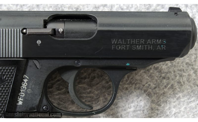 Description: Walther® PPK/s® 22 Semi-Auto Pistol delivers the great style, feel, and accuracy of the larger-caliber original in an easy-shooting, 1-to-1-scale rimfire. This model comes equipped with a single/double-action trigger, and its barrel is factory threaded. The strong frame offers a sleek, protective matte black finish, and the black synthetic grips are checked for solid shooting control. The Walther PPK/s 22 Semi-Auto Pistol comes equipped with fixed, low-profile sights for quick and dependable accuracy. The manual safety doubles as a decocker. Manufactured in Germany 2013. .22 Long Rifle SOLD Metal Condition: Excellent Bore Condition: Excellent Barrels: 3.3 inch threaded barrel Triggers: Double/Single action Weight: 24 oz. Sights: Square notch rear sight with blade front Item Location: Lehi, UT |