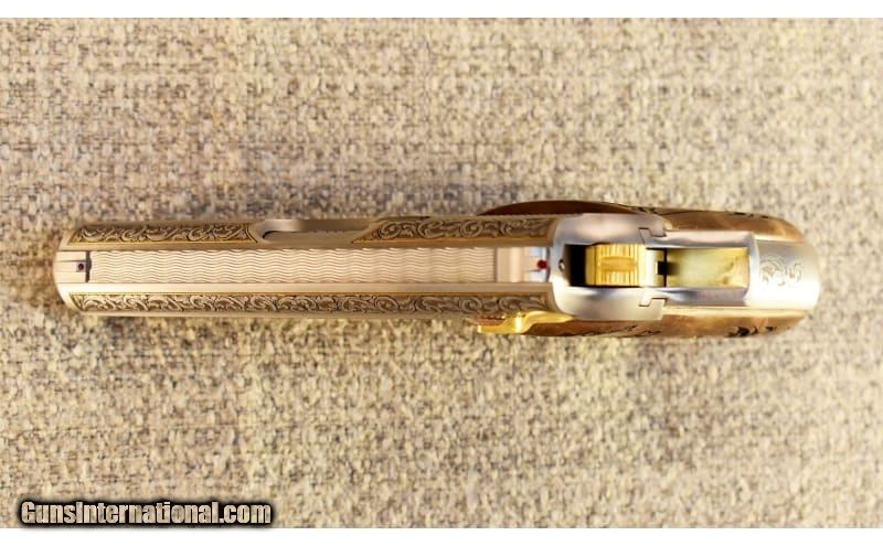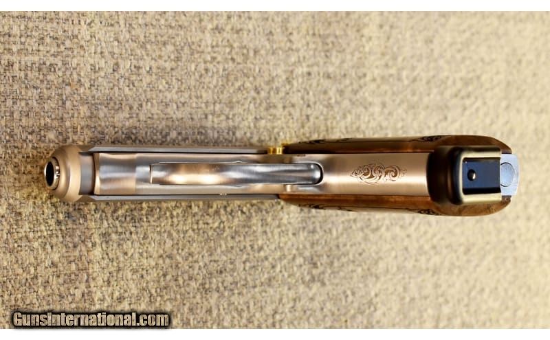 Description: This is a distributor special Walther PPK/S Exquisite in .380 ACP featuring intricate scroll engraving plus gold hammer, trigger, safety and magazine release .380 ACP SOLD Metal Condition: As new in box Wood Condition: As new in box Bore Condition: Clean with bright lands Barrels: 3.5 Triggers: DA/SA Butt Pad: Fancy grade walnut grips Weight: 1 Lb. 8 Oz. Sights: Red bar-dot Item Location: Glendale, AZ |
