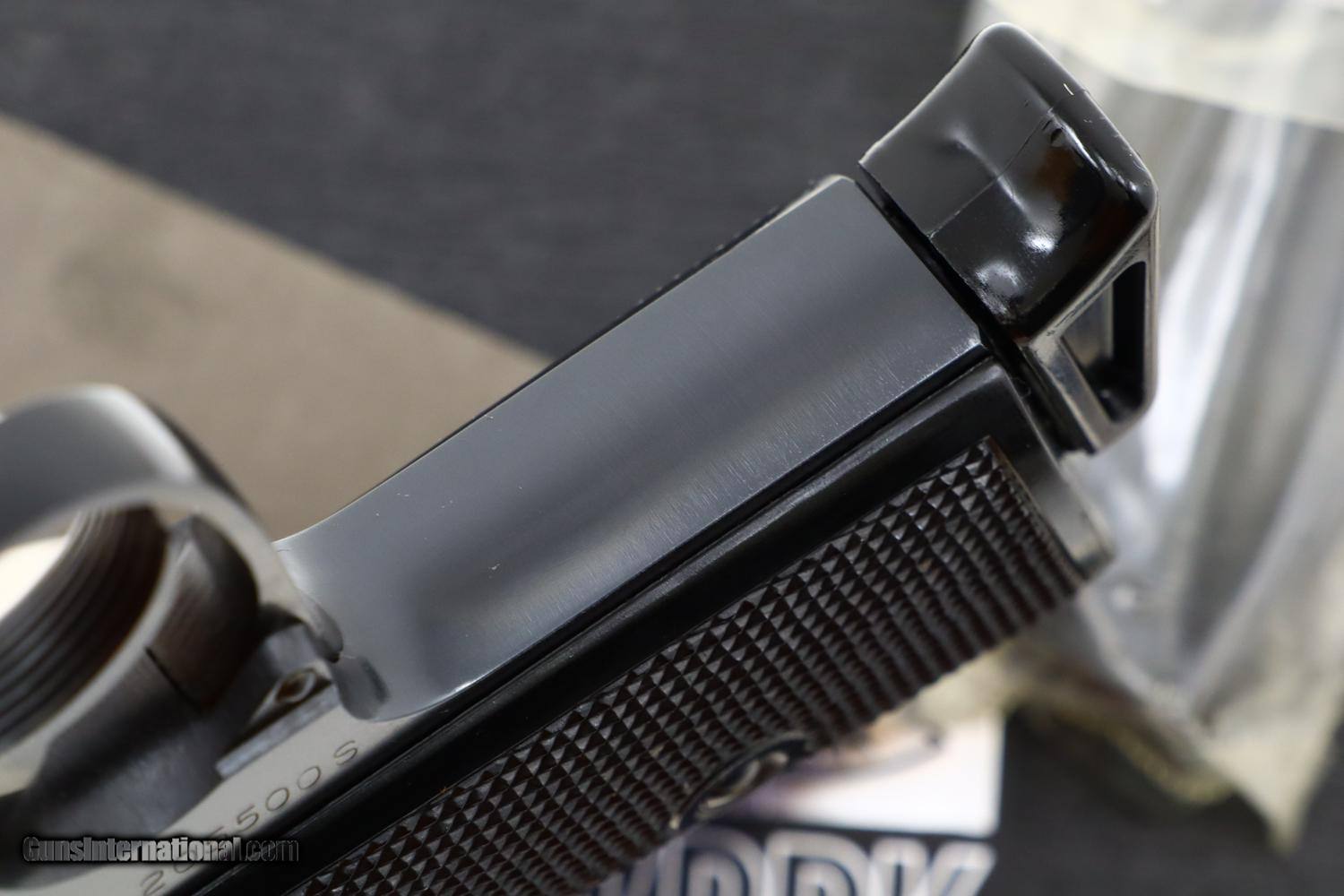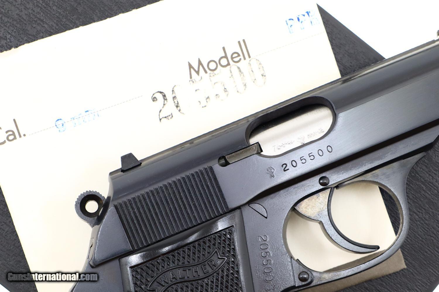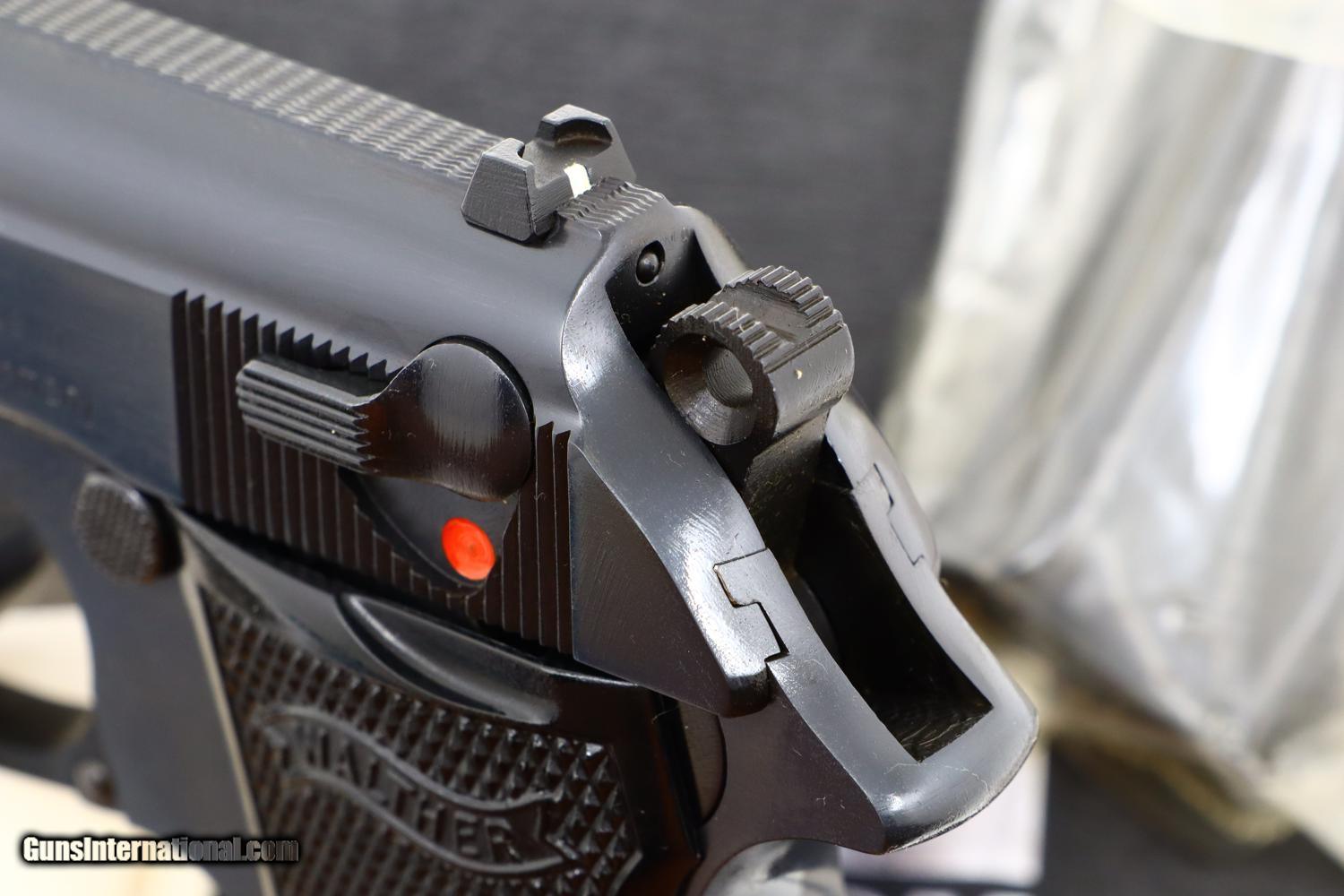 Description: This German made PPK/S is as new/brand new. Looks brand new, but we were not the original purchaser. Pistol was made in 1976. Synopsis: This Walther PPK/S is a time capsule, brand new, as shipped from the factory, with all accessories in its matching box. Condition: As new/brand new. The only 'missing' item is the plastic shipping sleeve/bag for the pistol. ~~Insured shipping fee of $55; most packages shipped using FedEx 2nd Day.~~ SOLD Manufacturer: Walther Serial Number: 205500S Caliber Info: 9mmK (.380 ACP) |
