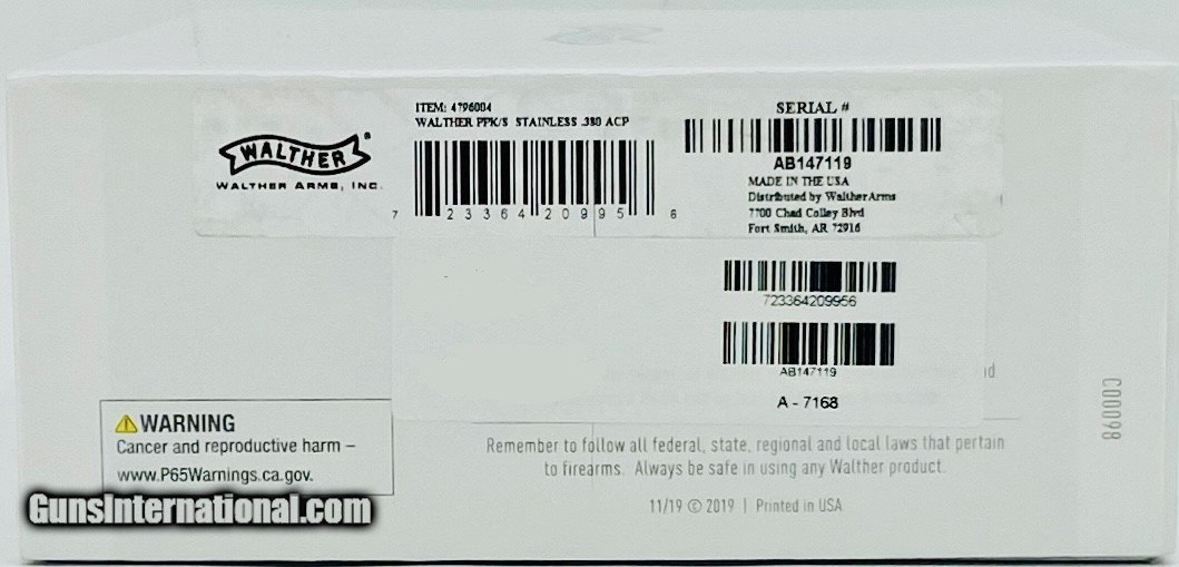 Description: An evolution of the classic PPK, the PPK/s maintains the timeless features, essence, and elegance of the original with an additional extended grip allowing for added capacity and improved ergonomics. SPECS: ACTION: Semi Auto Pistol CAPACITY: 7+1 BARREL LENGTH: 3.3in FINISH: Stainless GRIPS: Polymer SIGHTS: Fixed WEIGHT: 19oz CARTRIDGE: 380 Auto (ACP) HAND: Right OVERALL LENGTH: 6.1in TYPE: Centerfire SOLD Handgun Caliber: .380 ACP (9x17mm Browning Short) Manufacturer: WALTHER Model: PPK/S Condition: FACTORY NEW |